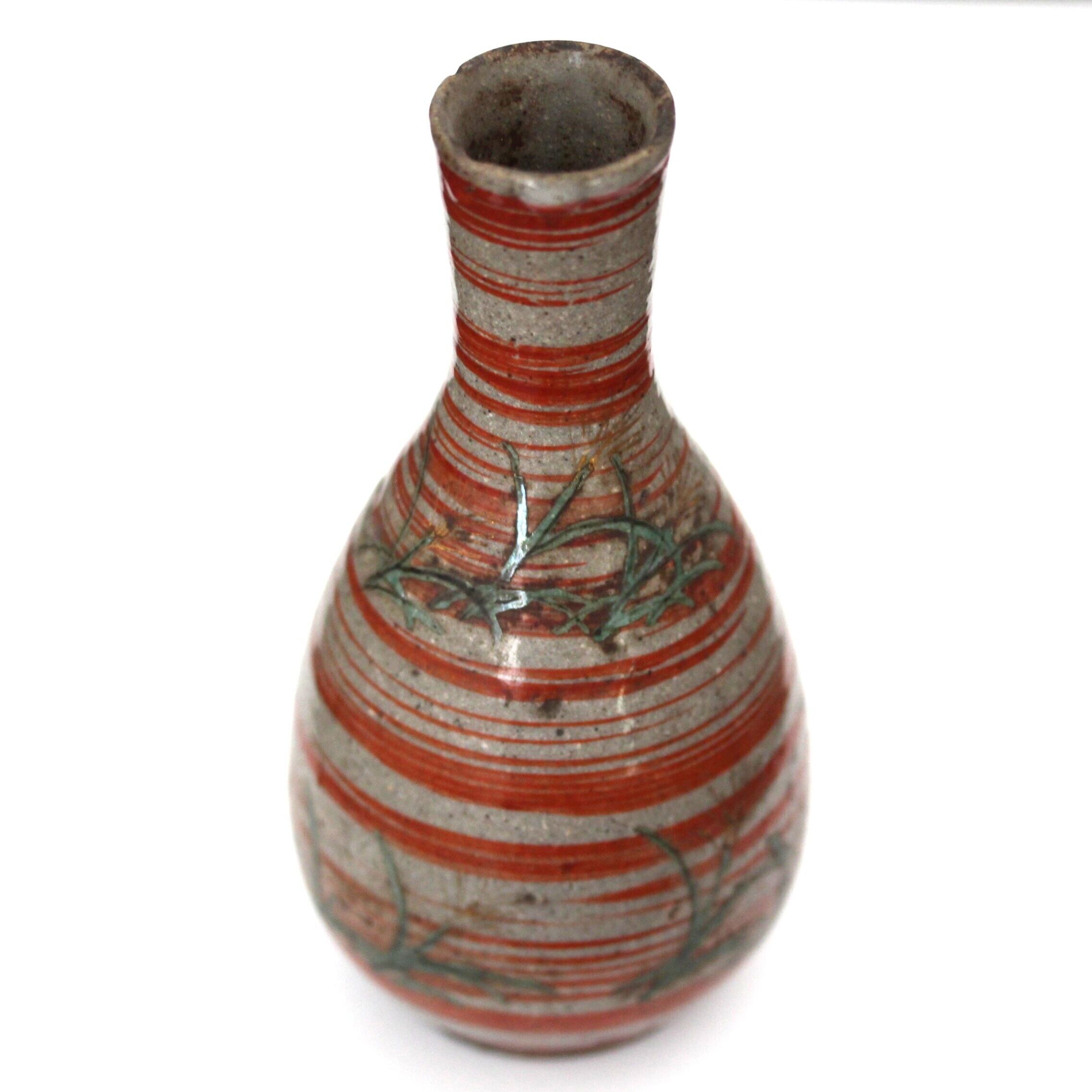 九谷色絵芒文徳利 永楽和全 h14.6cm Kutani Enameled Bottle, Design of Susuki Silver Grass, by Eiraku Wazen 19th-20th C | HANAFUDA
