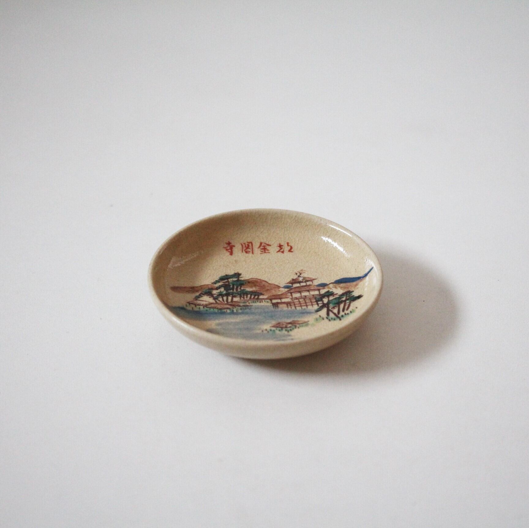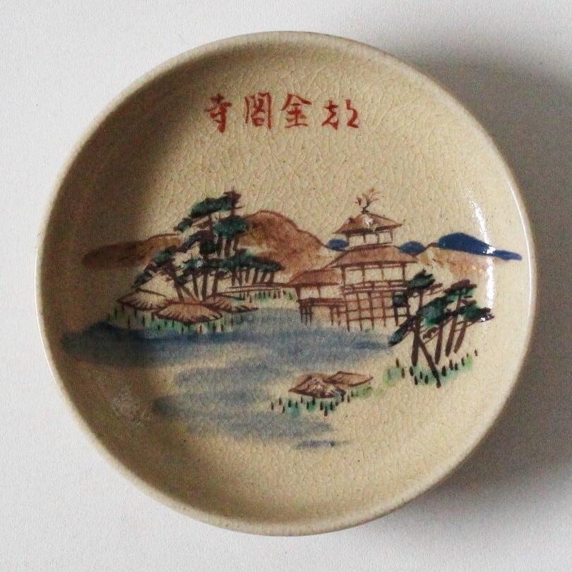 京焼名所図小皿【都金閣寺】d9.6cm Kyo Ware Enameled Small Dish, Design of Kinkakuji Temple, one of the Great Scenic Spots in Kyoto 19th-20th C | HANAFUDA