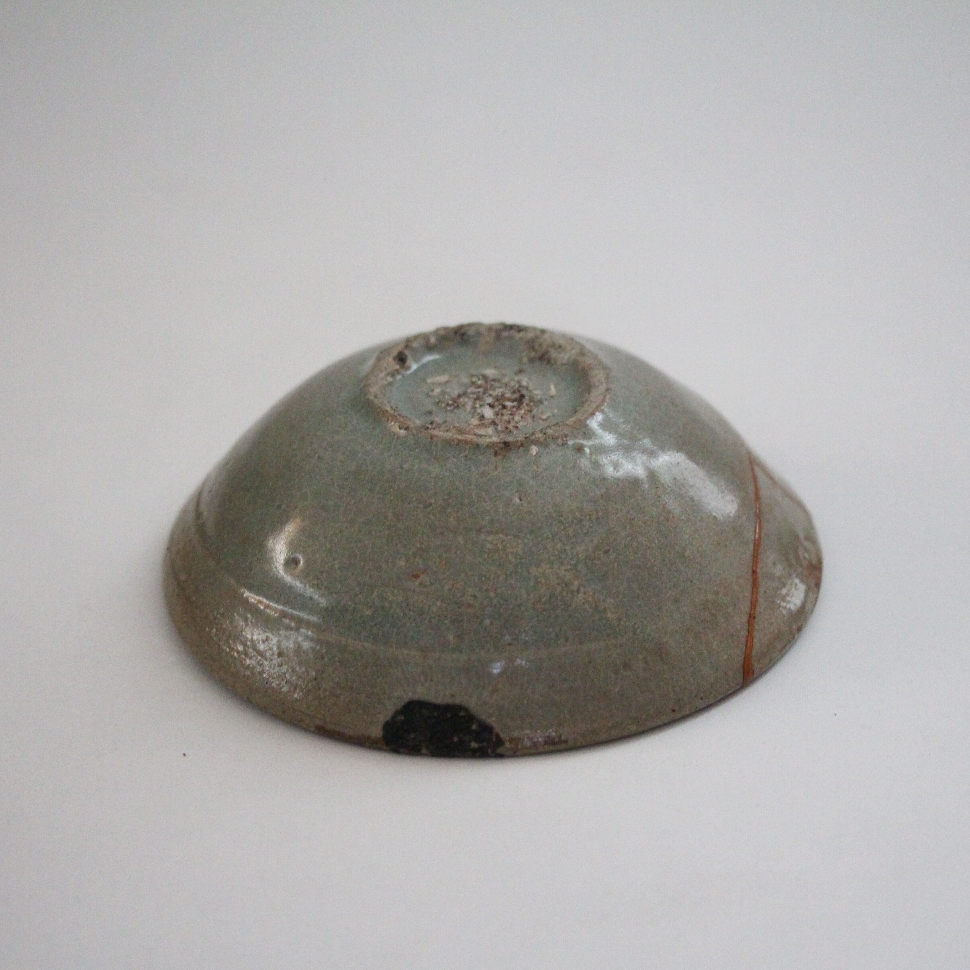 高麗青磁象嵌小鉢(見立て平盃)d12.5cm Koryo Celadon Bowl, Inlaid Chrysanthemums Design 14th C