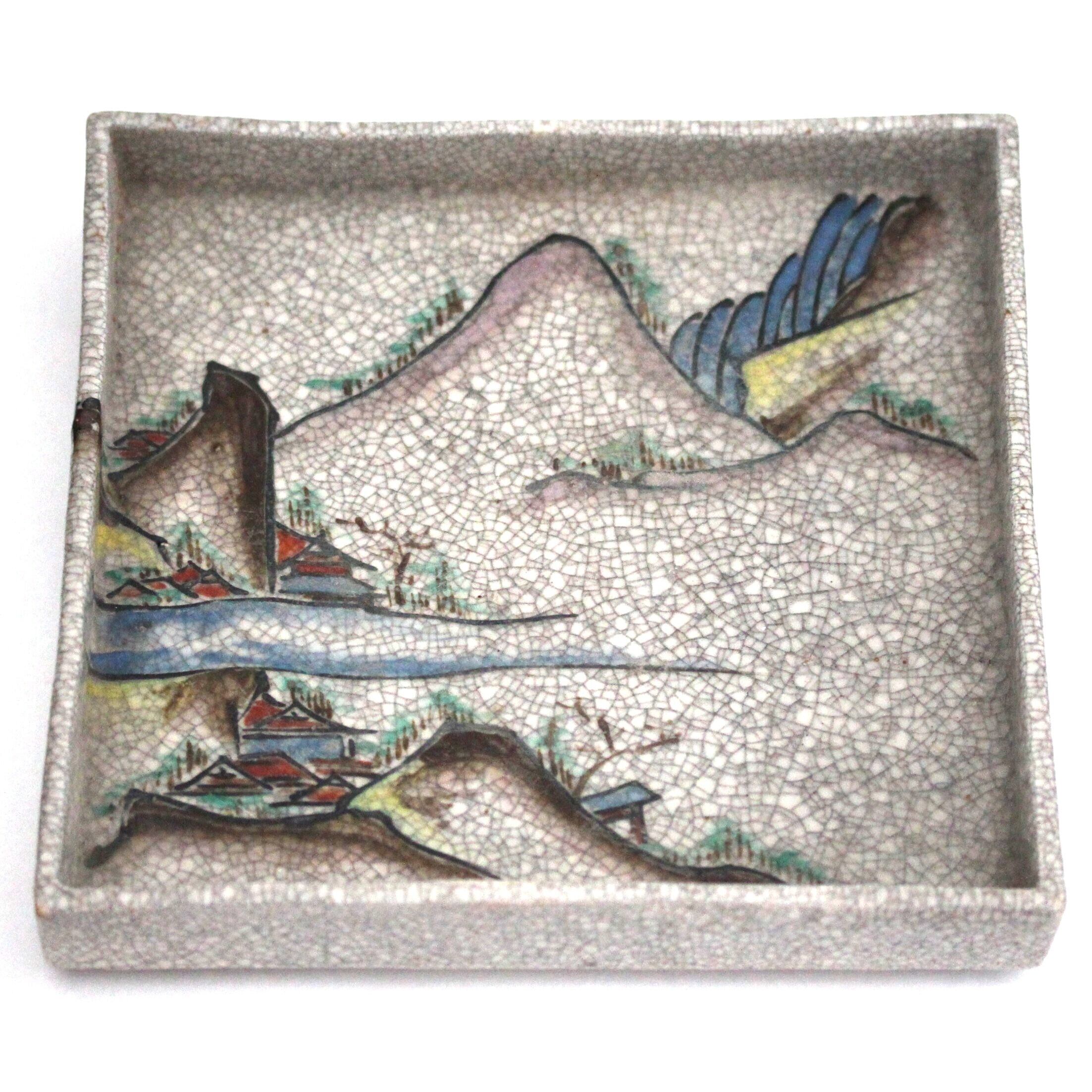 口縁が垂直に低く立ち上がった正方形のうつわです。