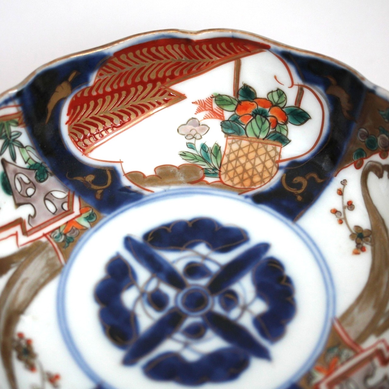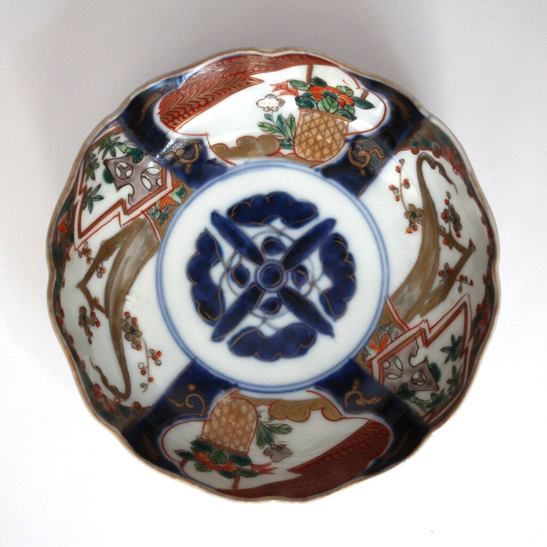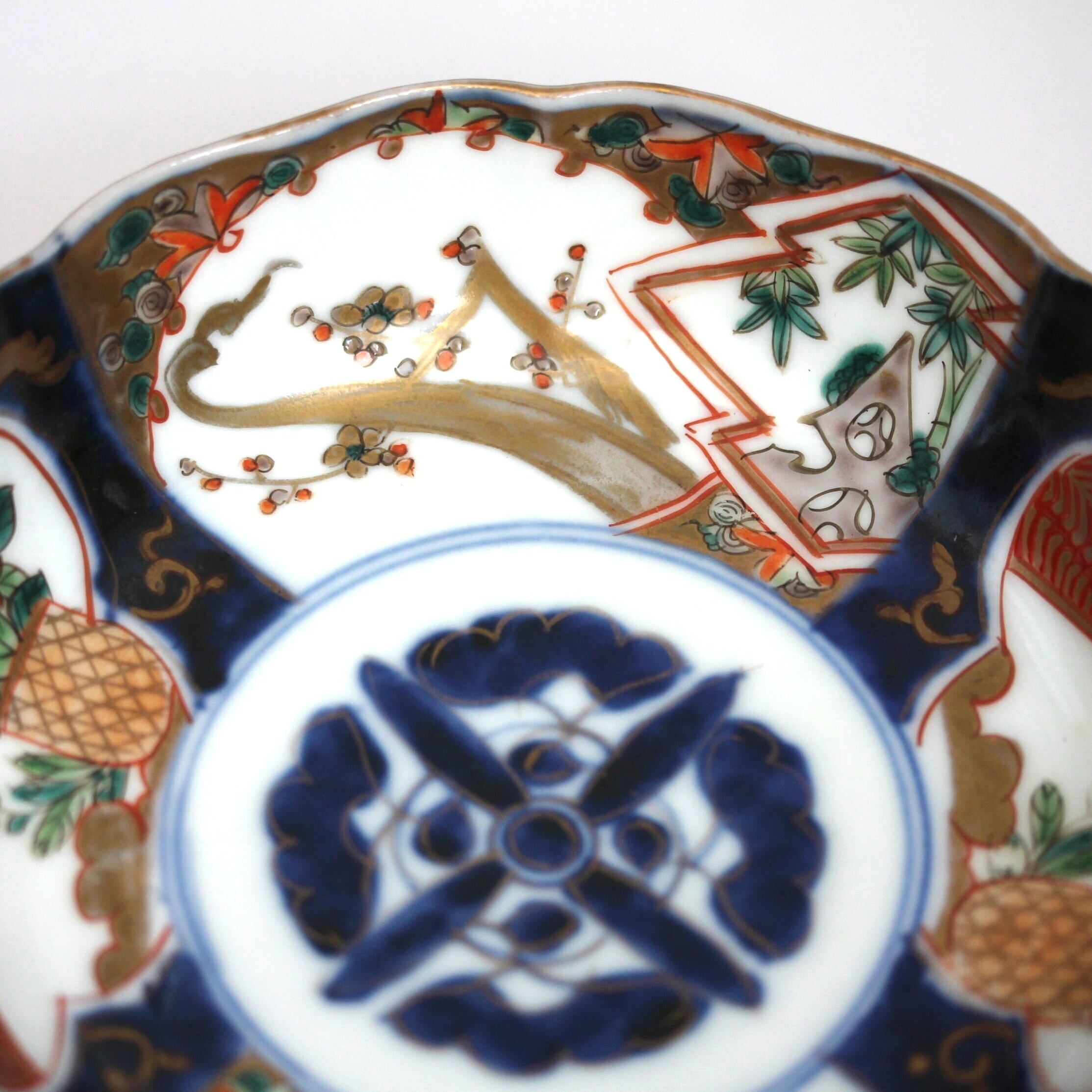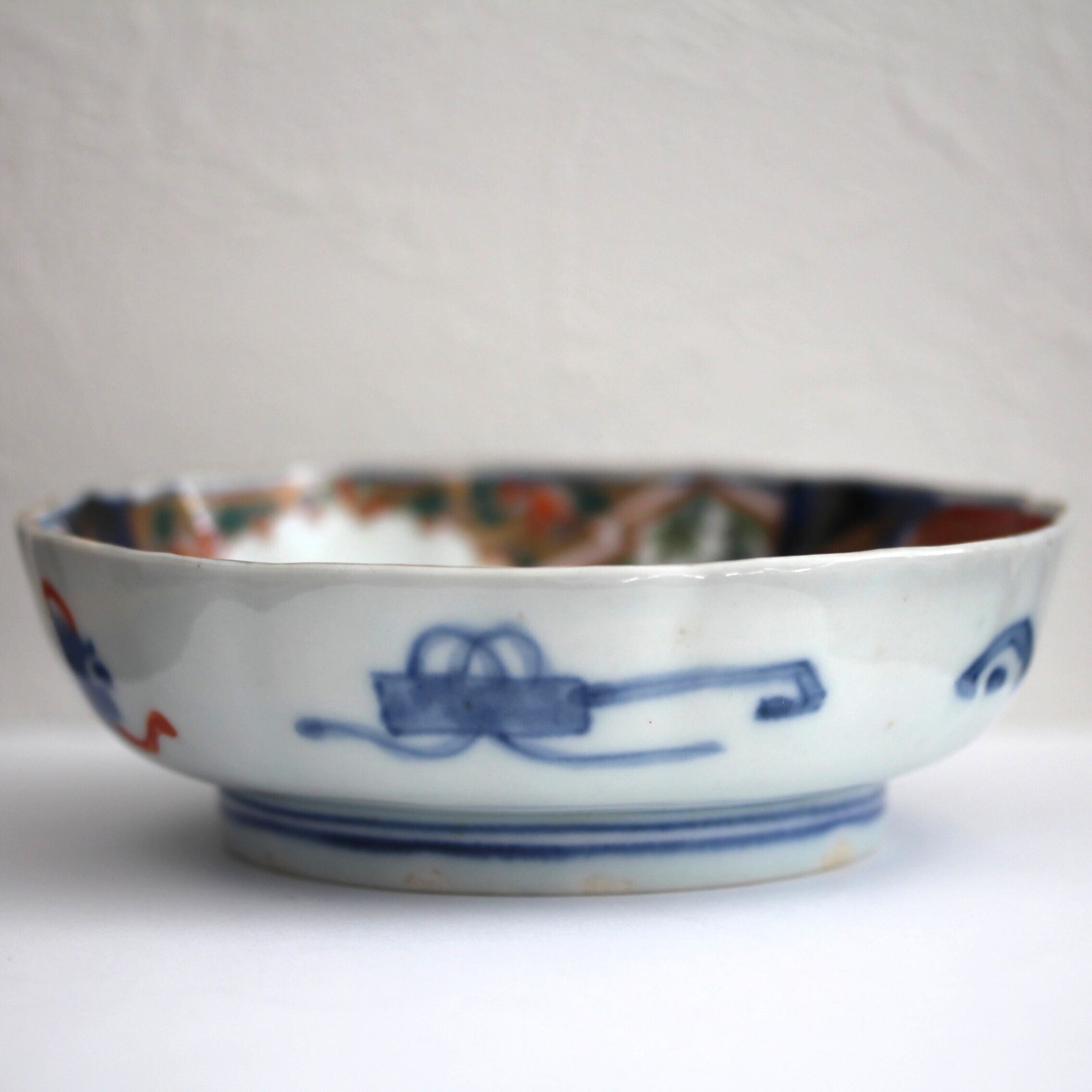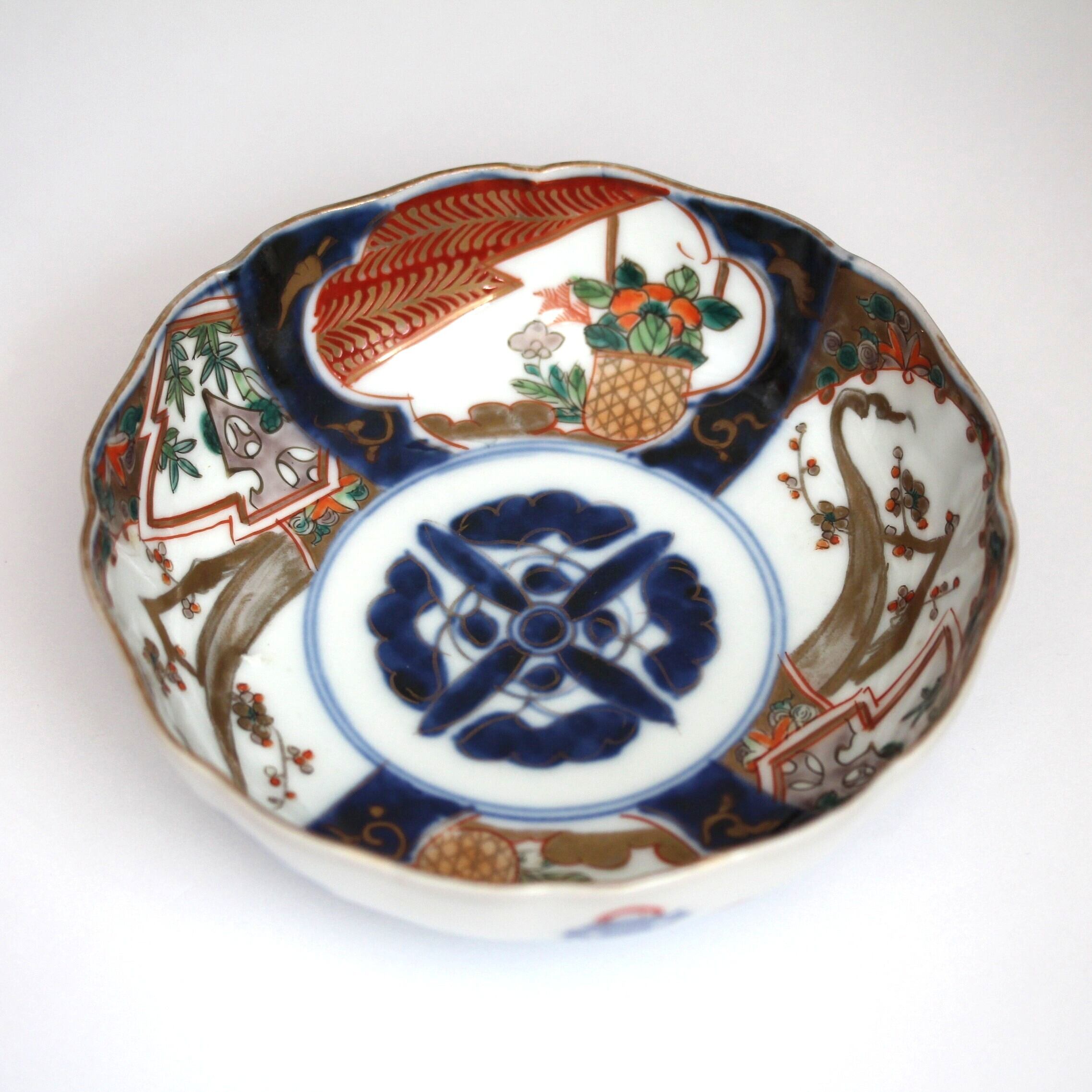 伊万里色絵松竹梅秋草文輪花深皿(その2)d15.3cm Imari Polychrome Lobed Bowl, Design of Shochikubai and Autumn Flowers 19th-20th C | HANAFUDA
