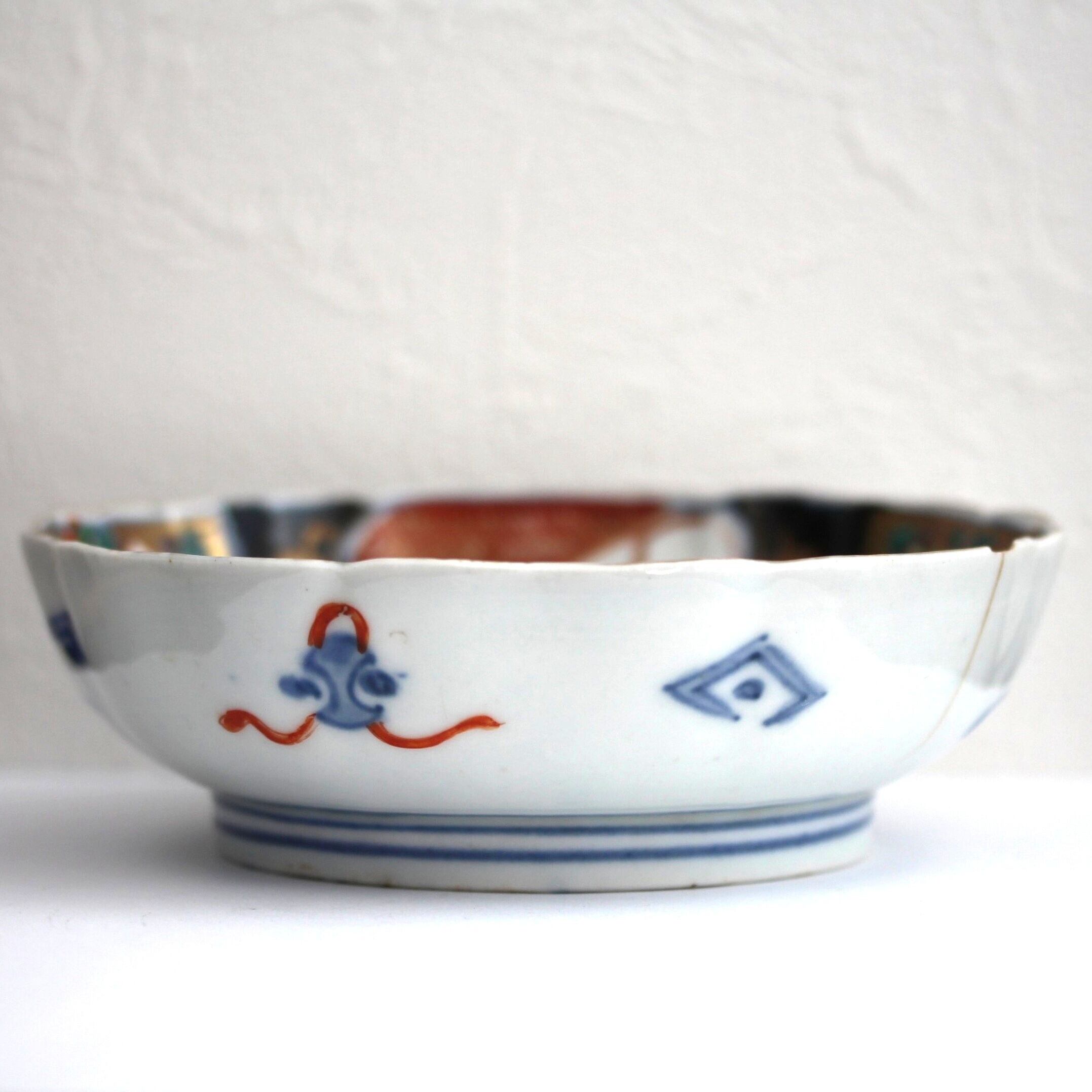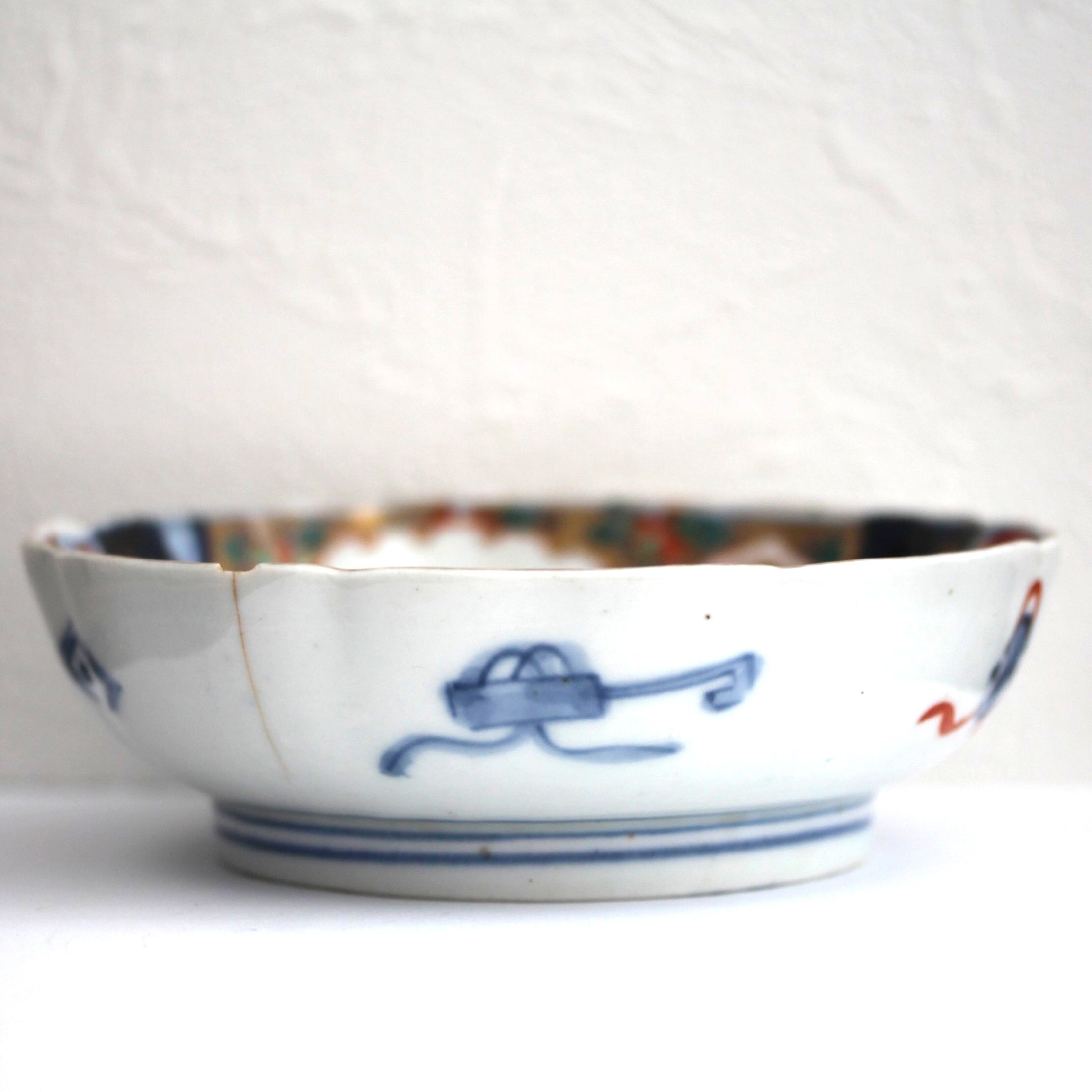 伊万里色絵松竹梅秋草文輪花深皿(その4)d15.3cm Imari Polychrome Lobed Bowl, Design of Shochikubai and Autumn Flowers 19th-20th C | HANAFUDA