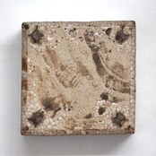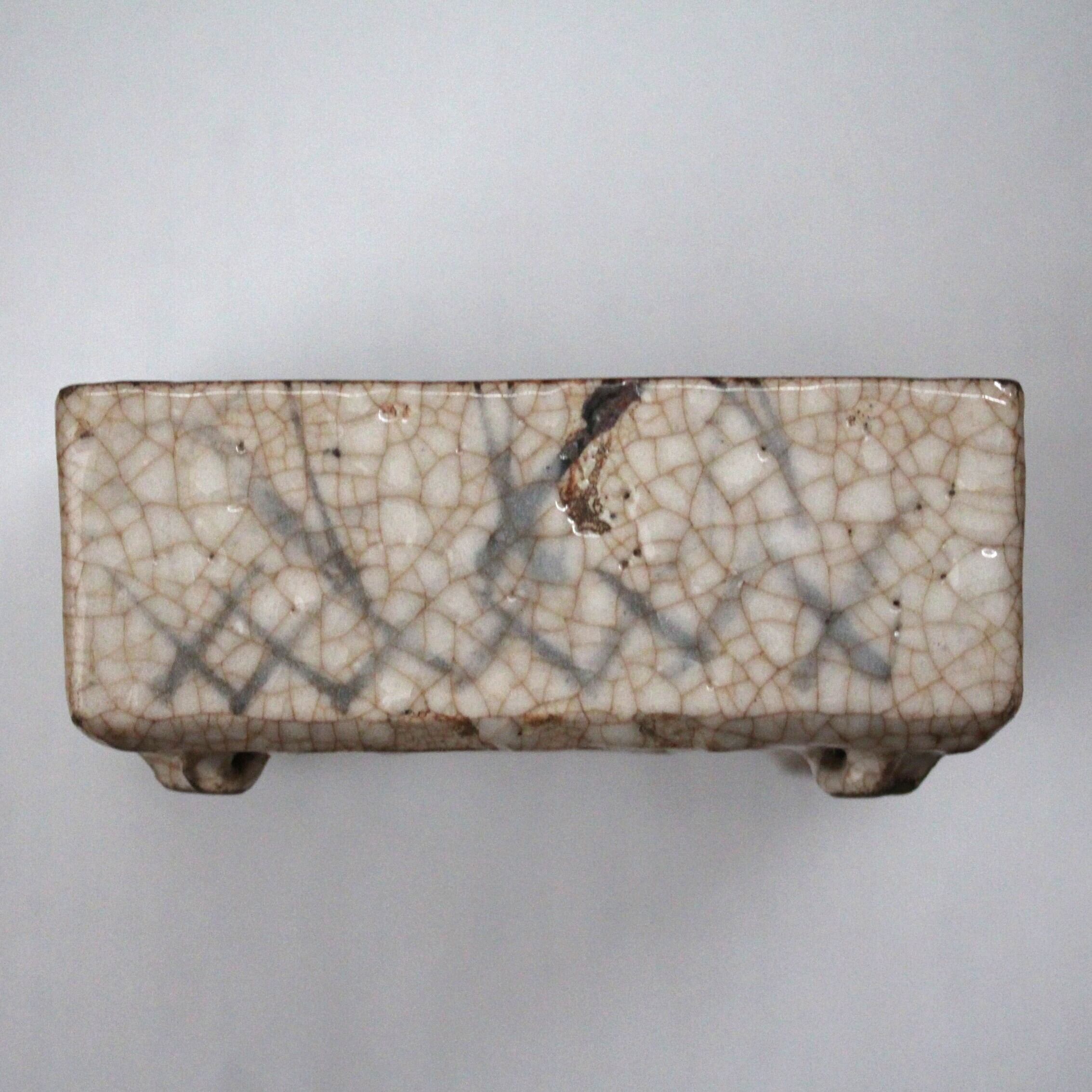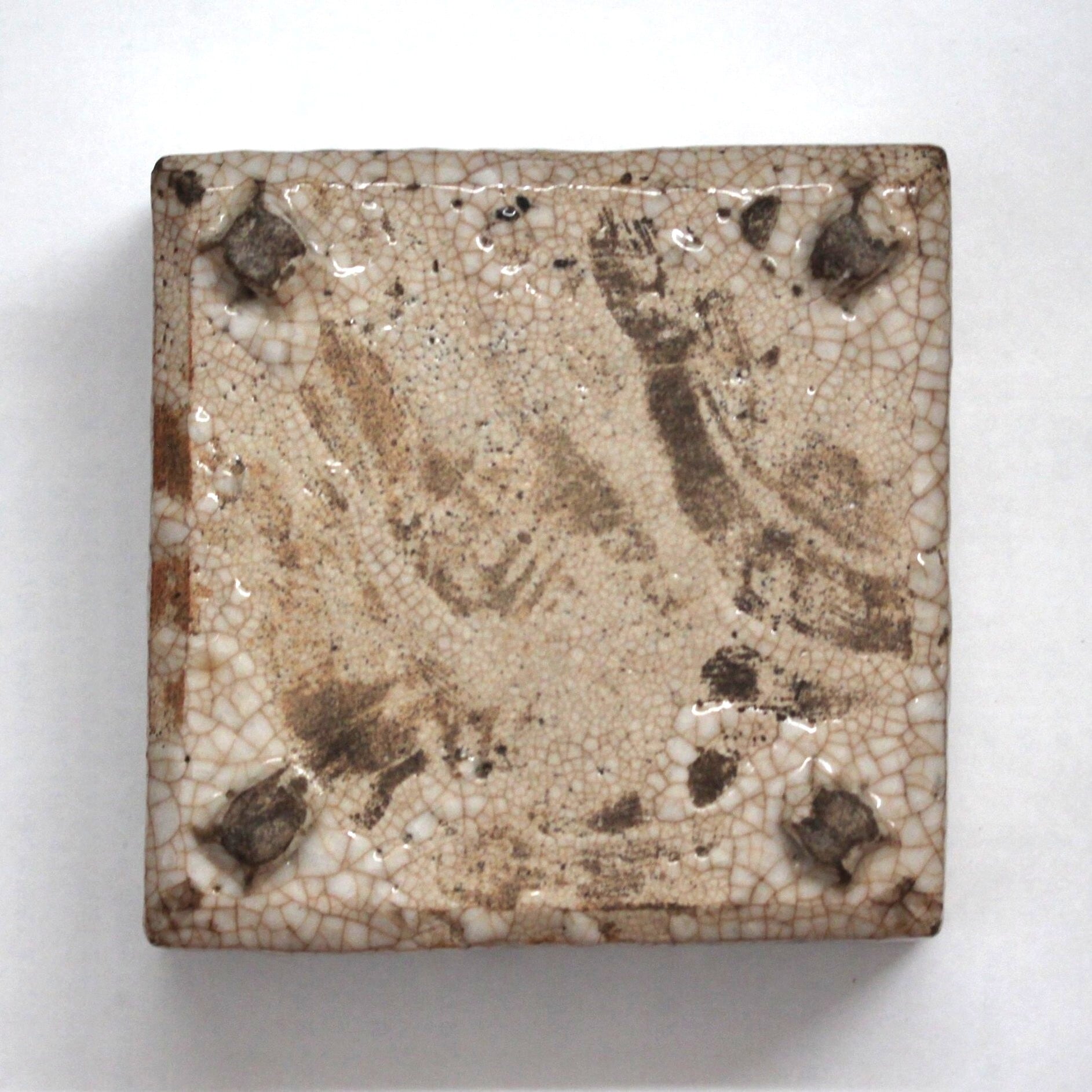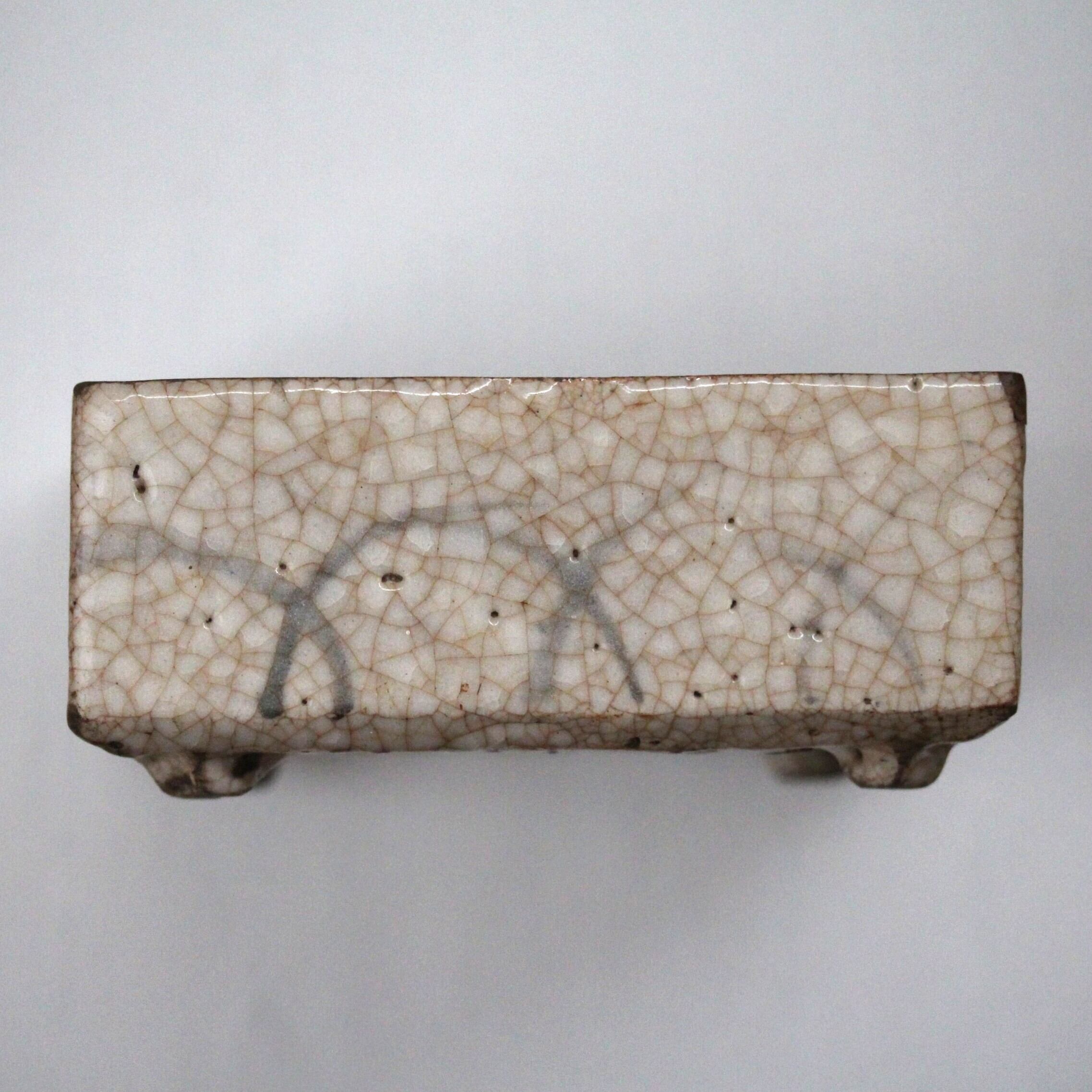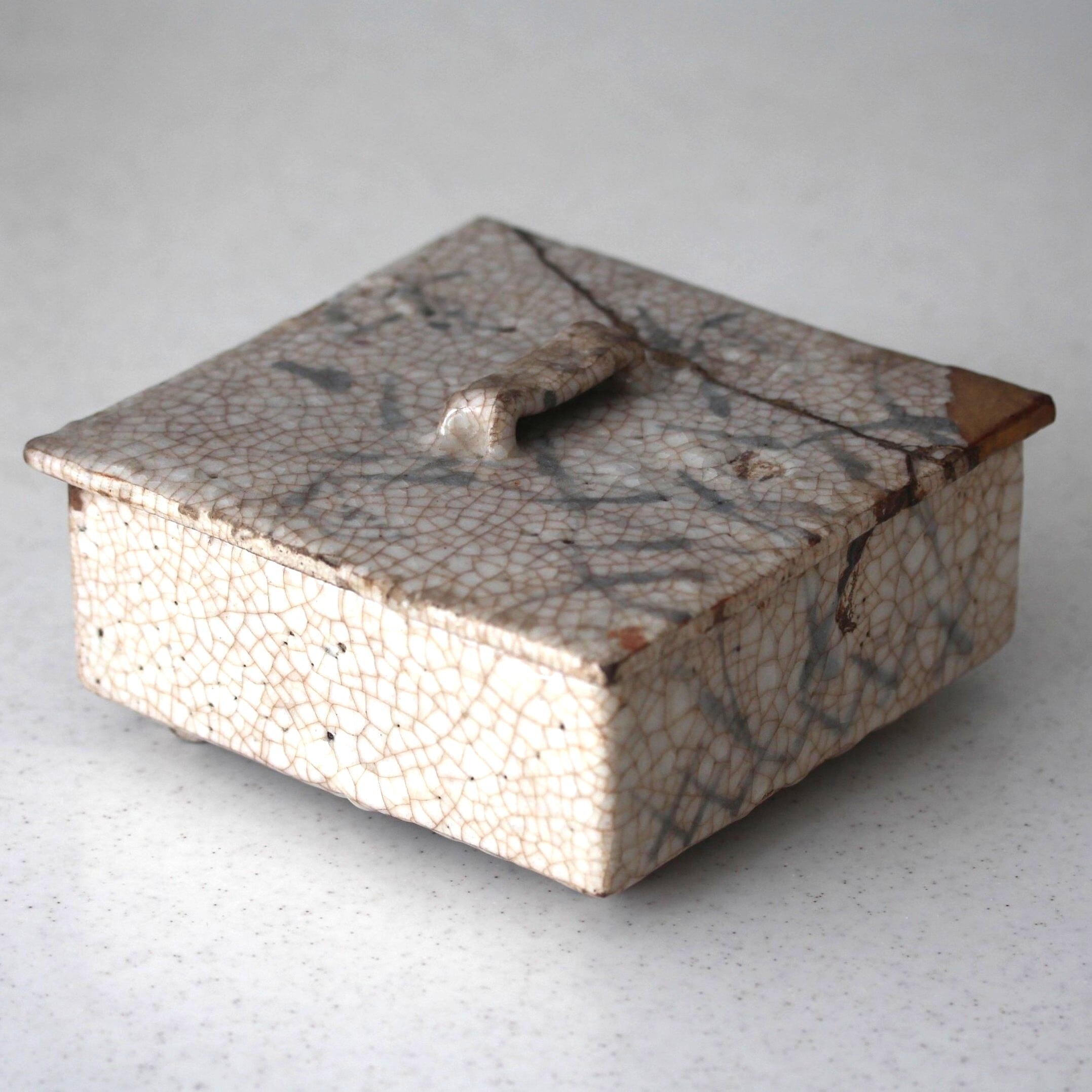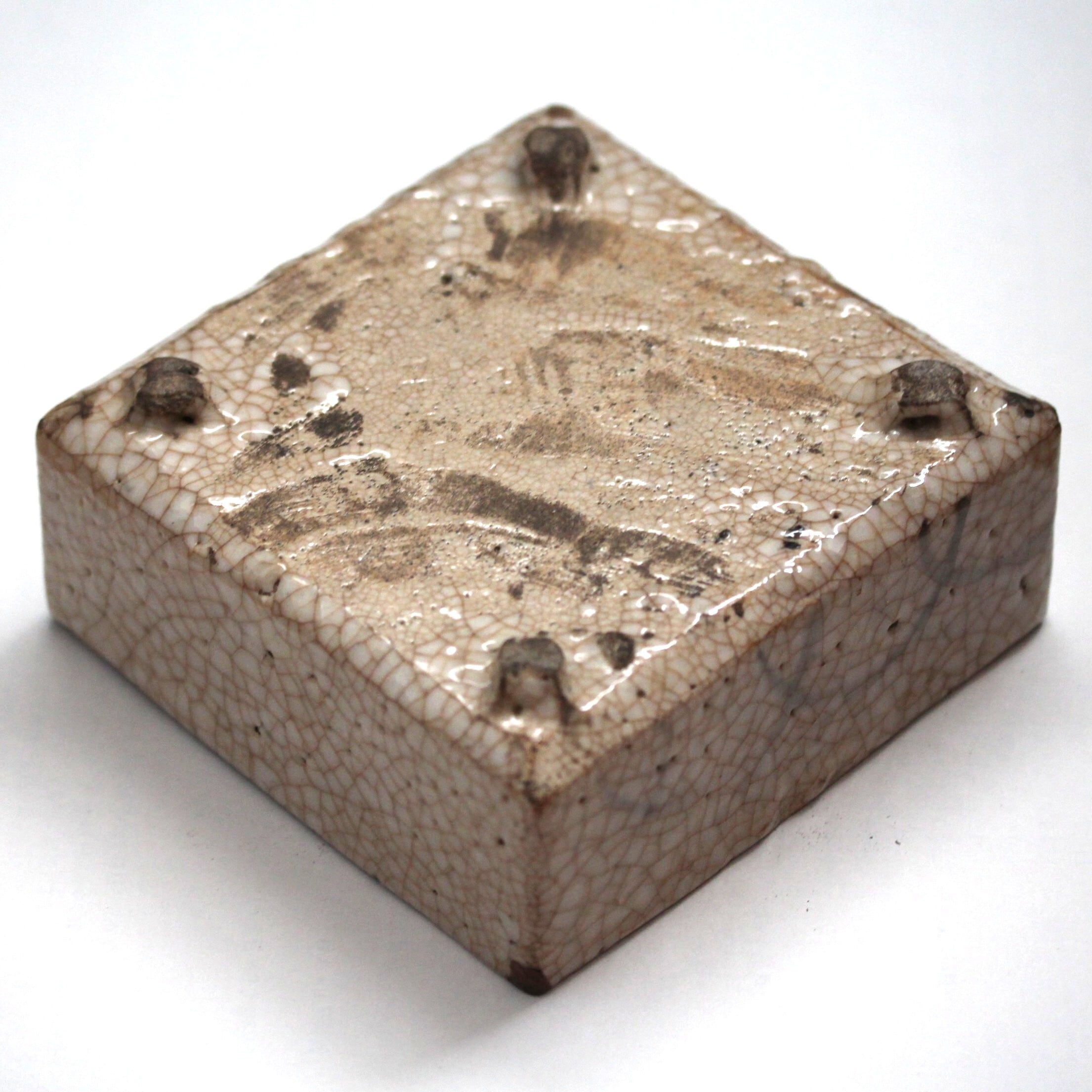 A charming ceramic square four-footed box with cover, with design of Autumn grasses in underglaze iron black.