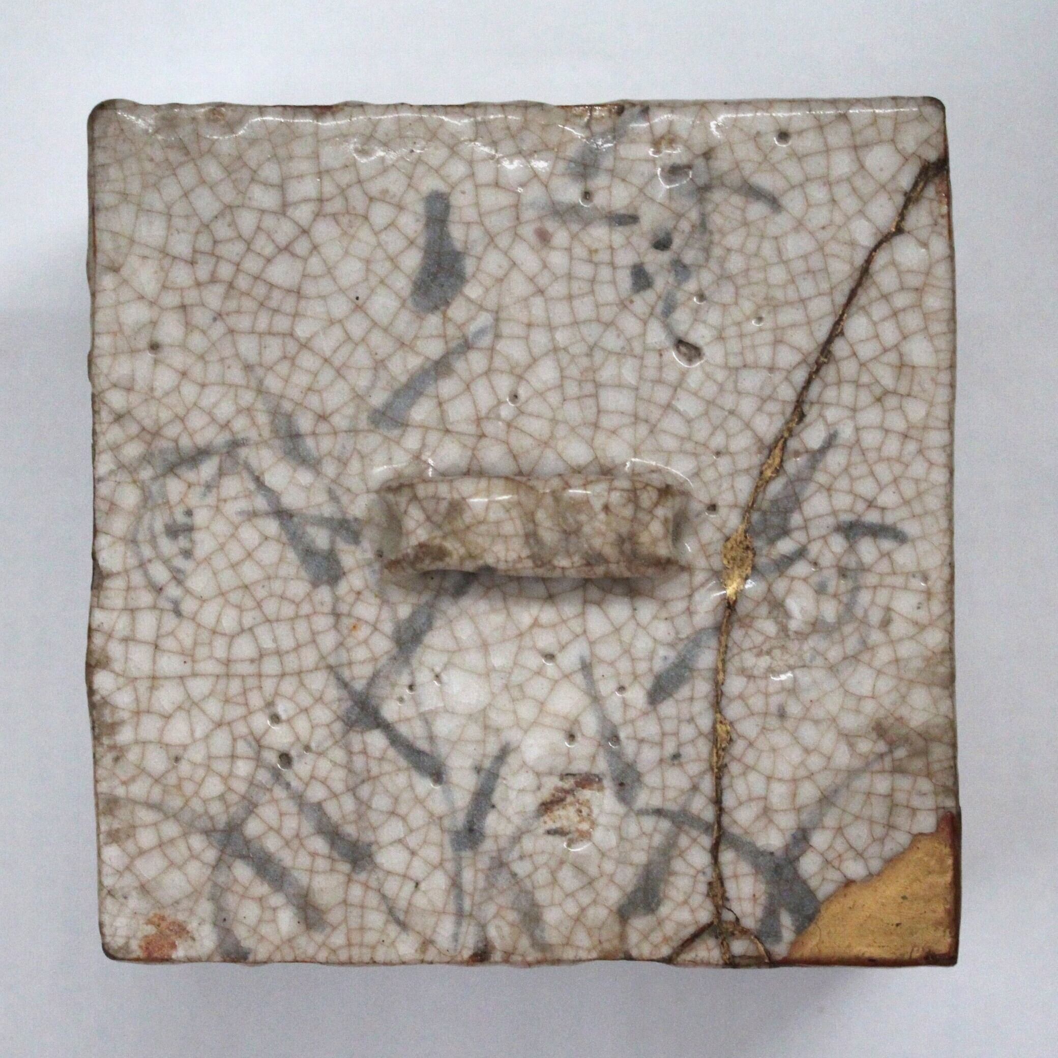割れた蓋は金継ぎされ、欠損した部分も補われています。
