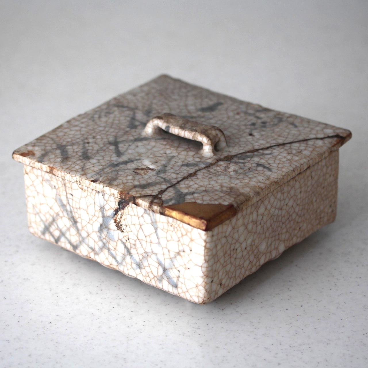 状態:蓋の割れを金繕い。身の隅部のホツを漆繕い。
