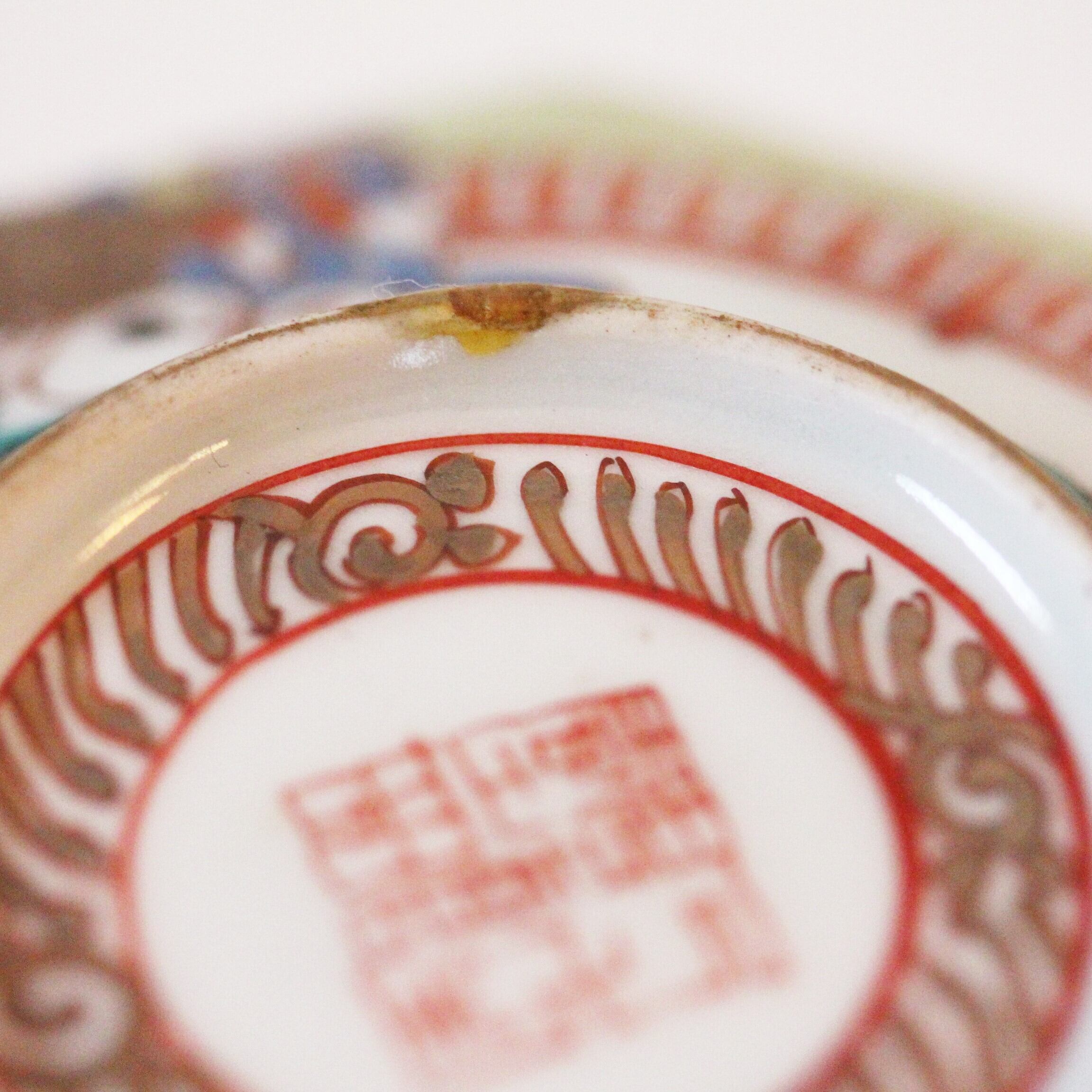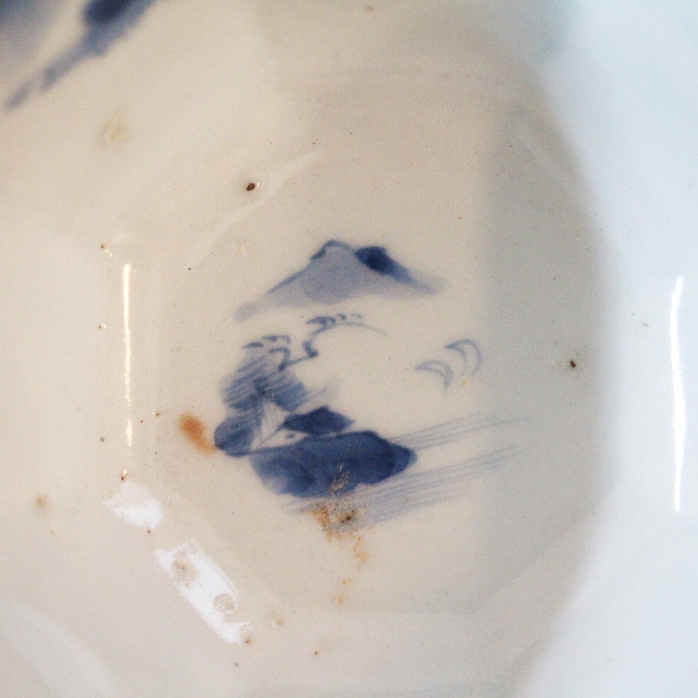 八角形のうつわに描かれる唐人山水。