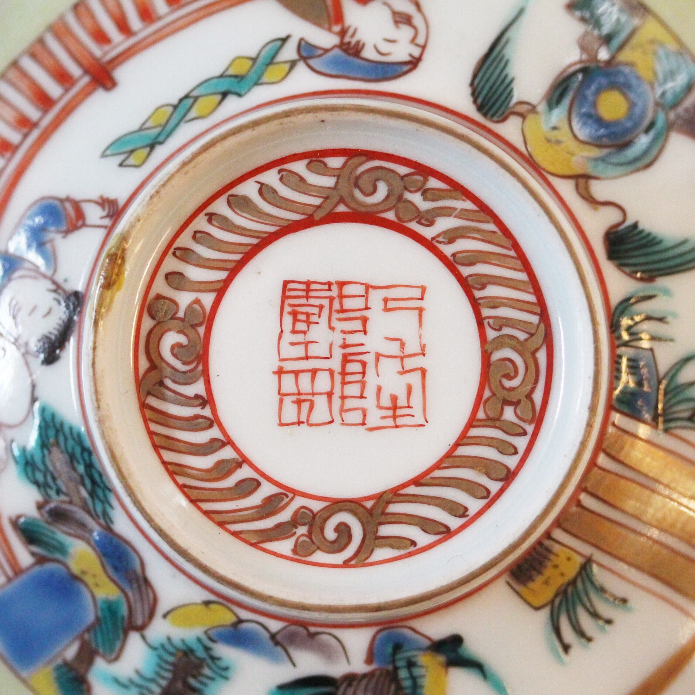 A charming octagonal porcelain bowl and cover, with design of Chinese figures and landscape. The design seemed to be popular in Japan from the late 18th century to the early 19th century.