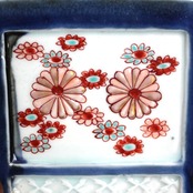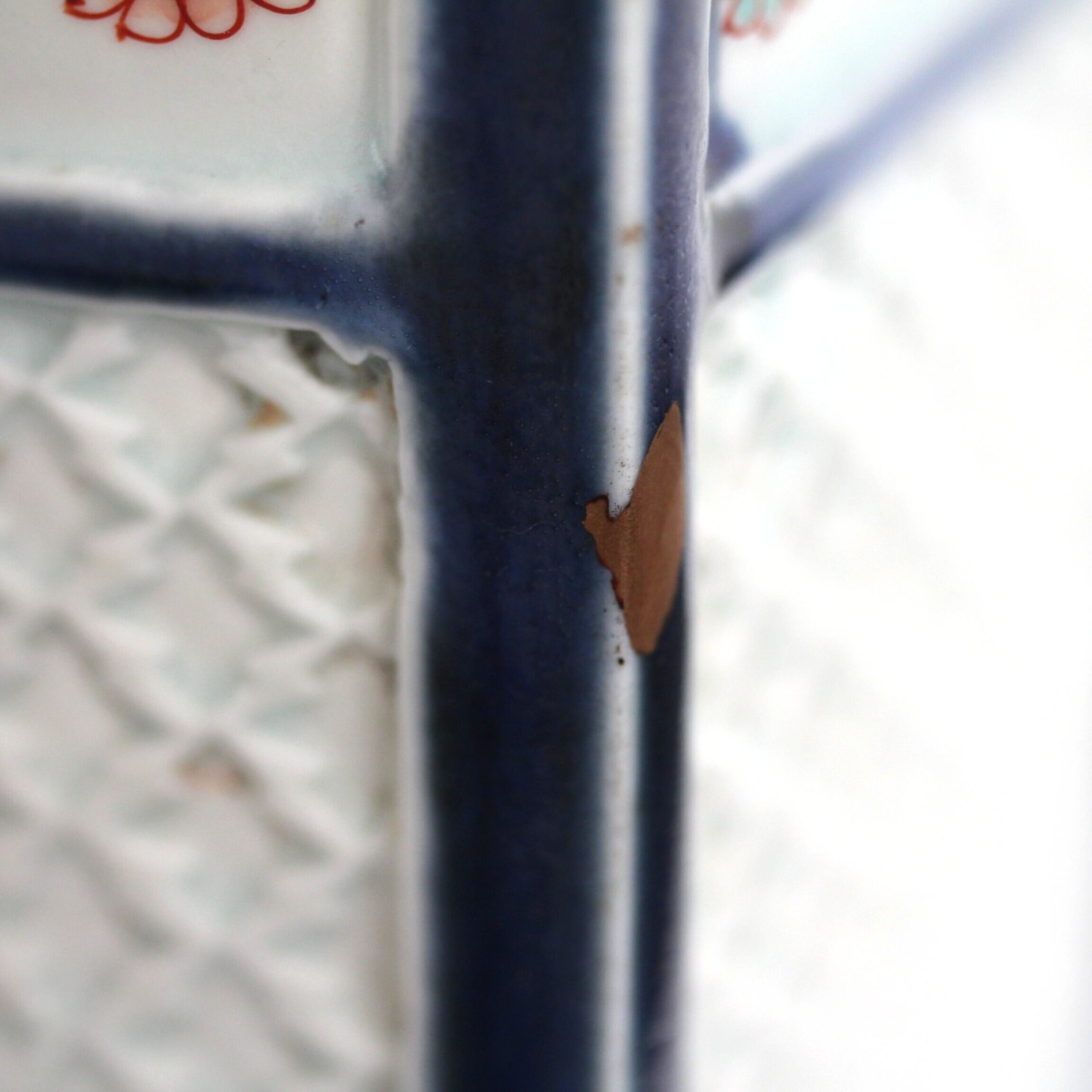 その上部の窓は、菊の意匠。陽刻で表された2つの菊花を中心に、色絵を用い、小花を散らしています。