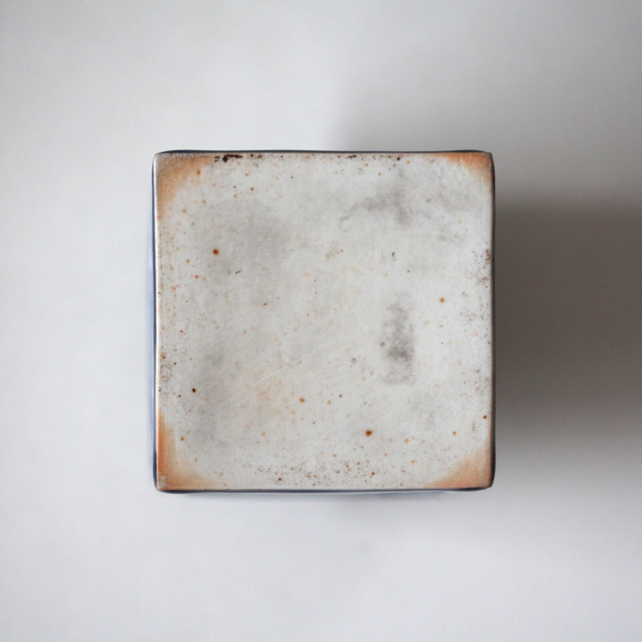 胴の側面4面は、型押しによって上下の空間に分け、また染付のラインで隔てています。