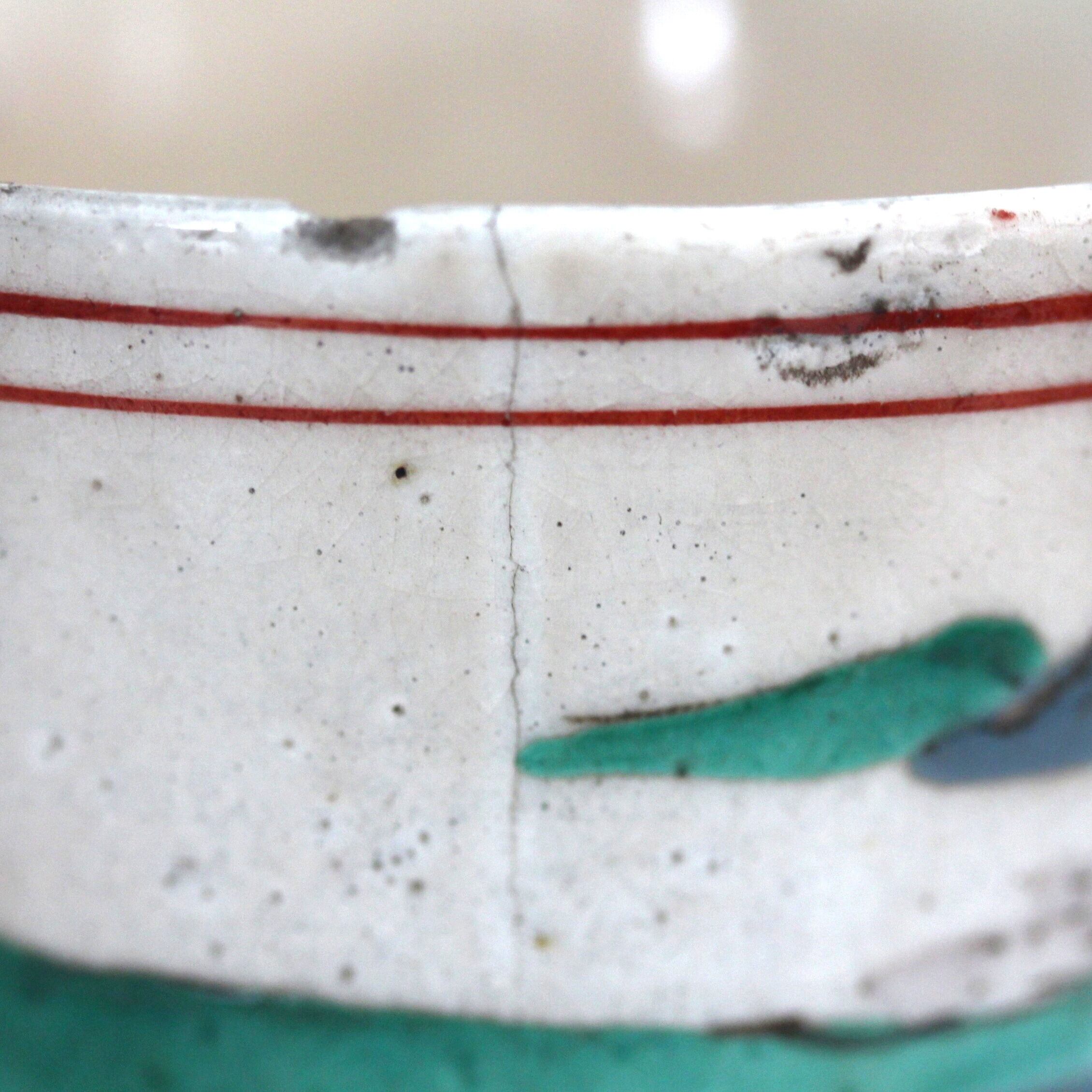 口縁の内側に使用による欠けが生じ、グレー味を帯びた胎土が現れています。