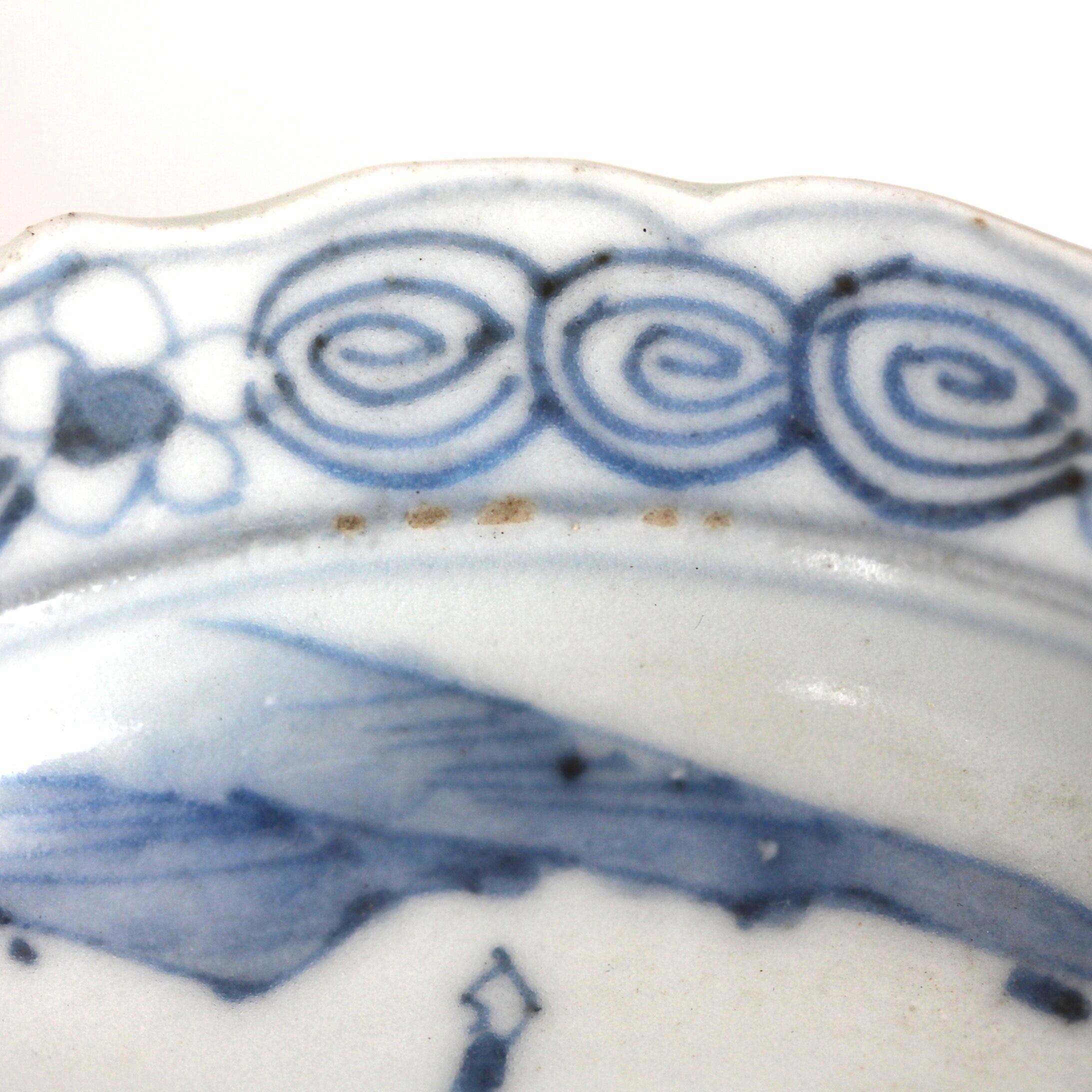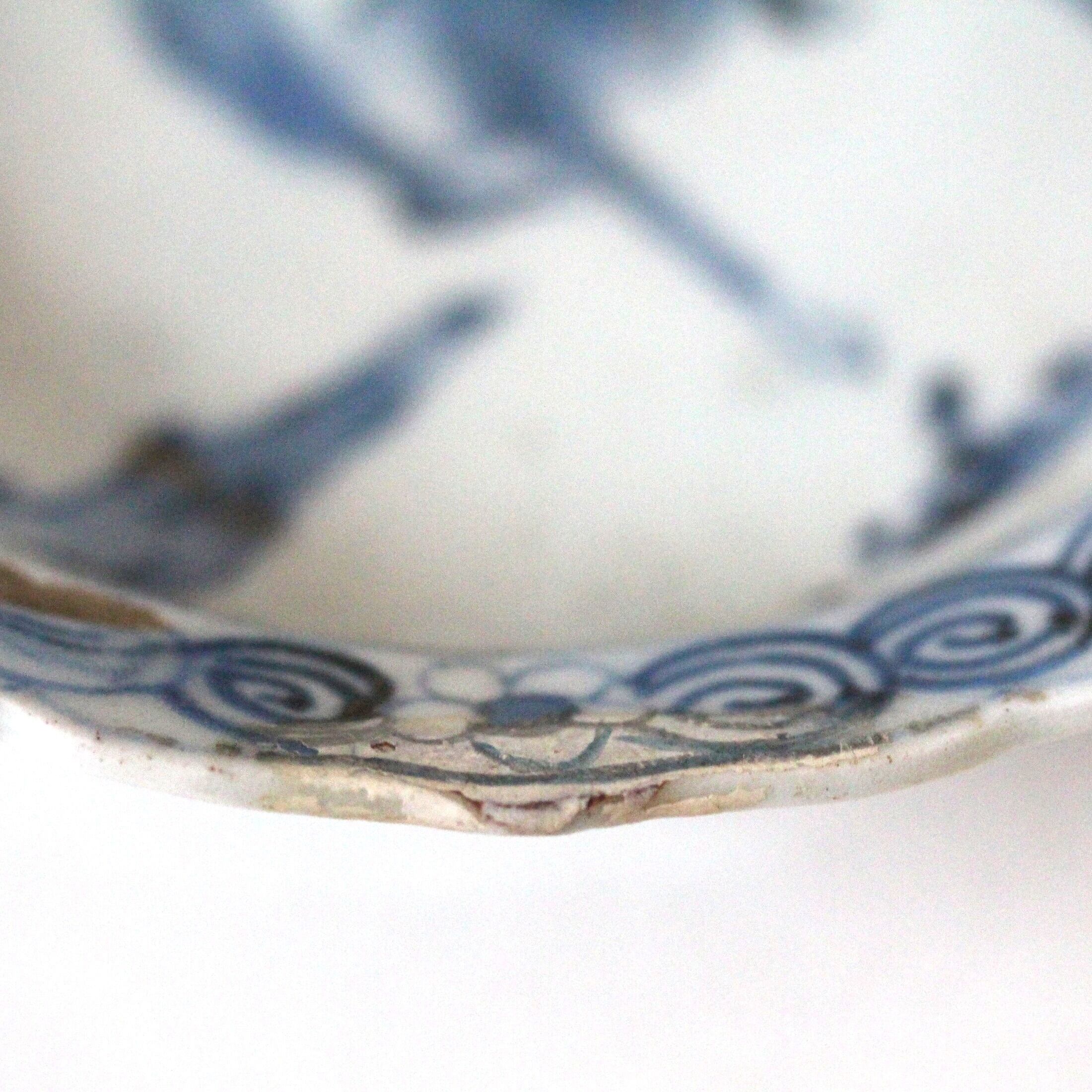 Condition : A repaired chip on the rim. Glaze defects. Minor chips on the base.