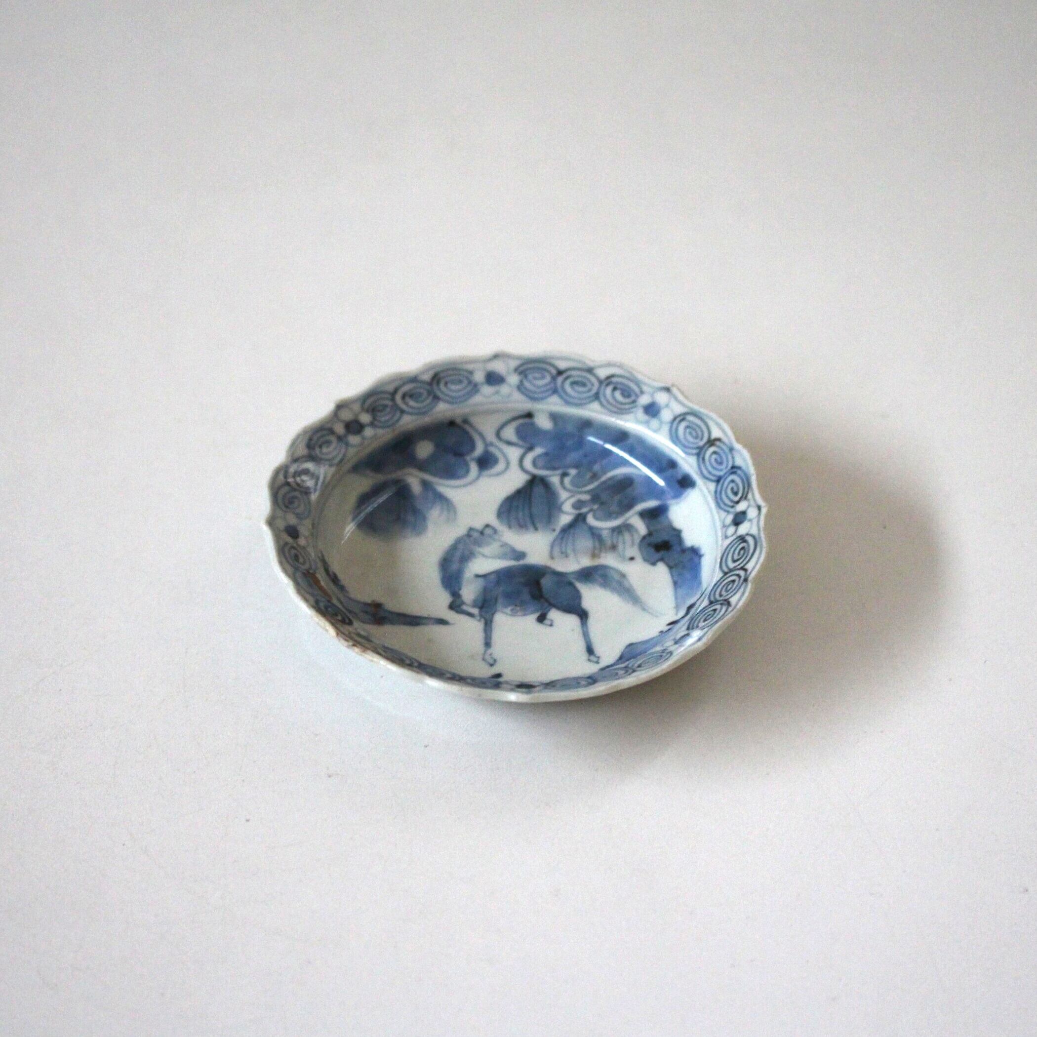 馬の姿がほほえましい染付の小皿です。
