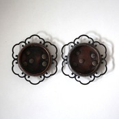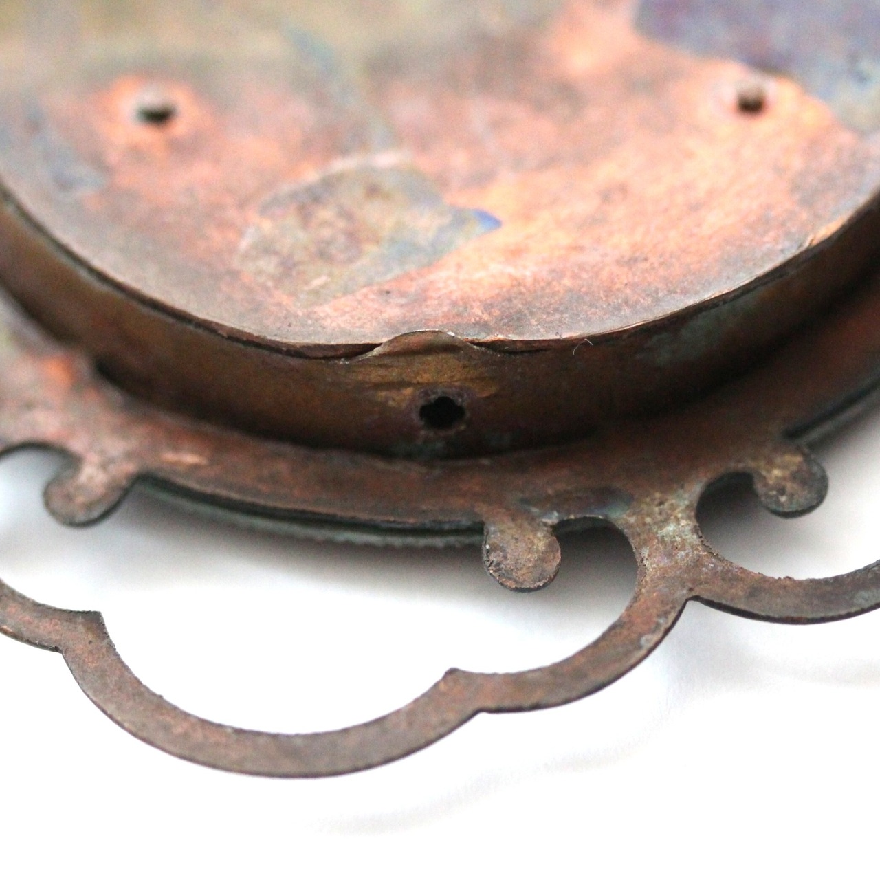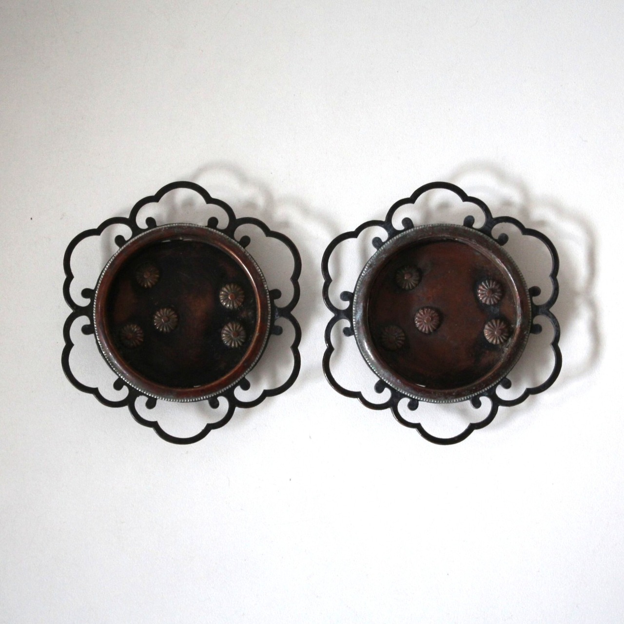 銅製輪花菊花文引手(一対)d8.8cm Pair of Copper Flower Shaped Hikite Door Pull Handles, Chrysanthemums Design 19th-20th C | HANAFUDA