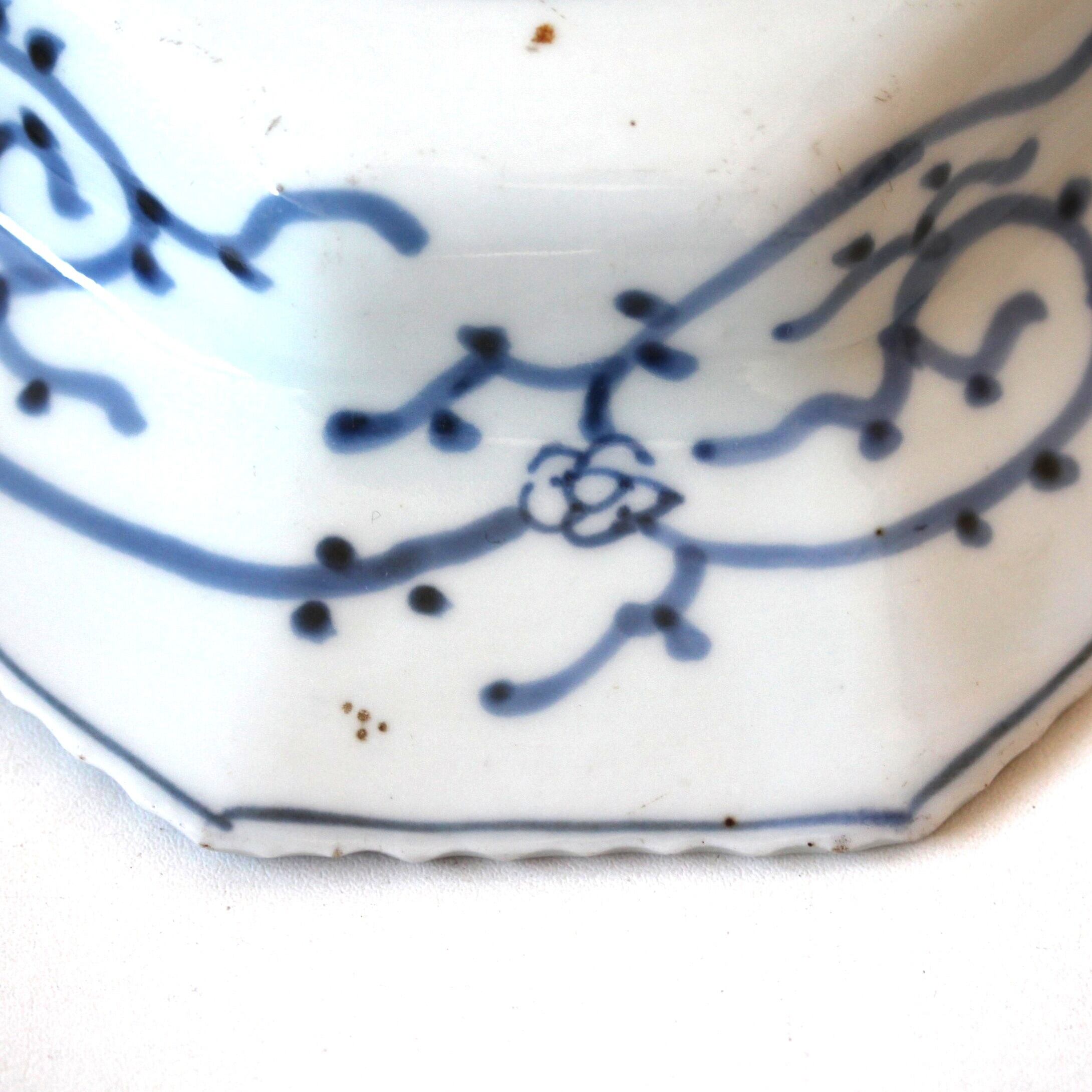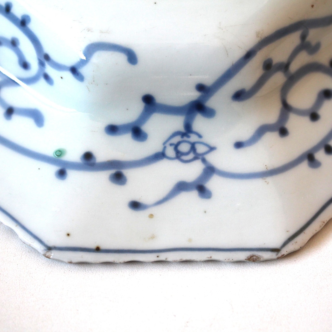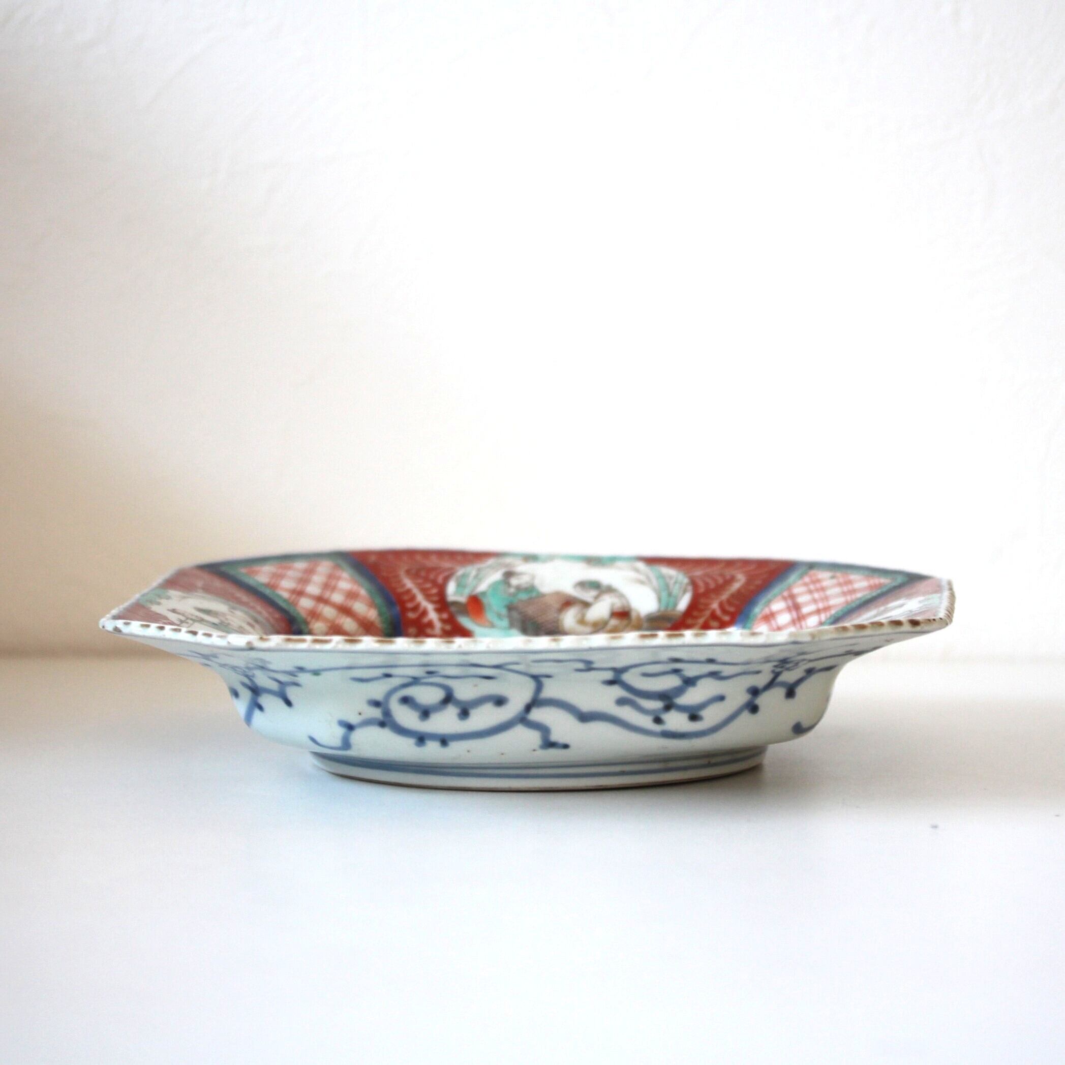 菊がモチーフとなった、古伊万里の隅切形のうつわです。