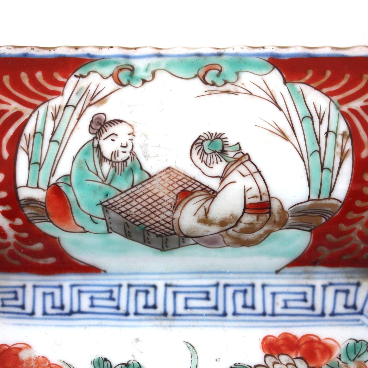 この一客のみで入手したのですが、もしかしたら、もとは本品と対となる同形同寸の皿があって、そちらには「琴」や「書」の図が描かれていたのかもしれません。