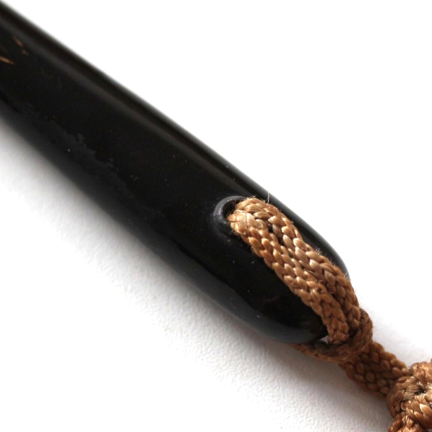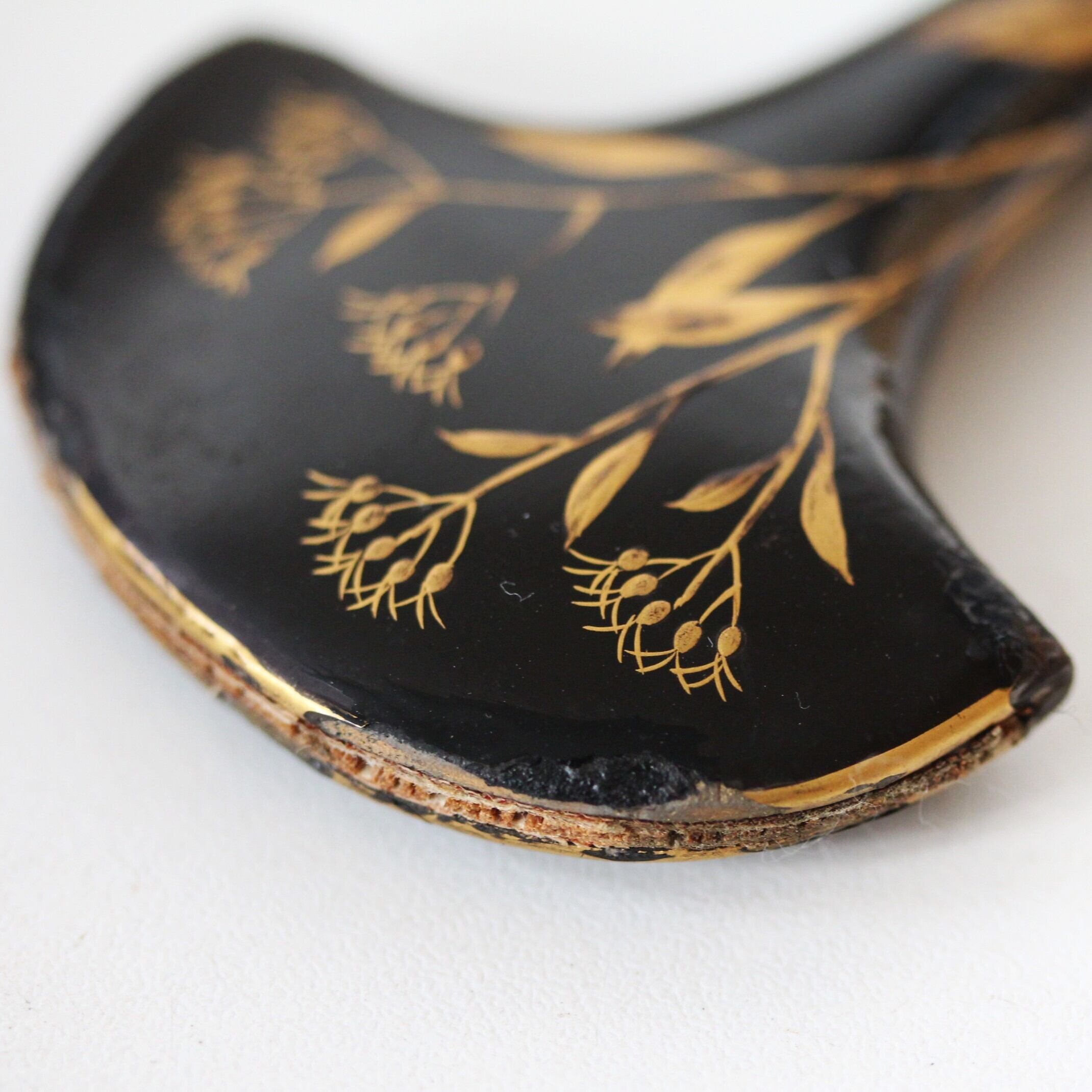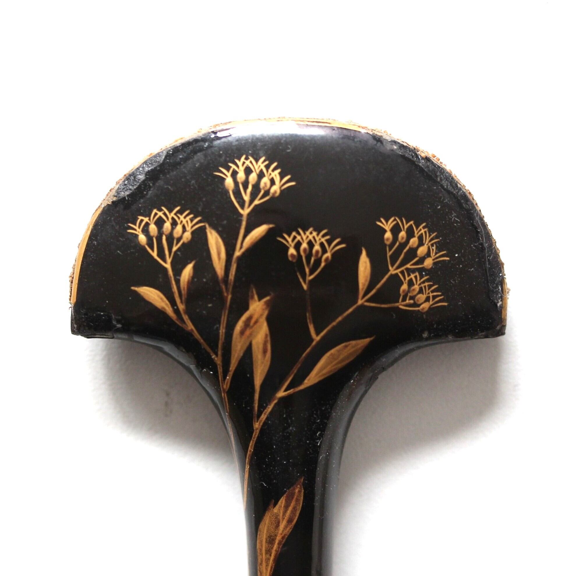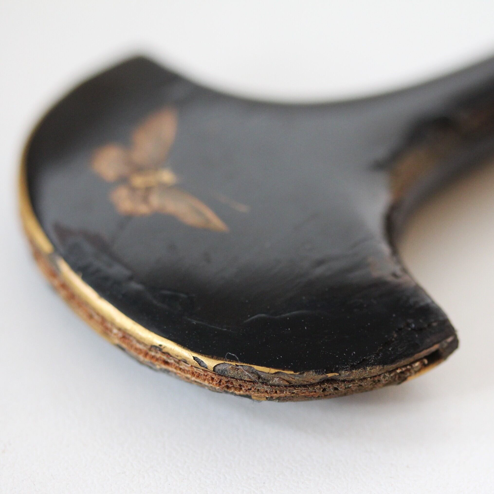 A charming lacquered wooden handle for Japanese uchiwa fan, with design of fujibakama boneset, and a buttefly on the other side.