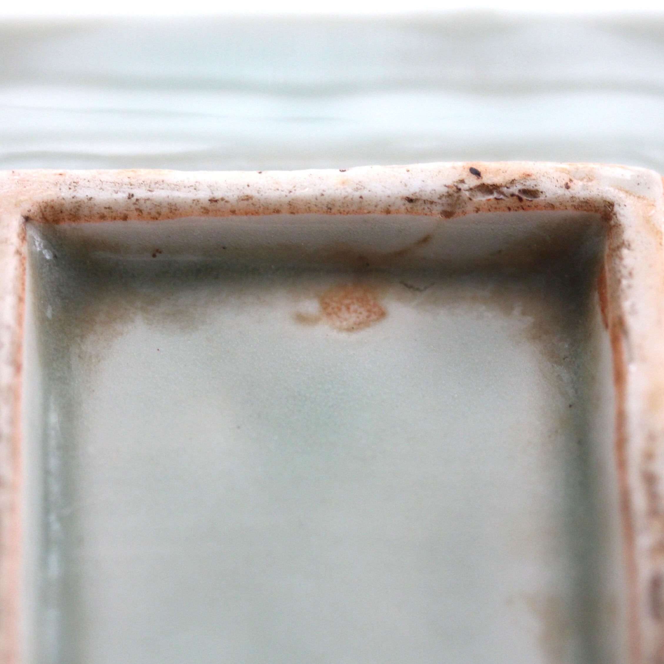 状態:口縁にニュウ。隅部裏面に小ホツ。高台内に小さな釉切れ。