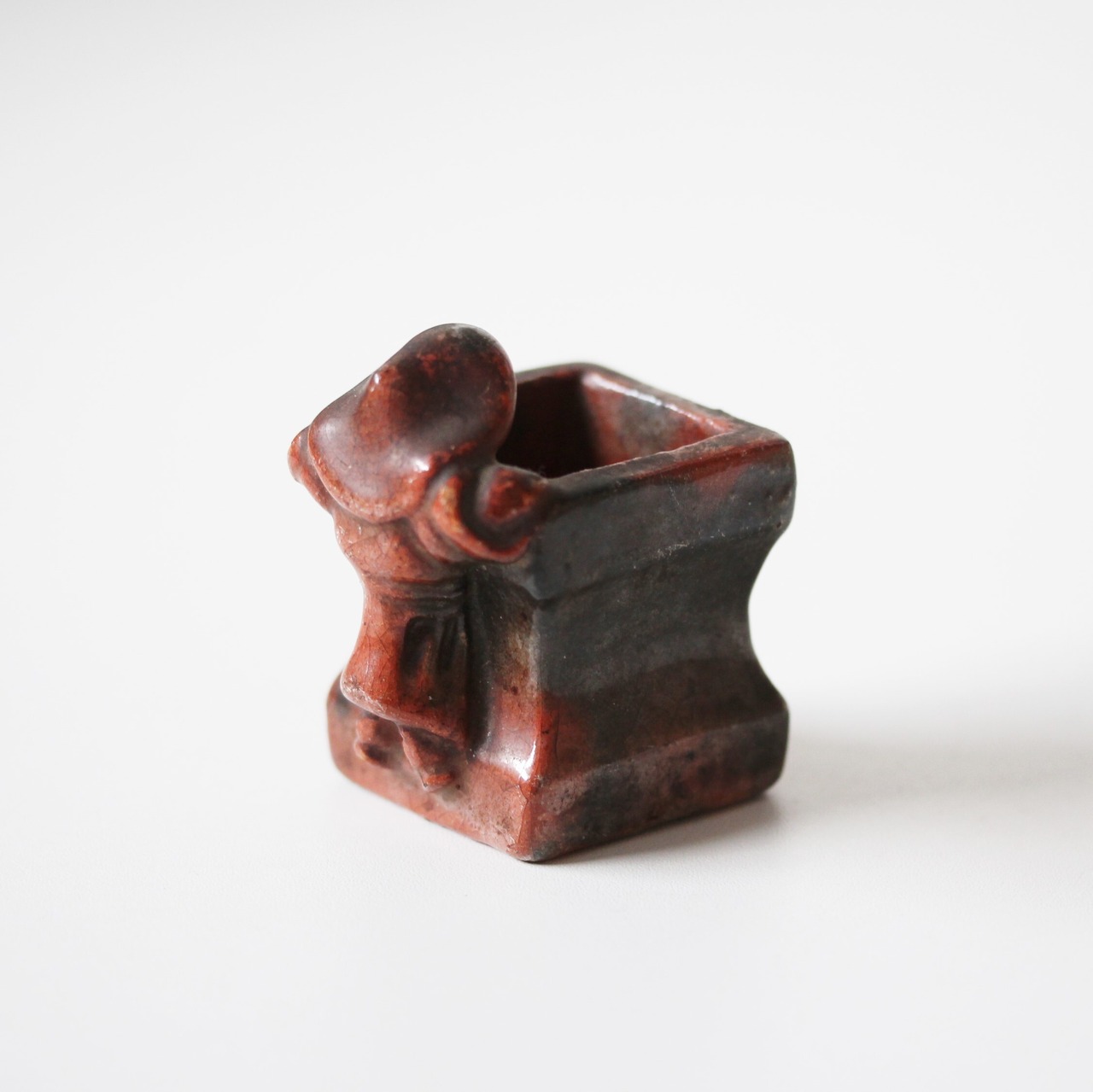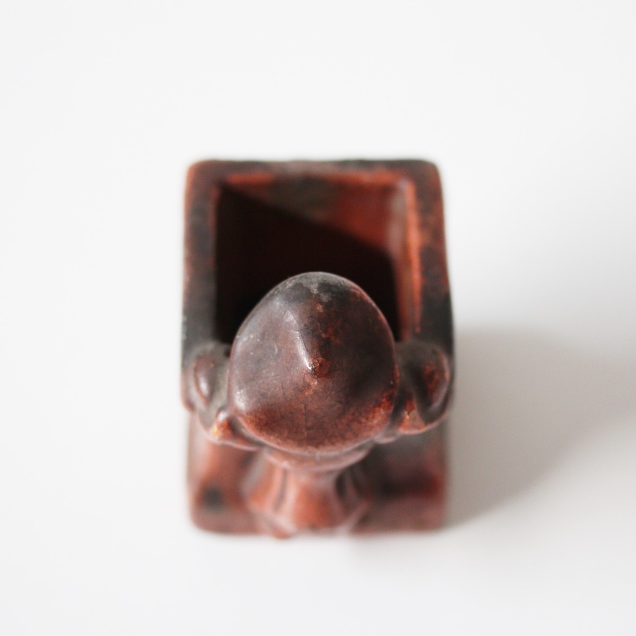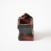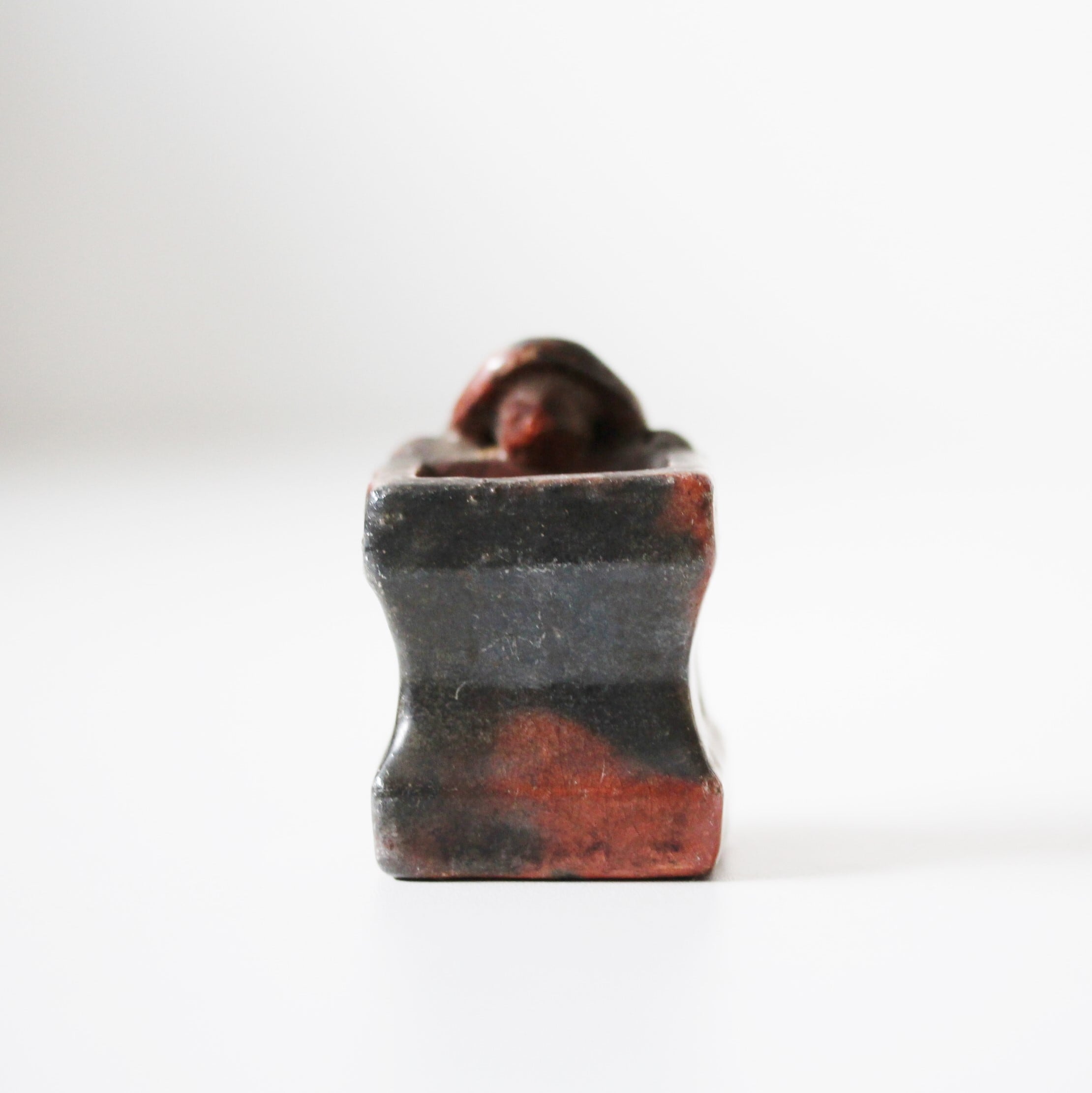 A charming antique red raku ware futaoki lid rest for matcha tea ceremony.