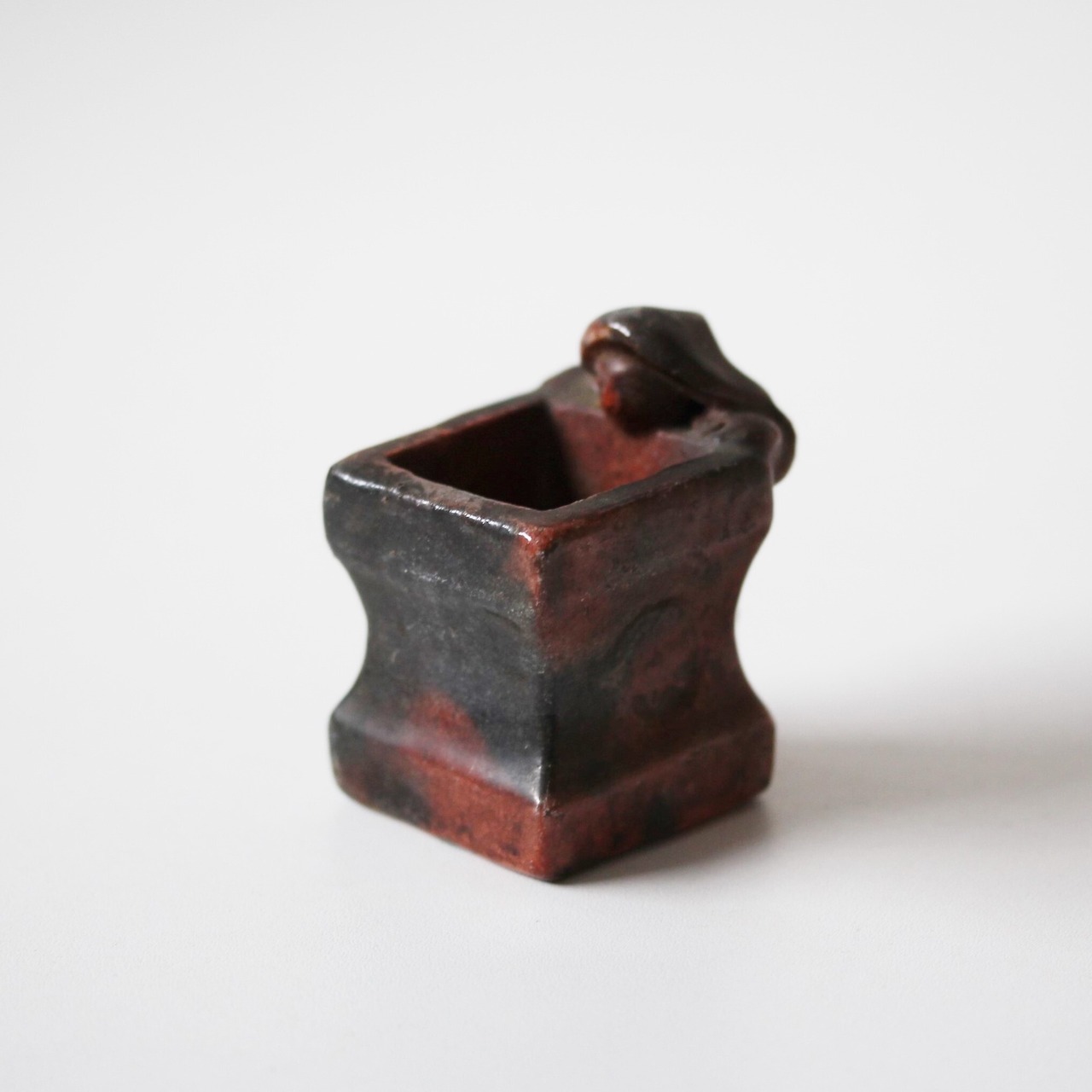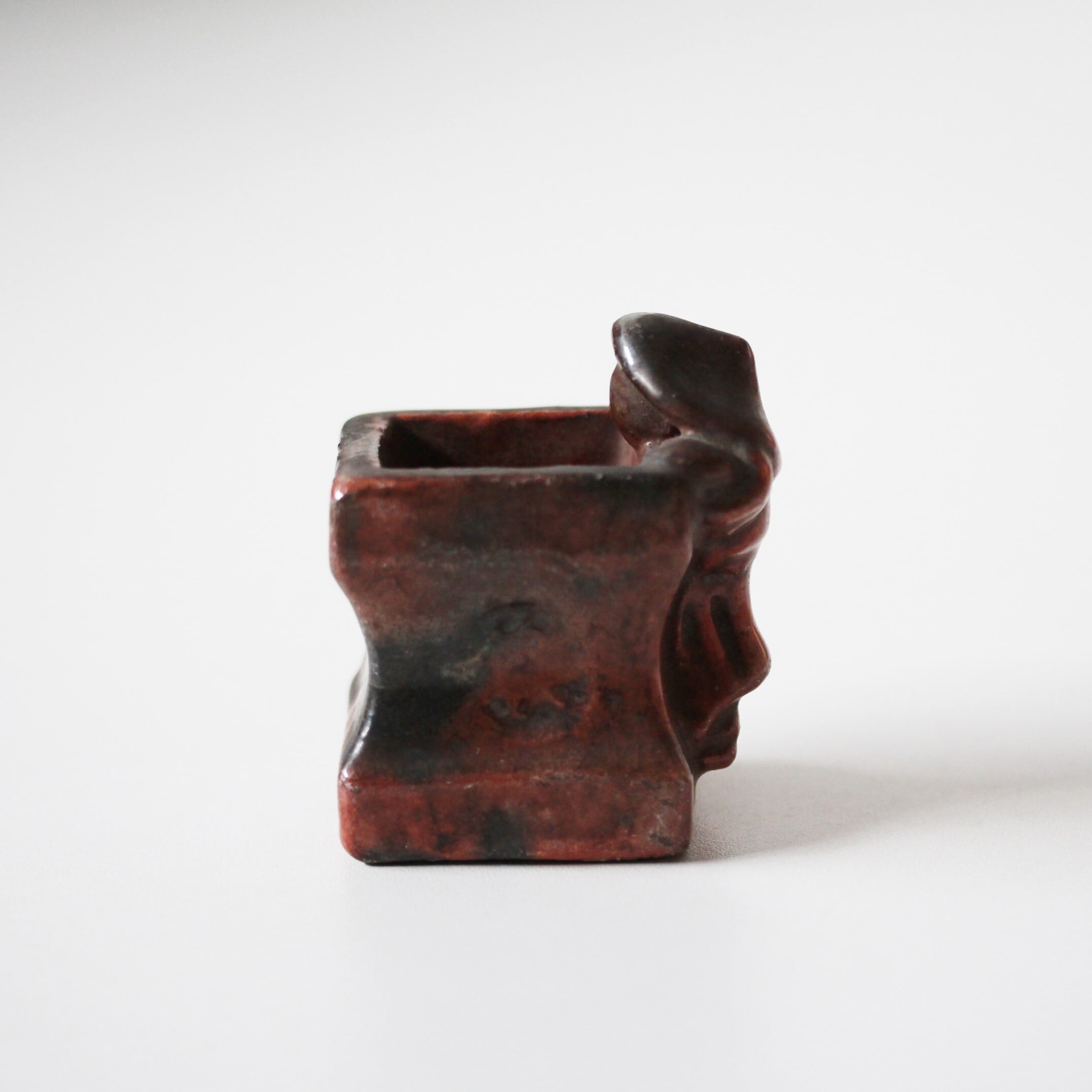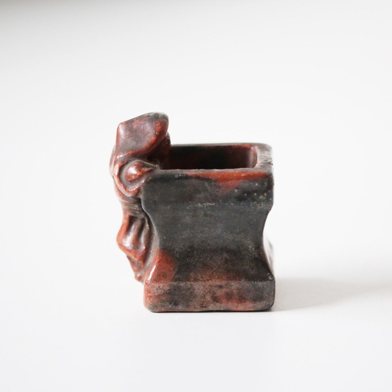 A charming antique red raku ware futaoki lid rest for matcha tea ceremony.