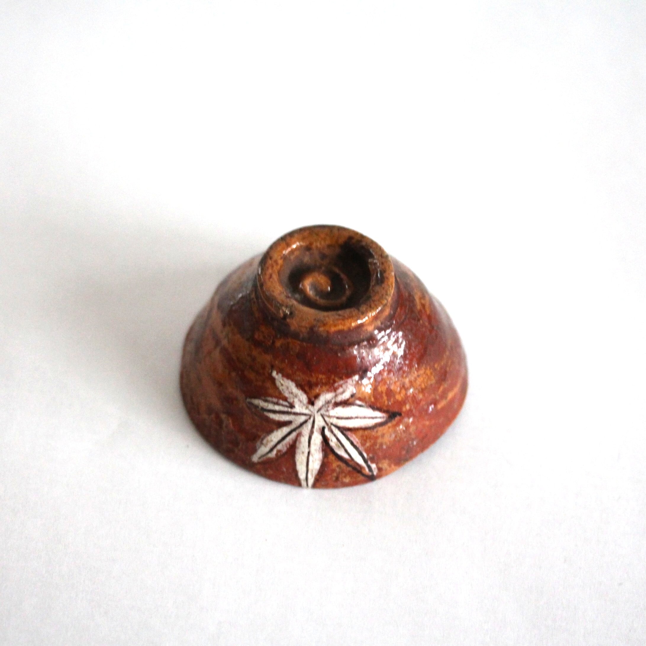 その周辺の釉薬が剥がれて、偶然にももみじの葉を思わせるような文様にも見えてきます。