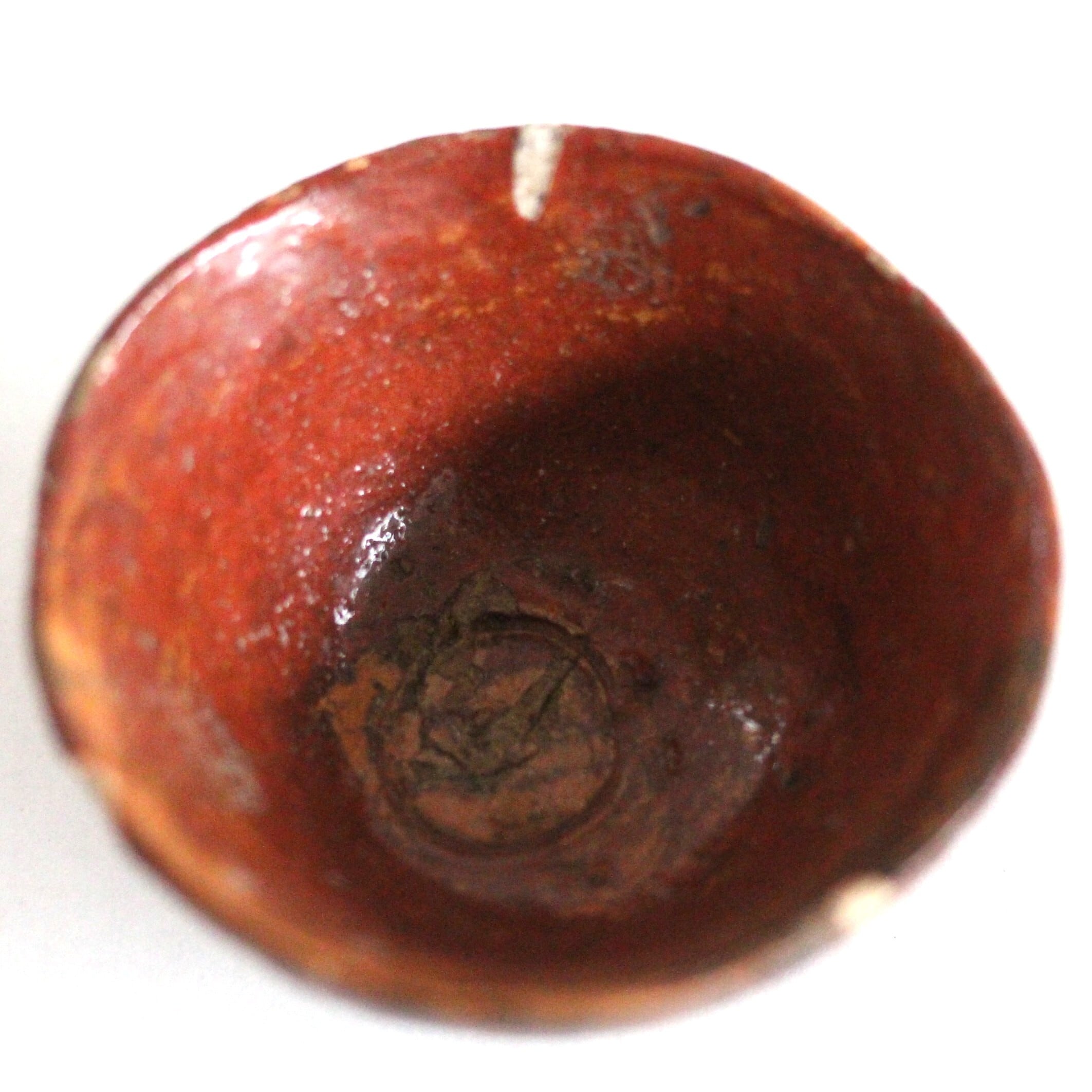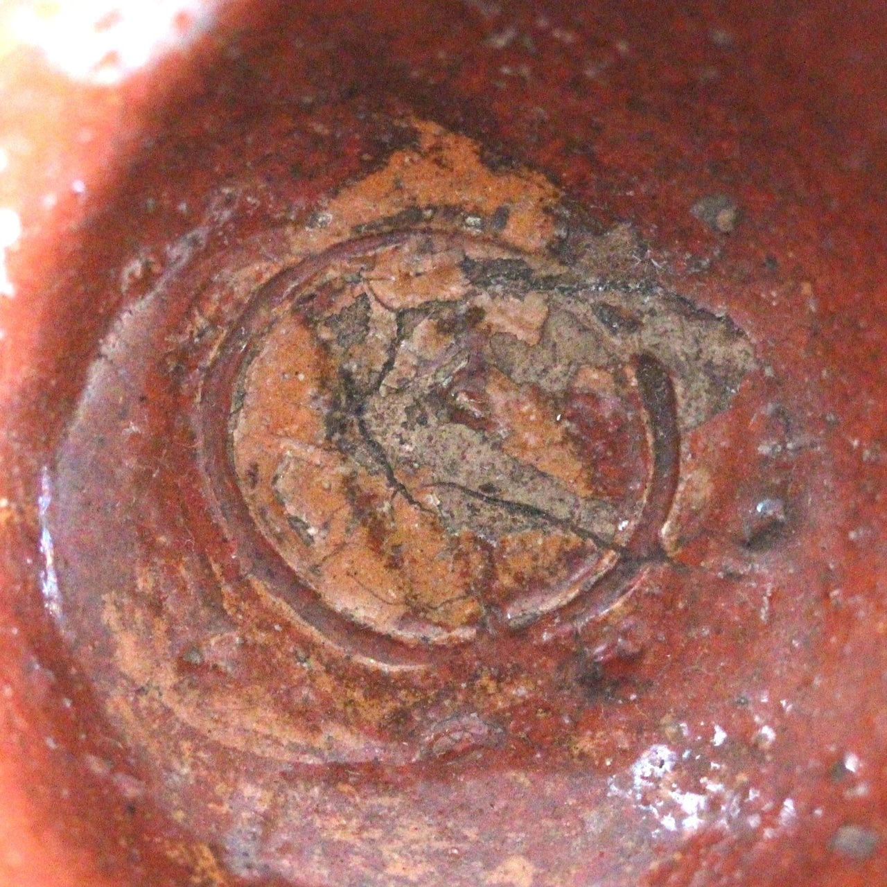赤楽紅葉文盃 d6.6cm Red Raku Ware Cup, White Momiji Maple Leaf Design 19th-20th C