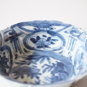古染付蛙文兜鉢 d14.4cm Kosometsuke Type Blue and White Klapmuts Bowl, Design of Frog and Flowers 17th C