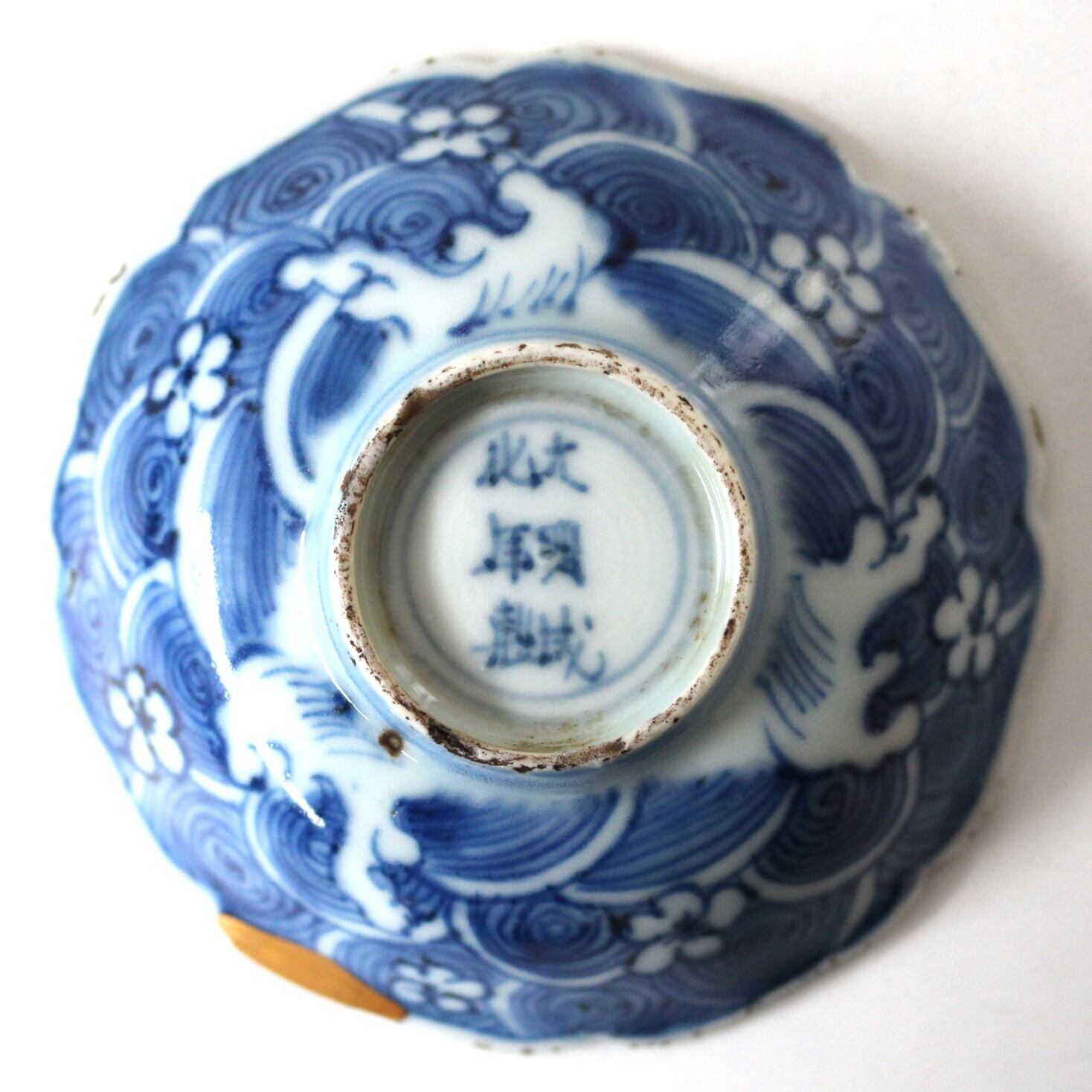 Condition : Minor chips and a kintsugi repaired chip on the rim. Chips and cracks on the base.