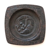 A charming iron door handle called hikite in Japanese. Embossed baby dragon design, and meander pattern around.