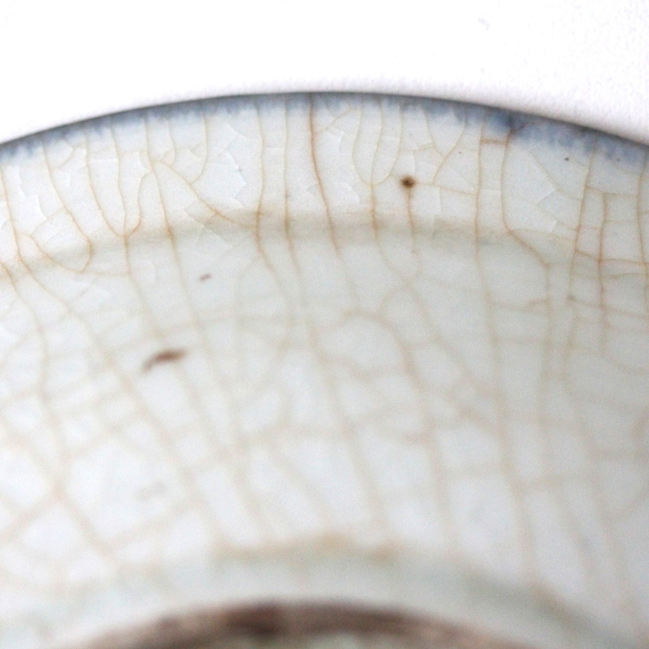 若杉窯の特徴ともいえる器面全体に生じた細かな貫入には、使用によるシミ汚れが入り、実用品だったことを物語るものです。
