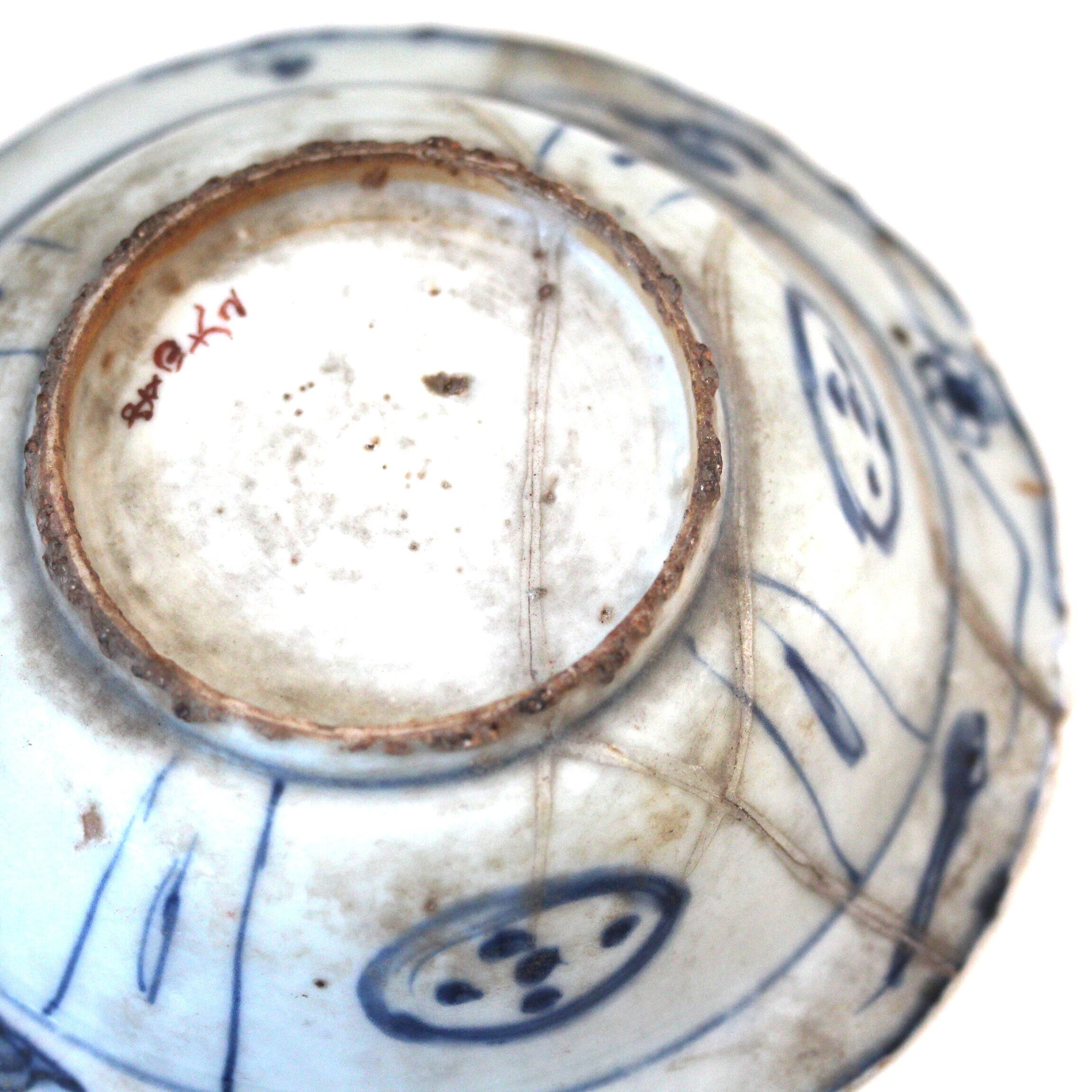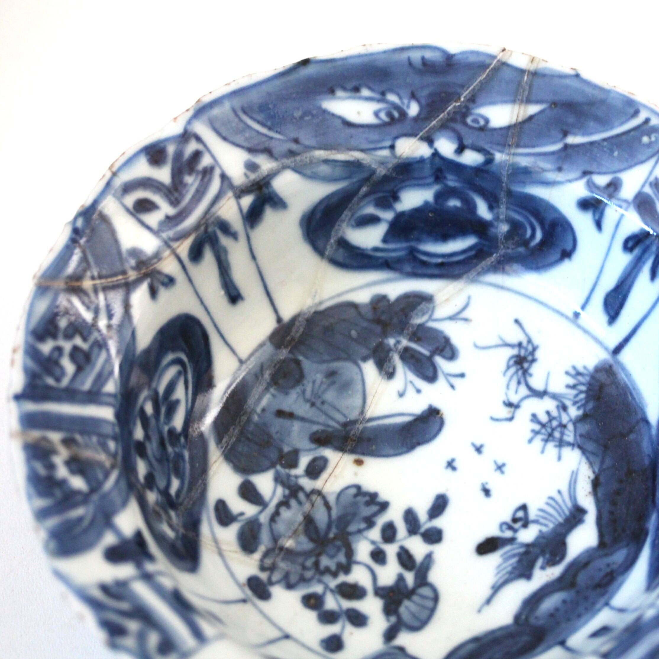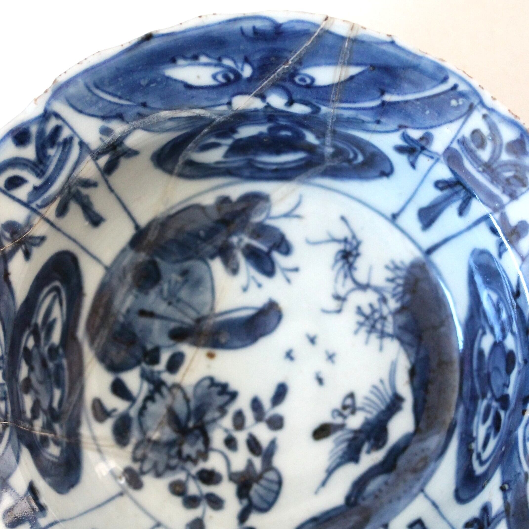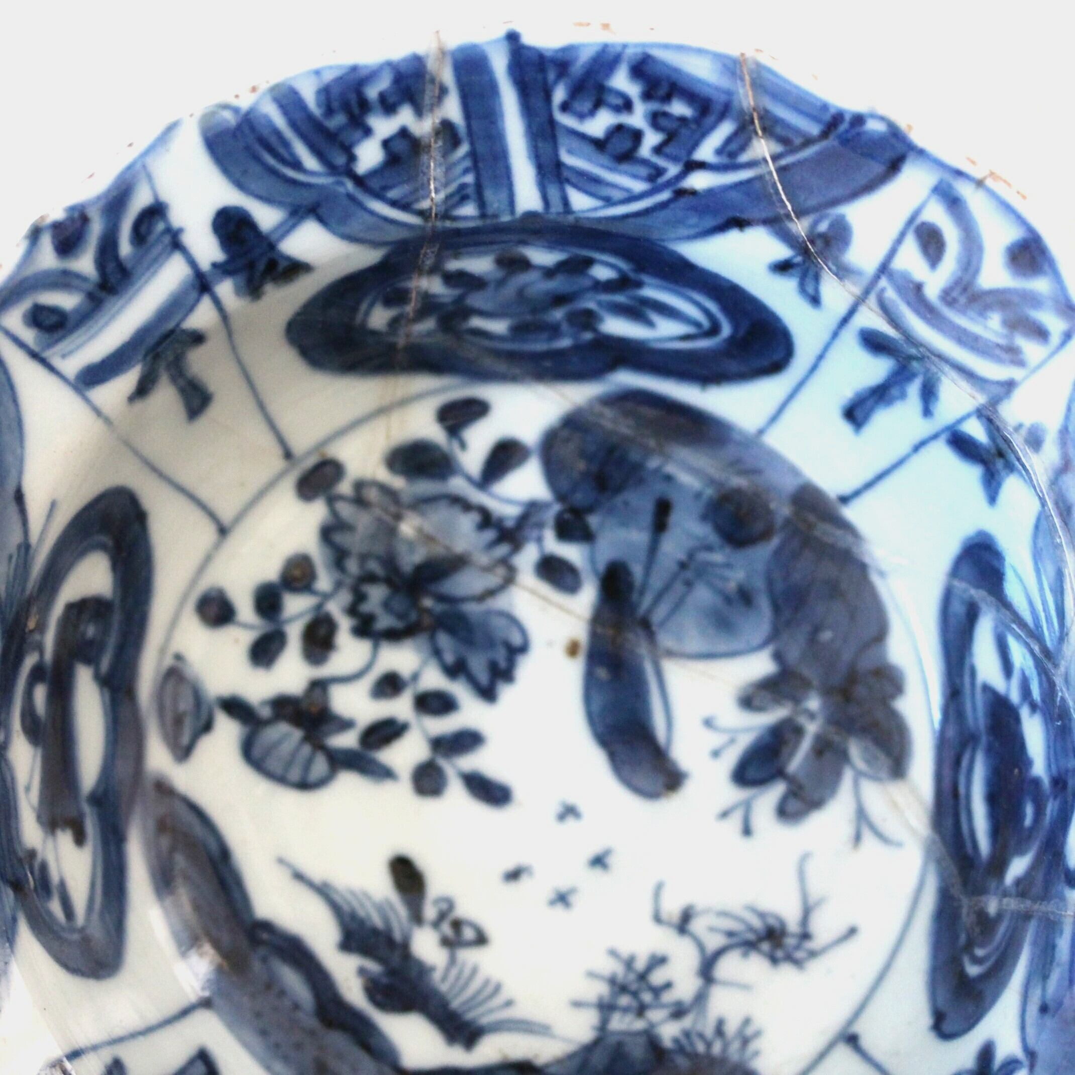 A charming blue and white porcelain bowl, once broken in four parts and repaired with yakitsugi.