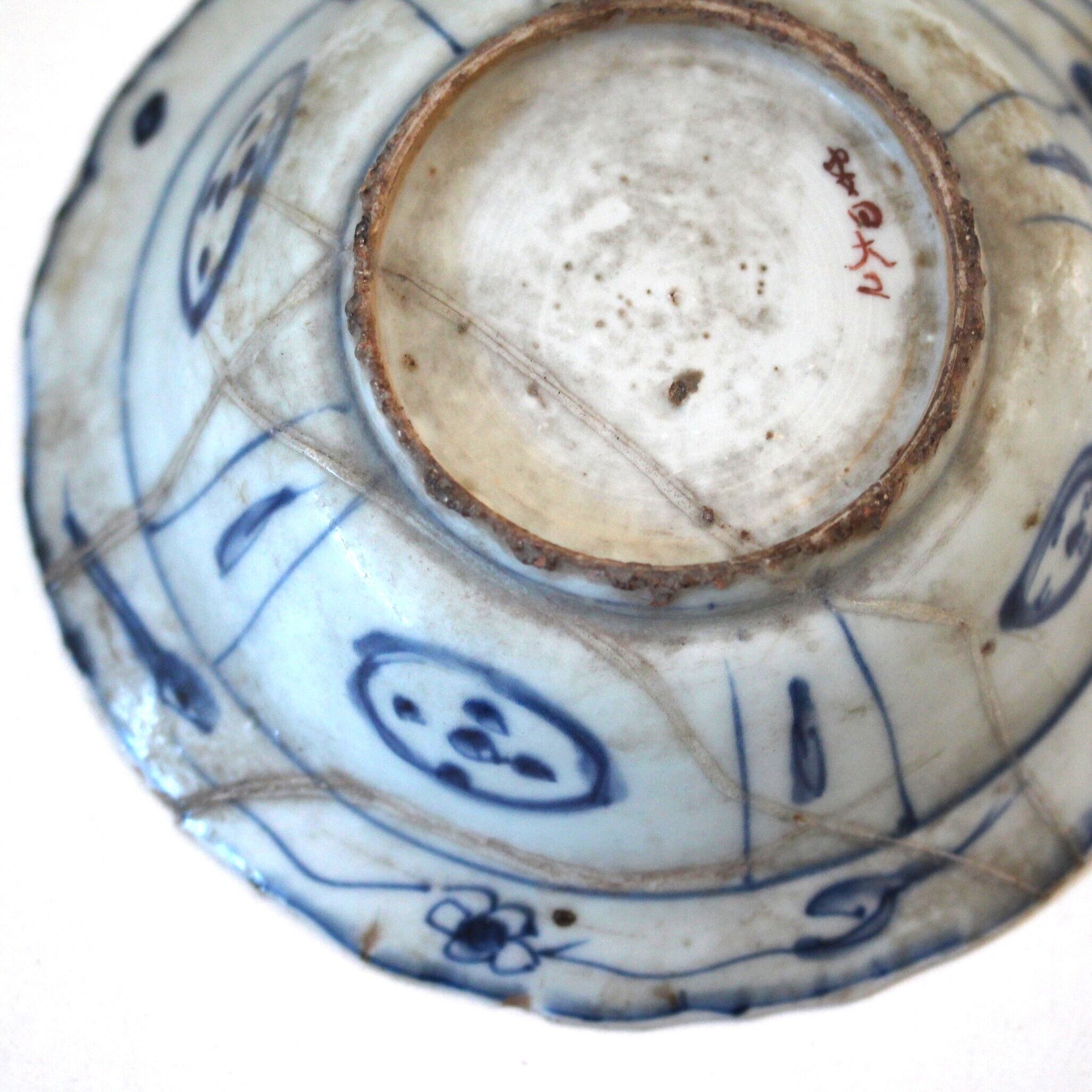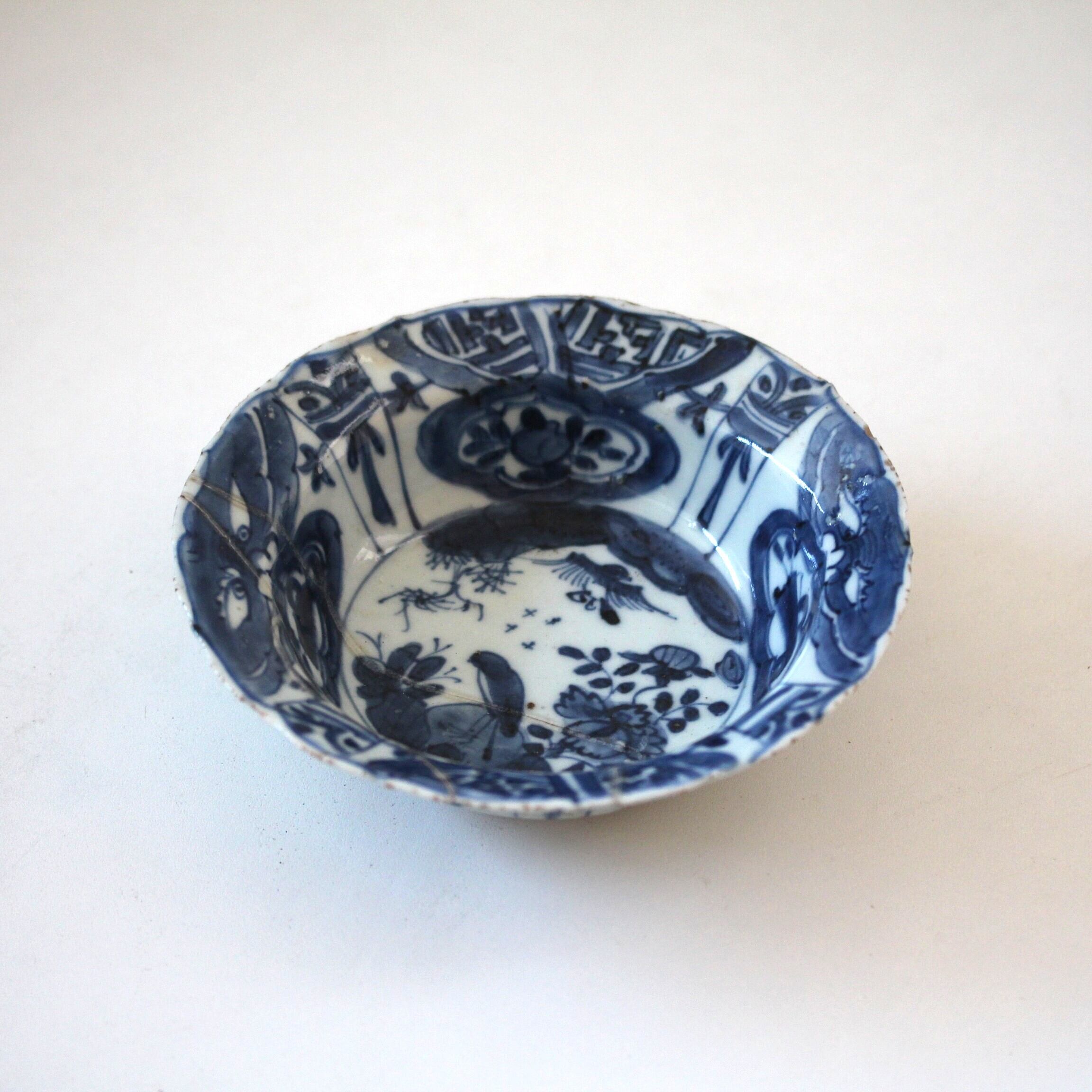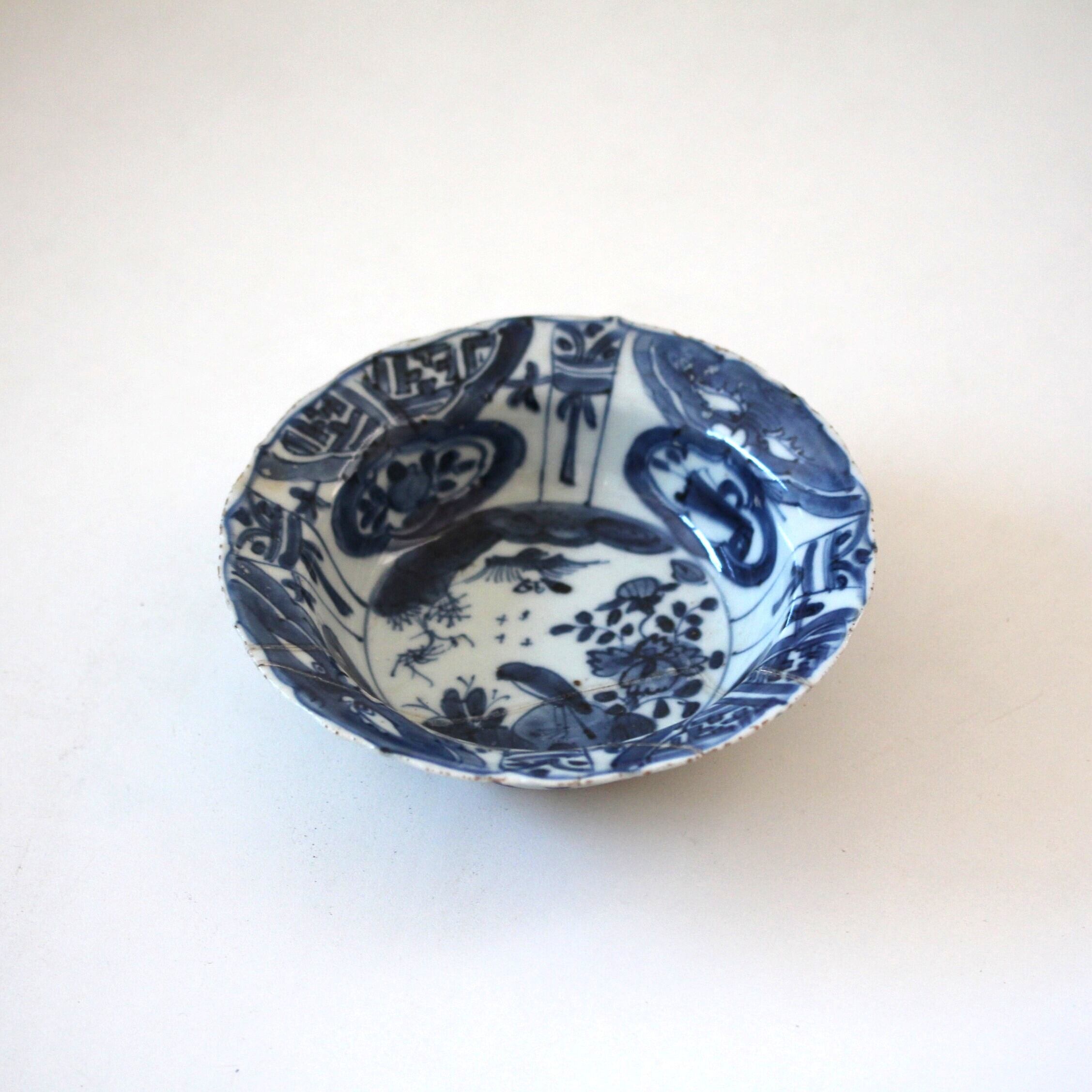 明時代末期に中国の景徳鎮で焼かれ、おそらく江戸時代に日本にもたらされた古染付のうつわです。