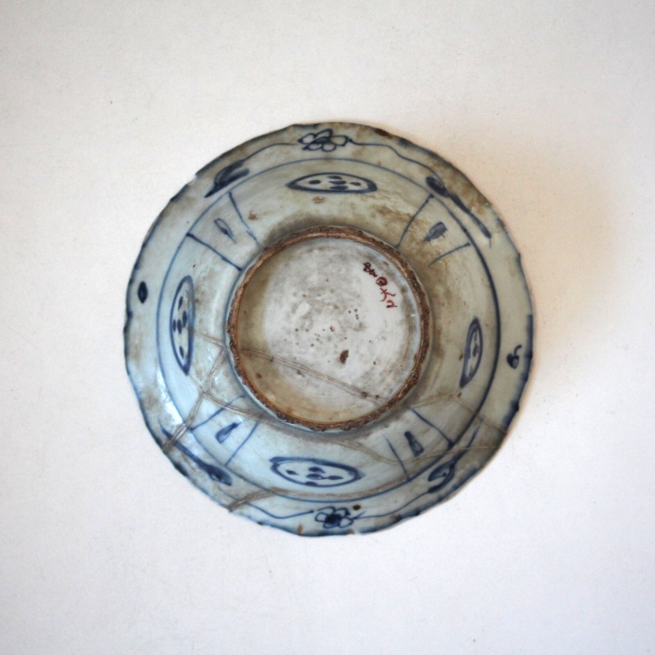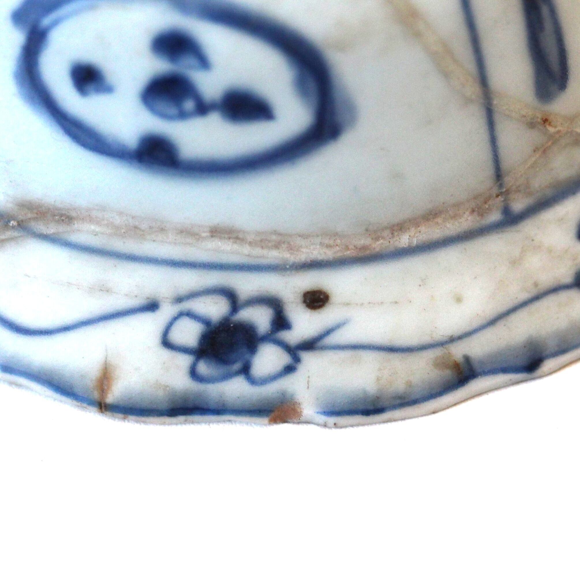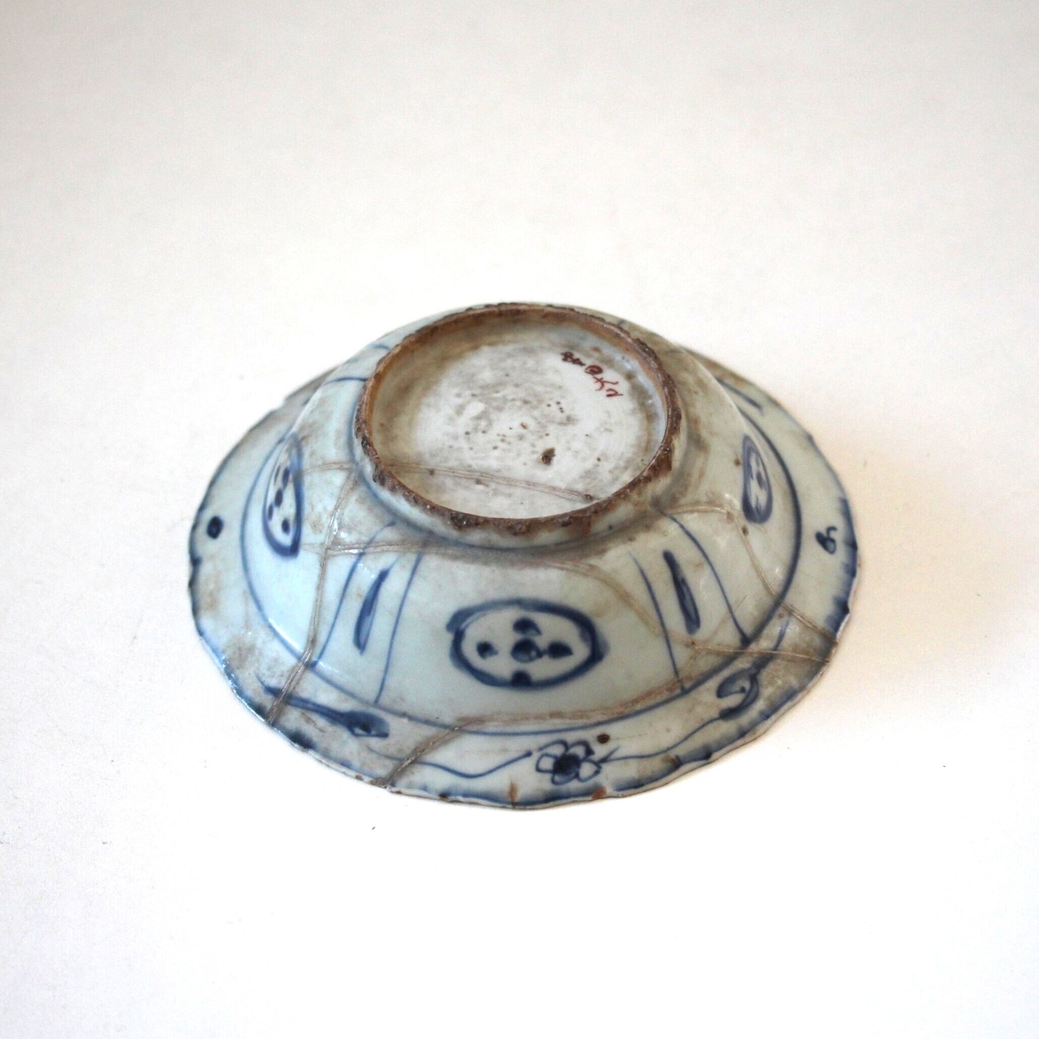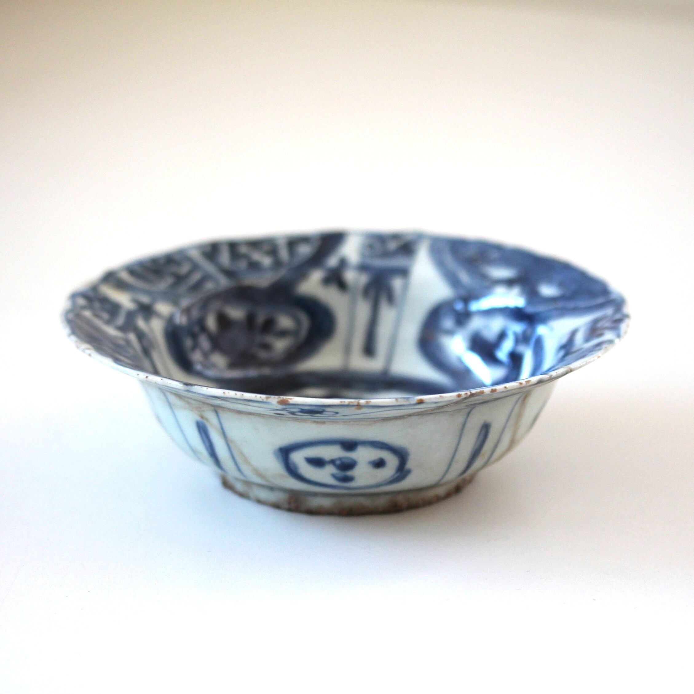 明時代末期に中国の景徳鎮で焼かれ、おそらく江戸時代に日本にもたらされた古染付のうつわです。