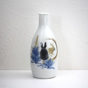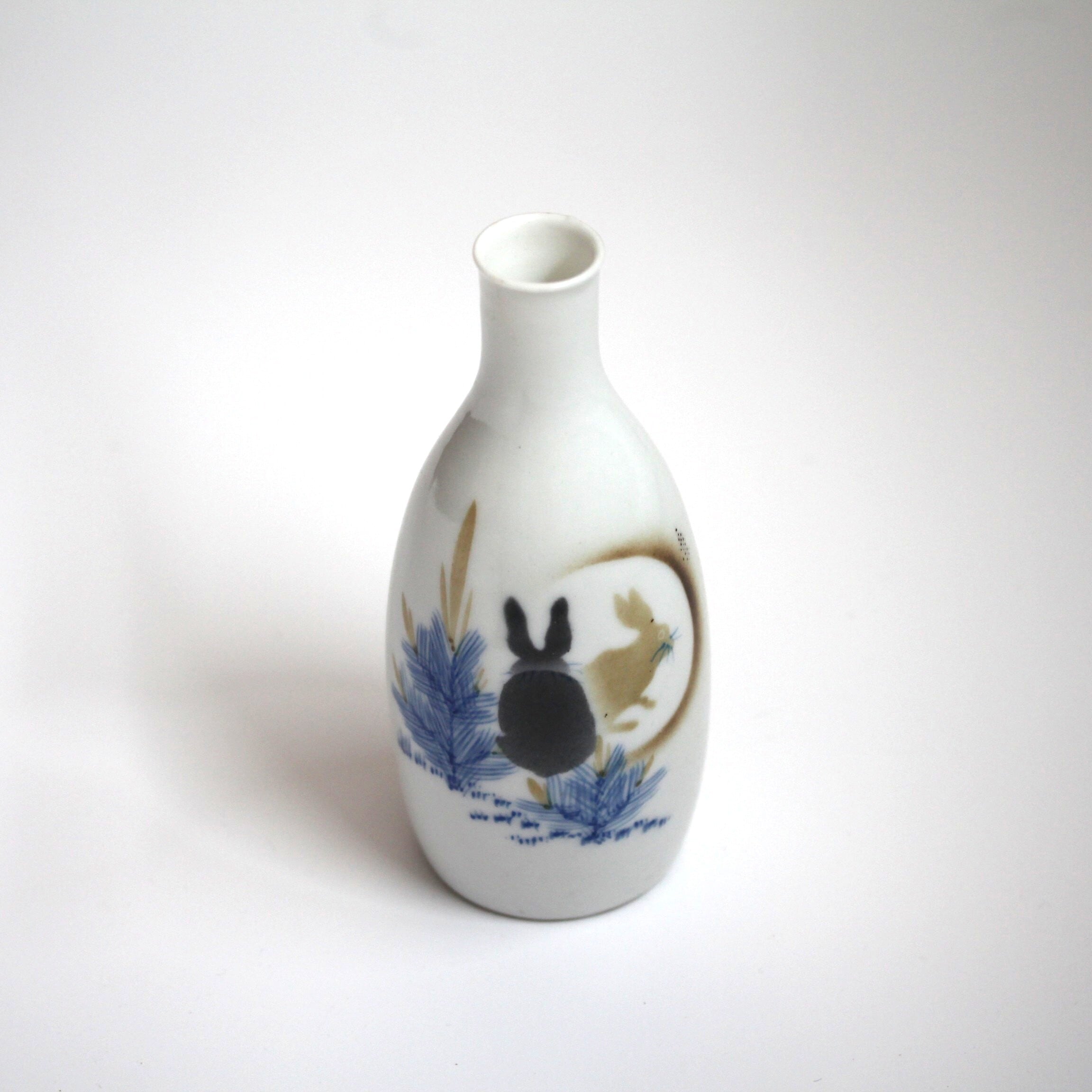 色絵吹墨若松月兎文徳利 h15.8cm Polychrome Bottle, Design of Young Pines, Rabbits and Moon 19th-20th C | HANAFUDA