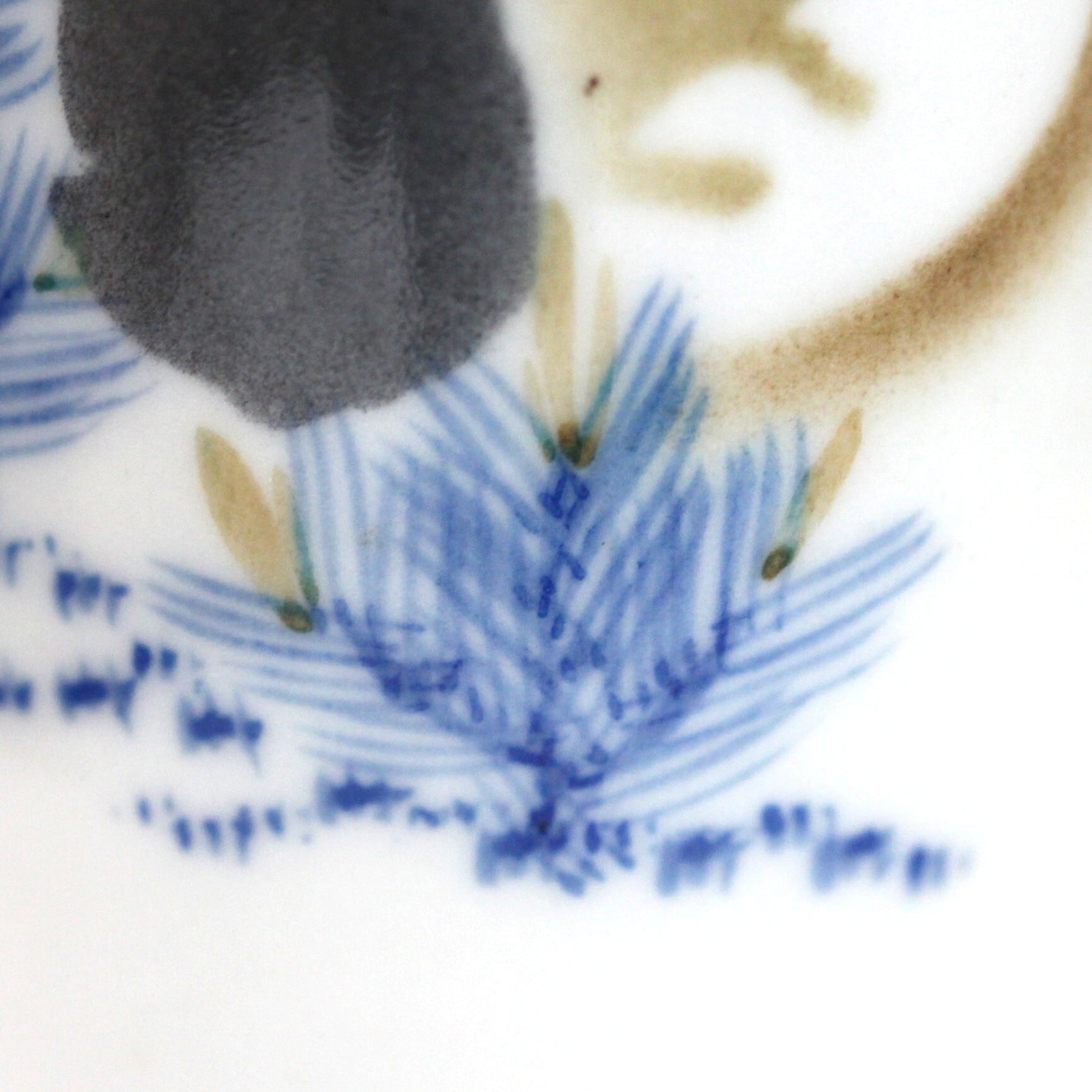 若松のみ、染付で描かれ、月の輪郭や2匹の兎は吹墨の技法で表現されています。