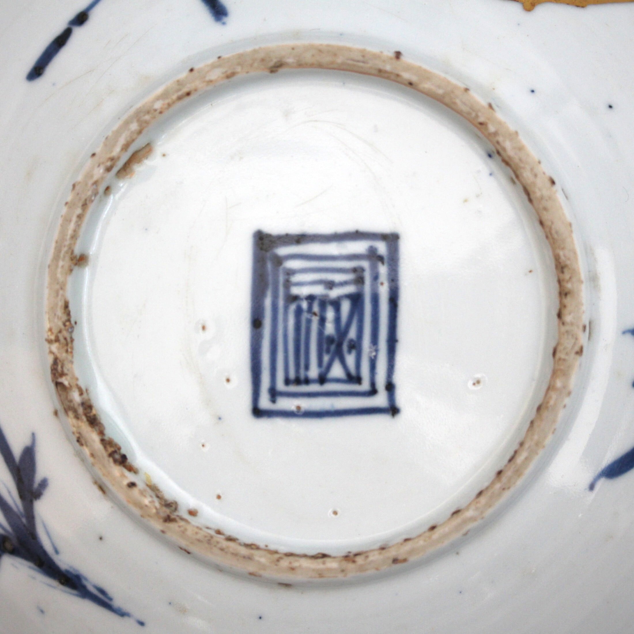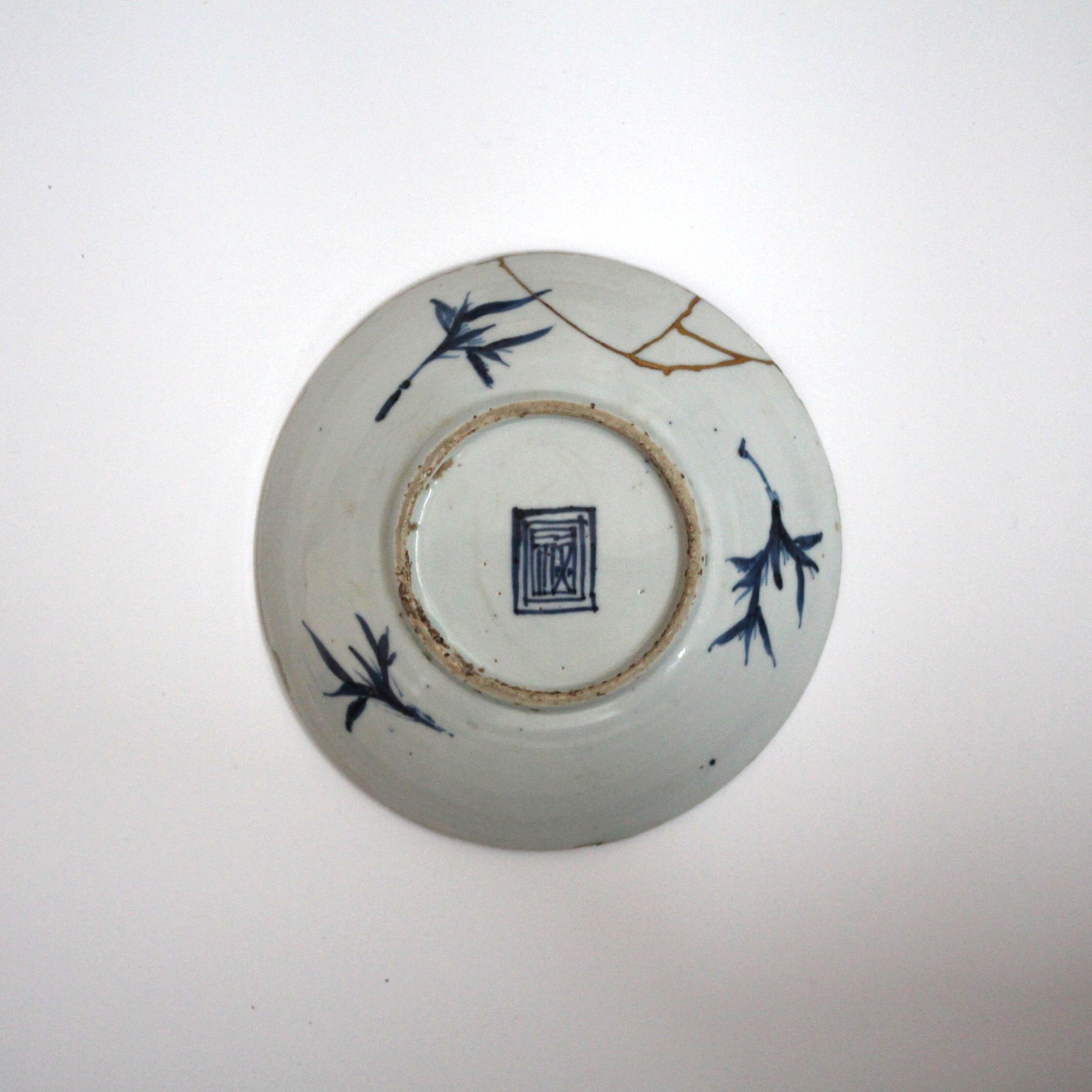 裏面には、三方に竹(笹)、高台内は「福」銘です。