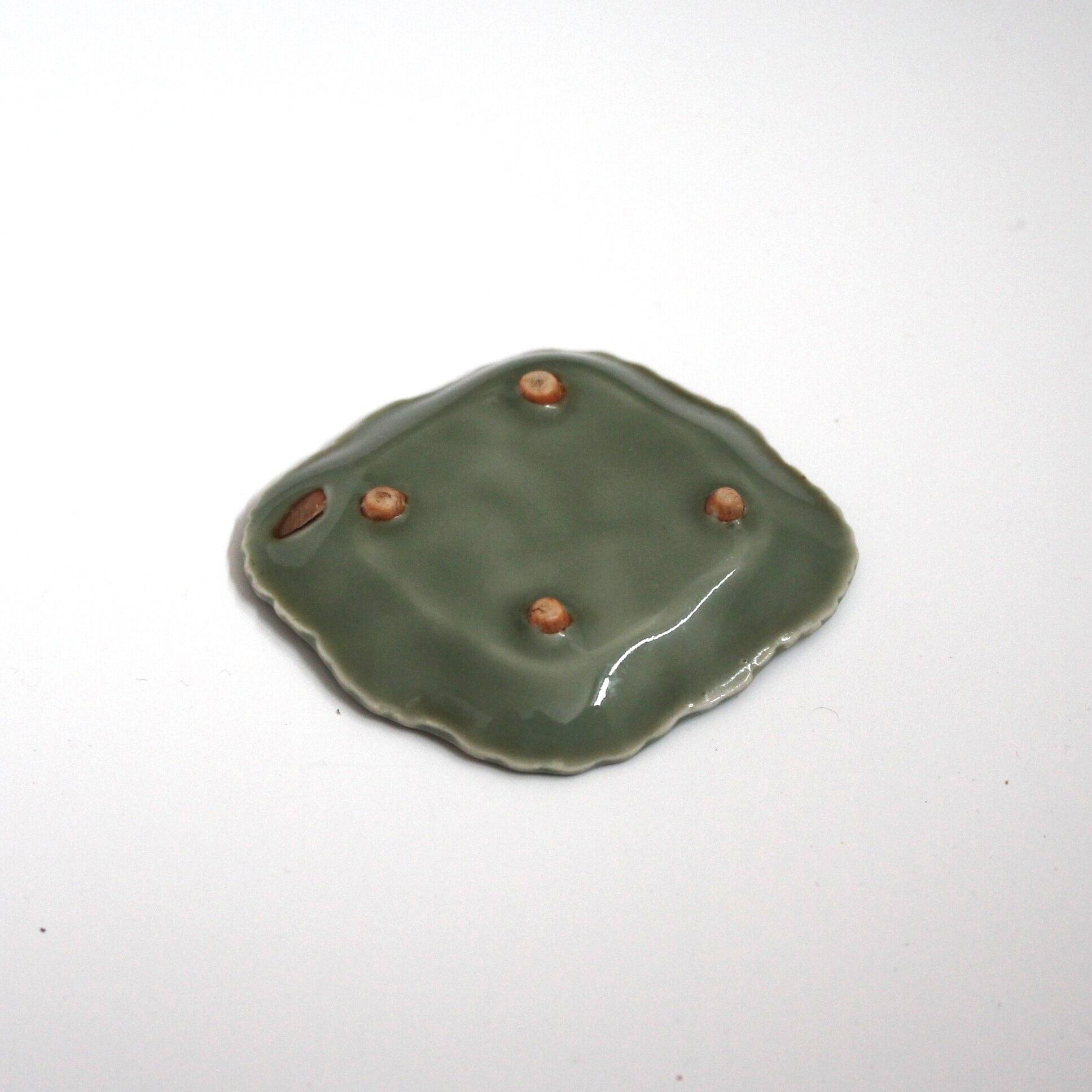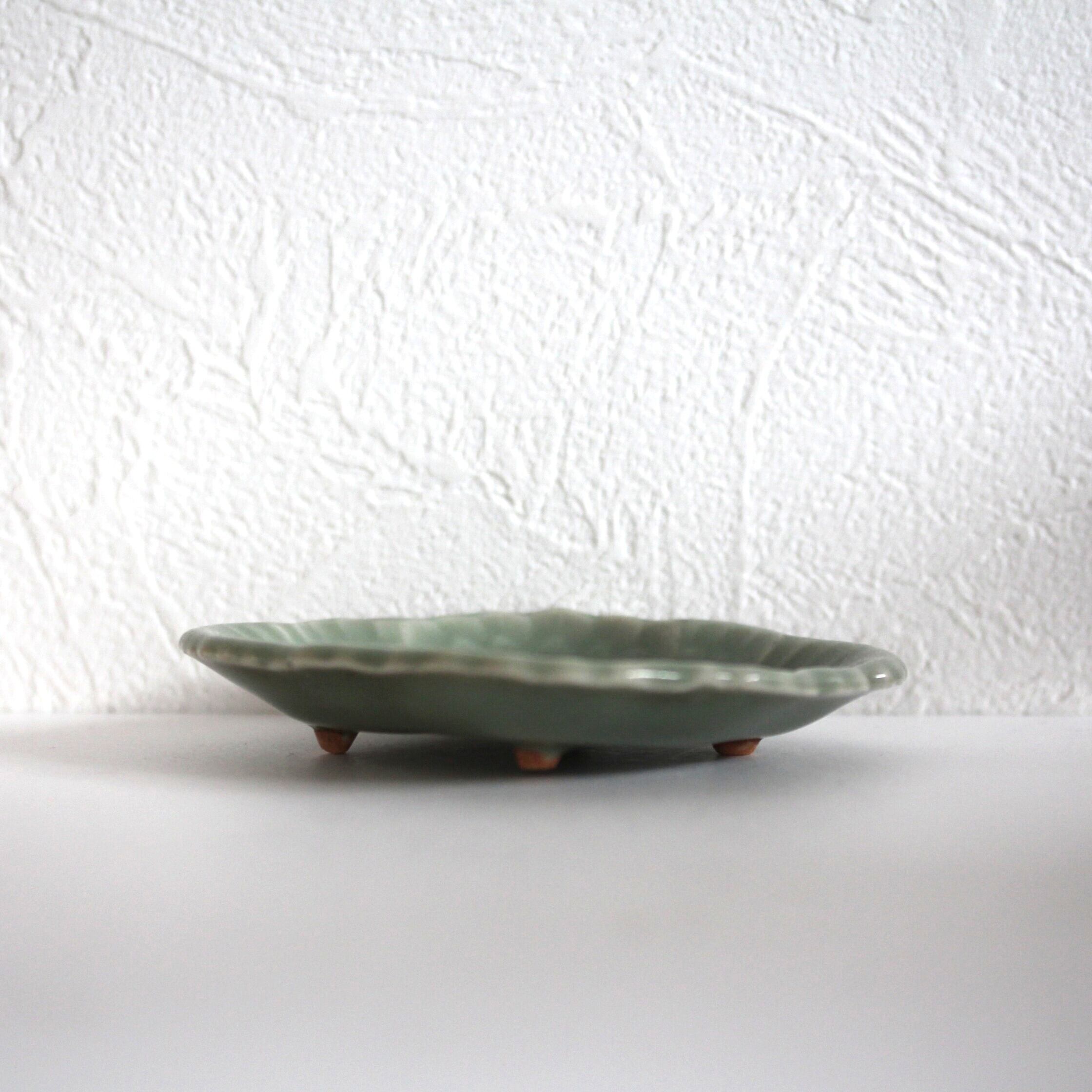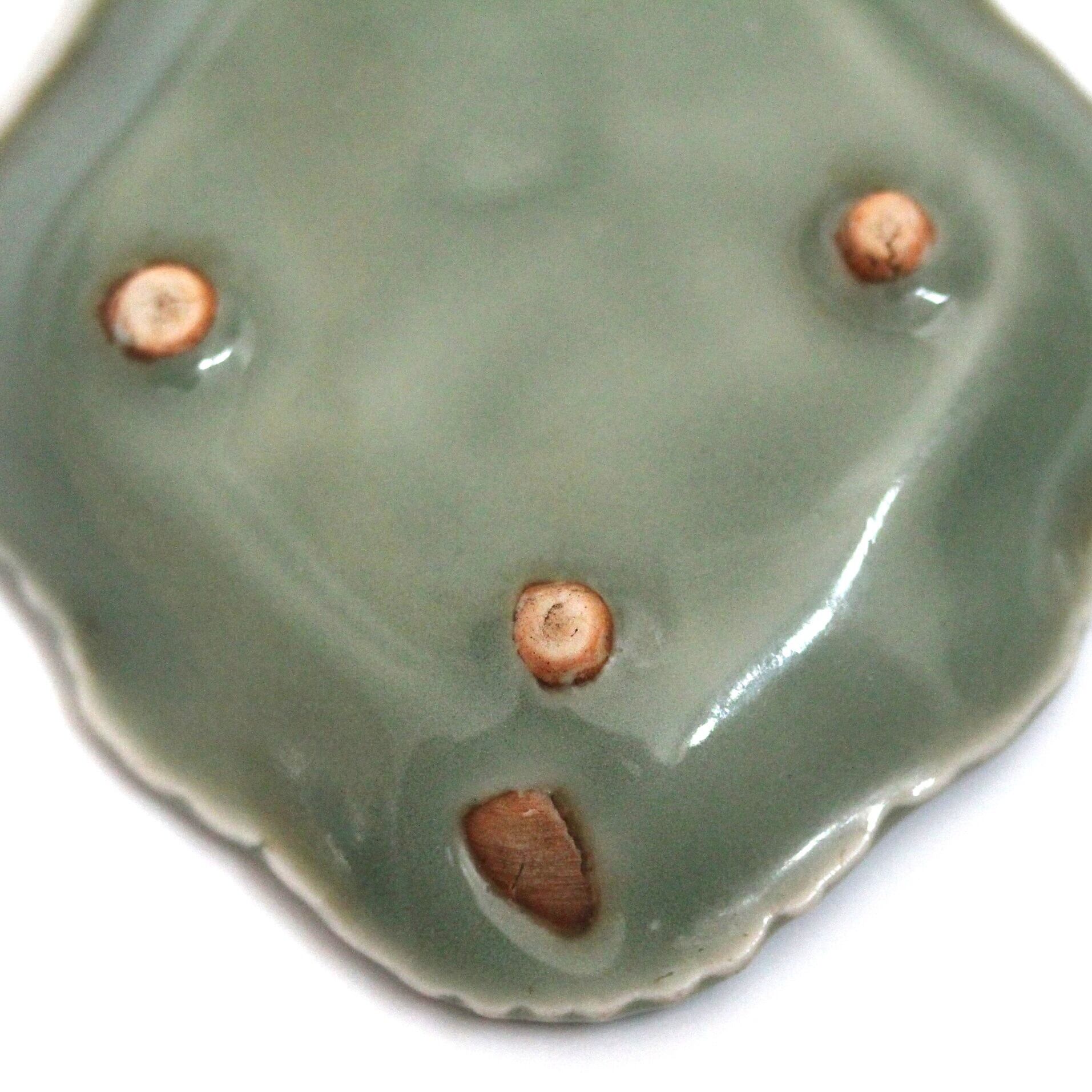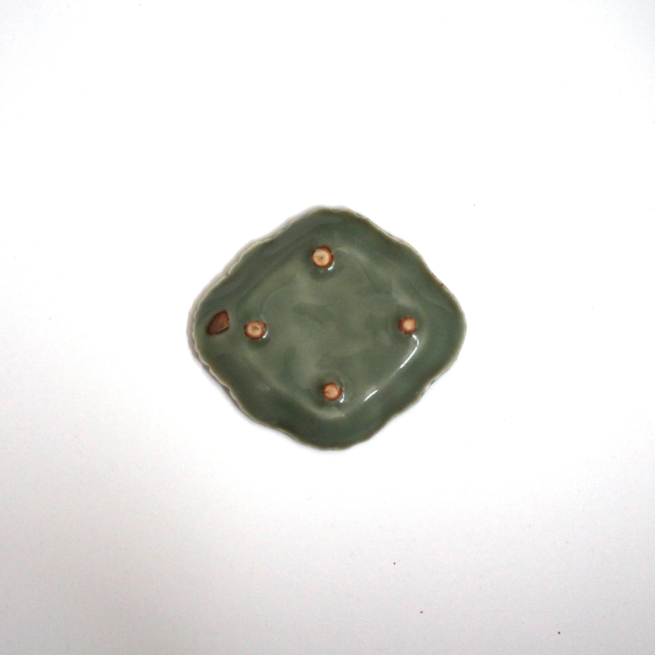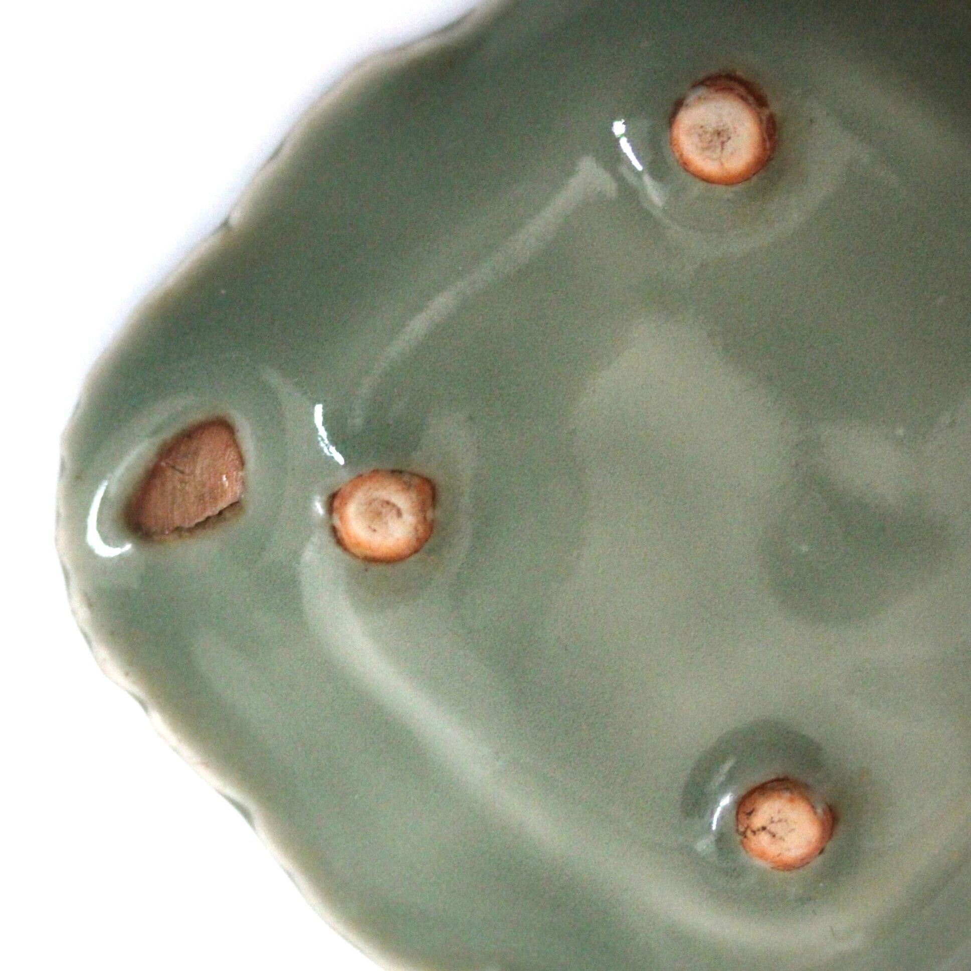 三田青磁陽刻双鶴文菱小皿(その3)d9.8cm Sanda Celadon Rhombus Small Dish, Embossed Design of Cranes 19th C | HANAFUDA