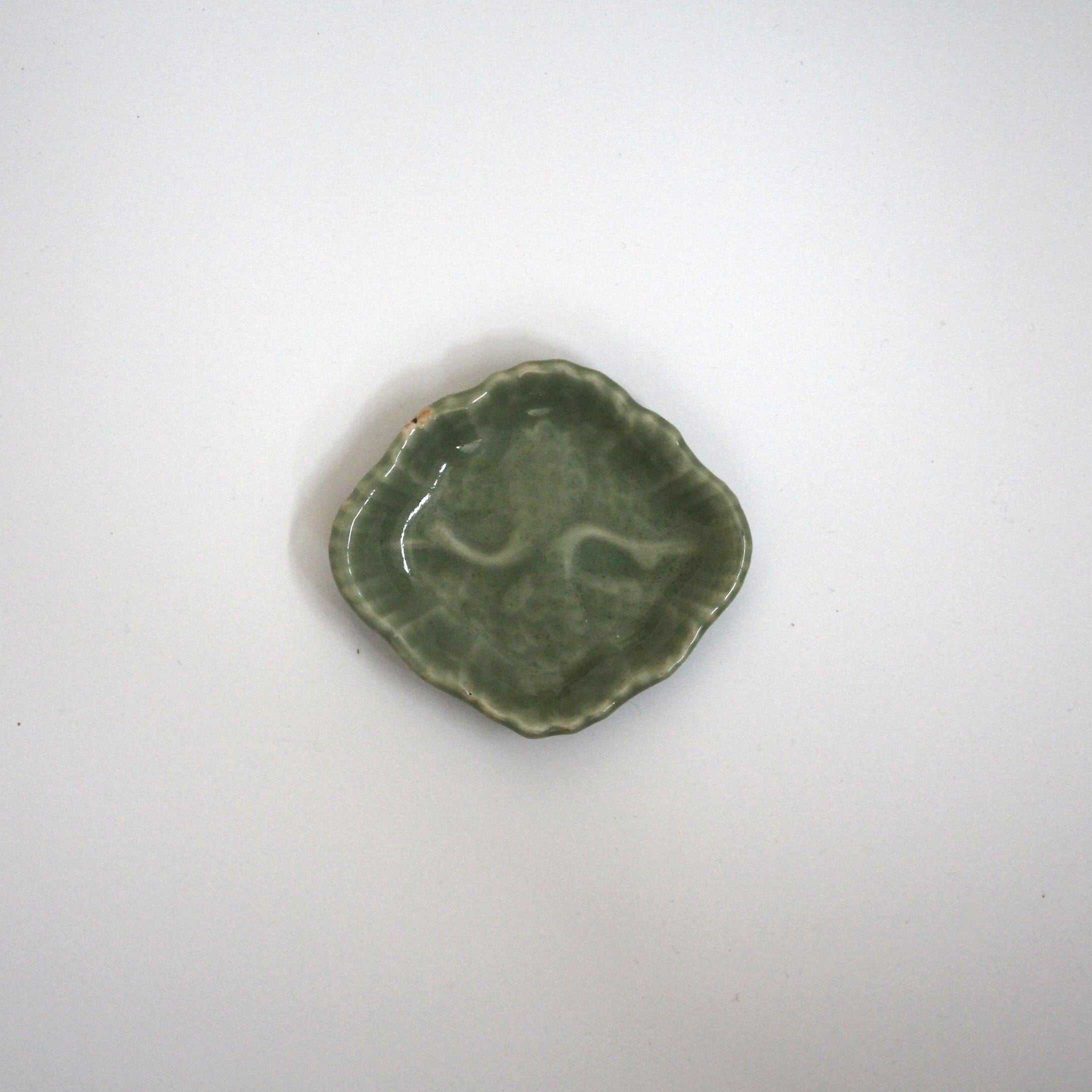 三田青磁陽刻双鶴文菱小皿(その5)d9.7cm Sanda Celadon Rhombus Small Dish, Embossed Design of Cranes 19th C | HANAFUDA