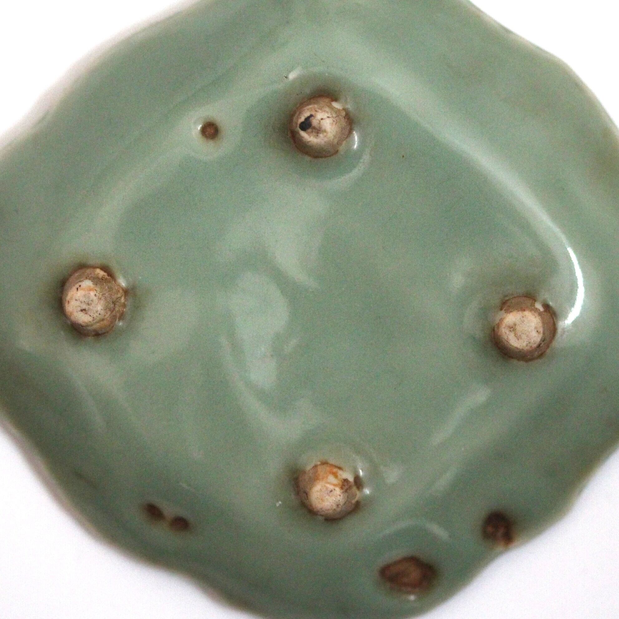 4つの低い足が付いた、青磁の小さなうつわです。