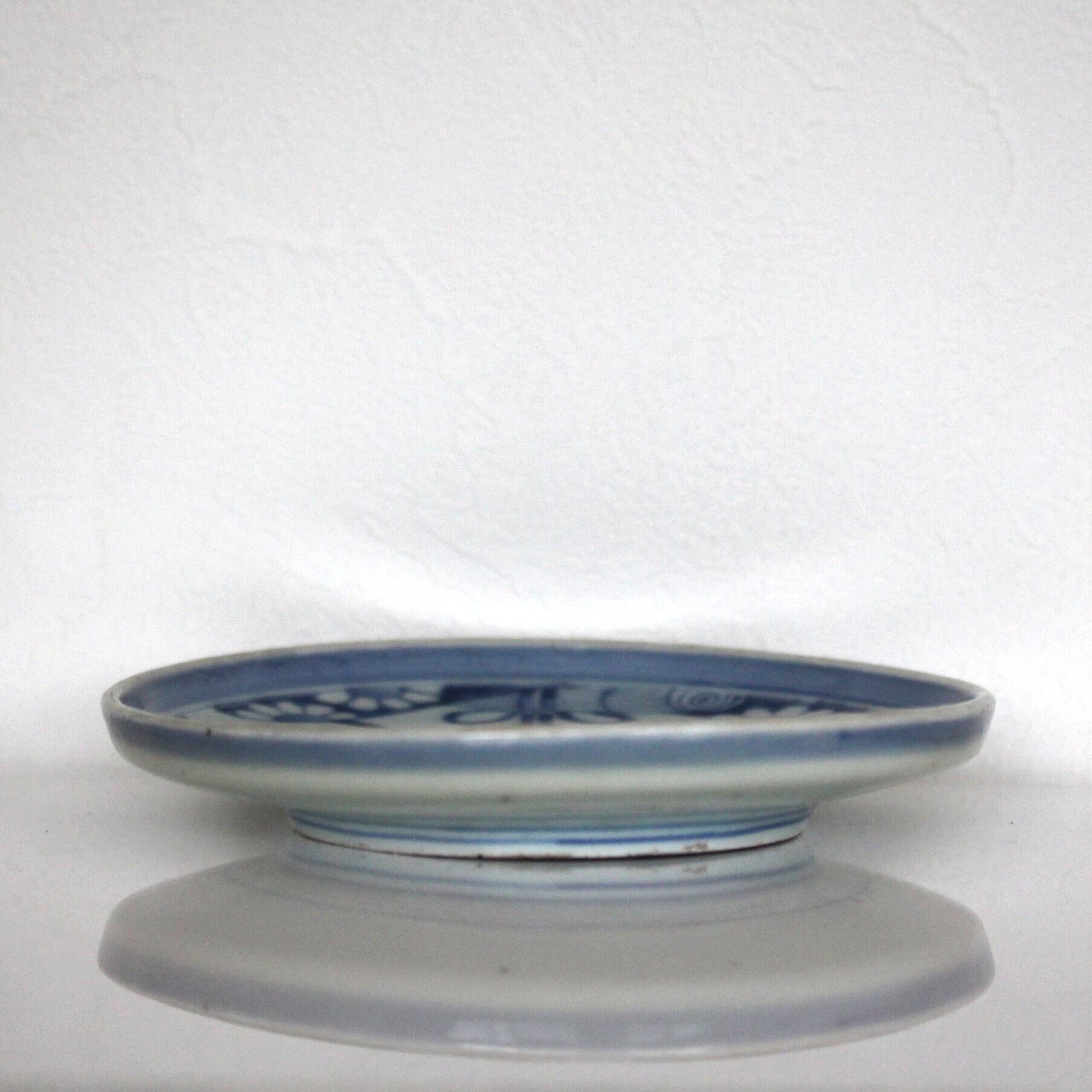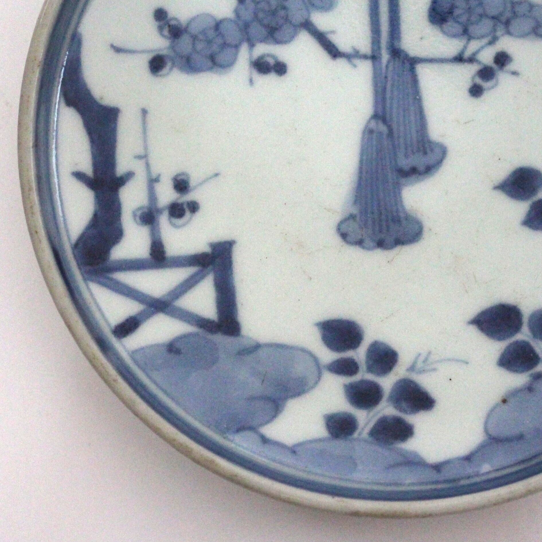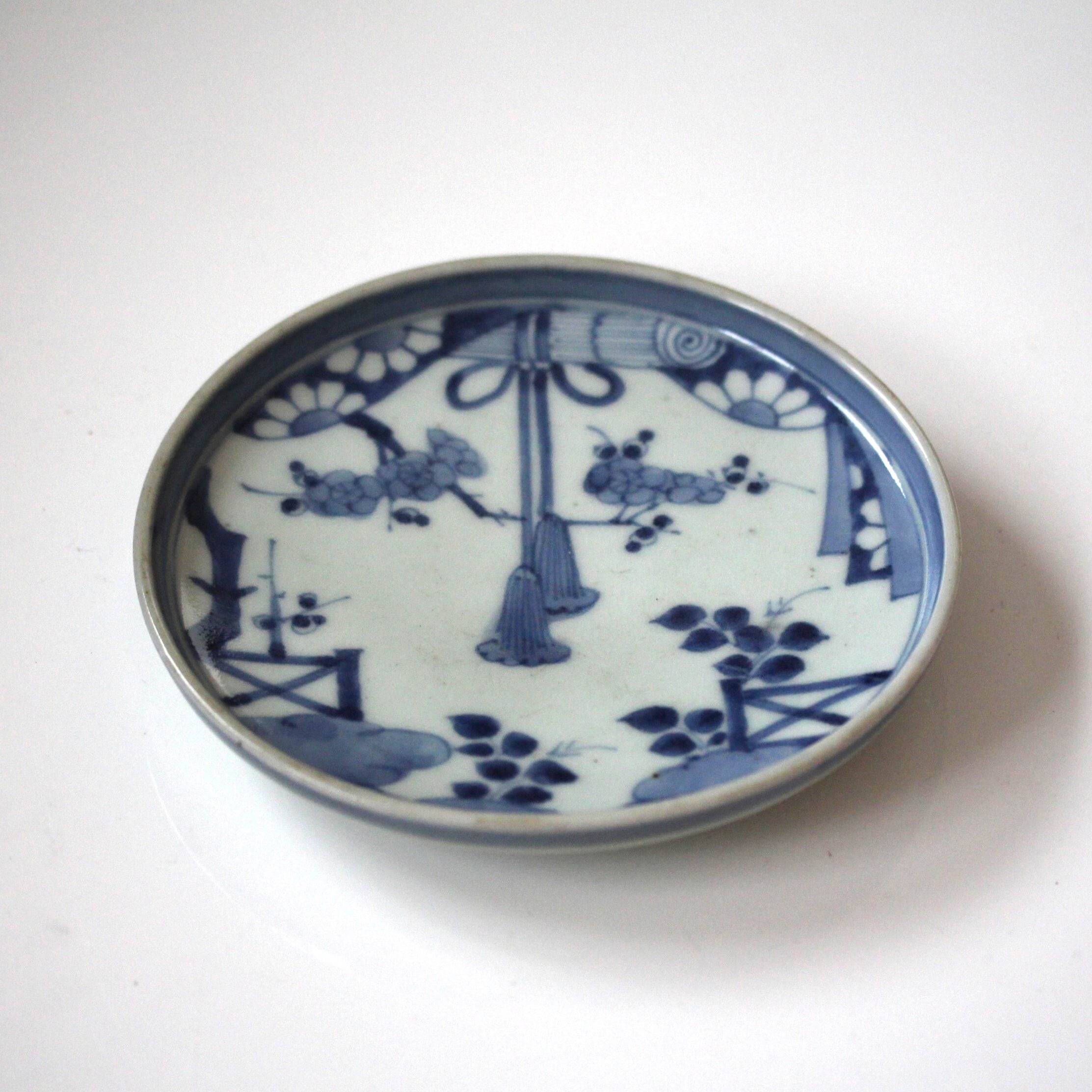 古伊万里染付御簾梅文皿 d14.4cm Imari Blue and White Dish, Design of Plum Blossoms and Bamboo Blind 18th C | HANAFUDA