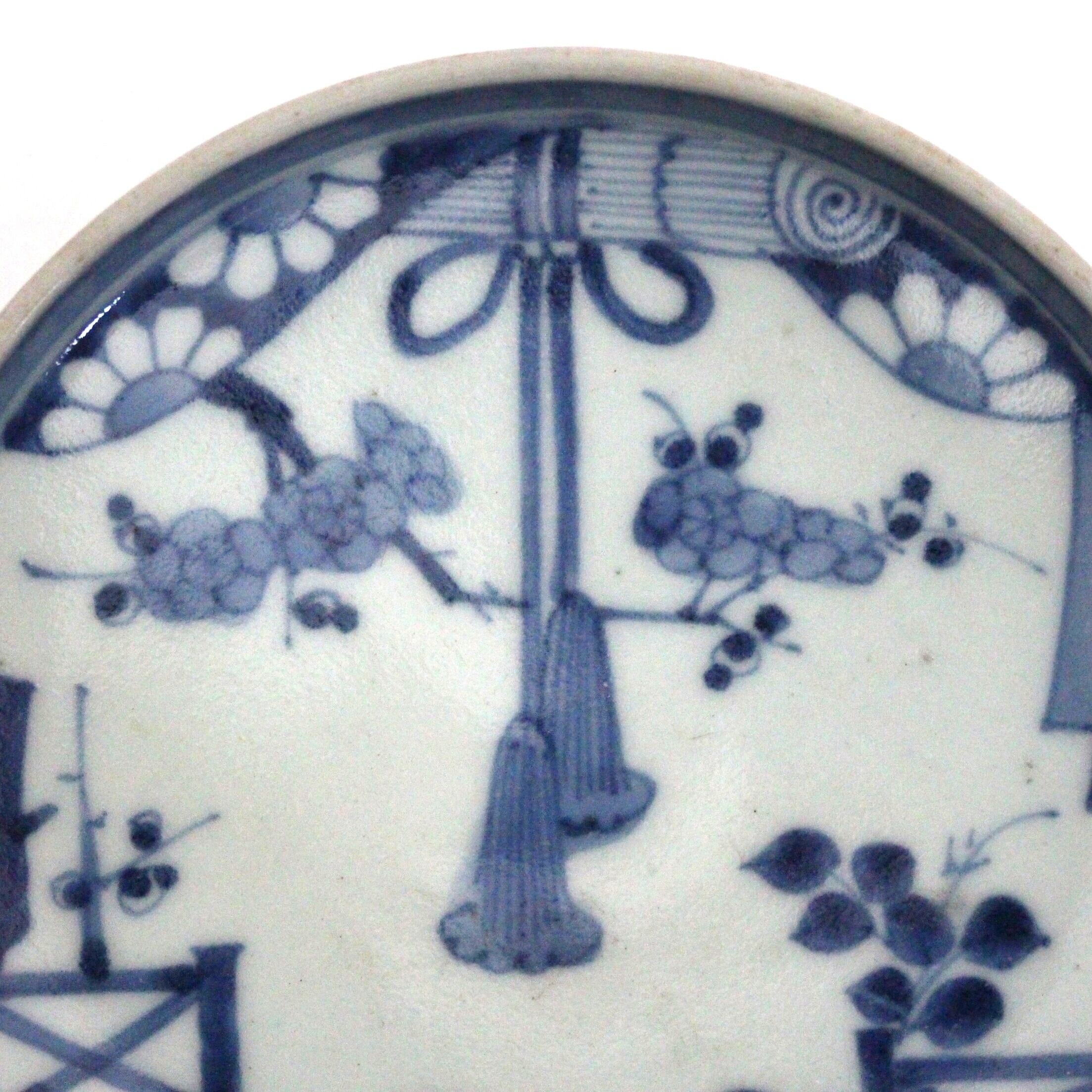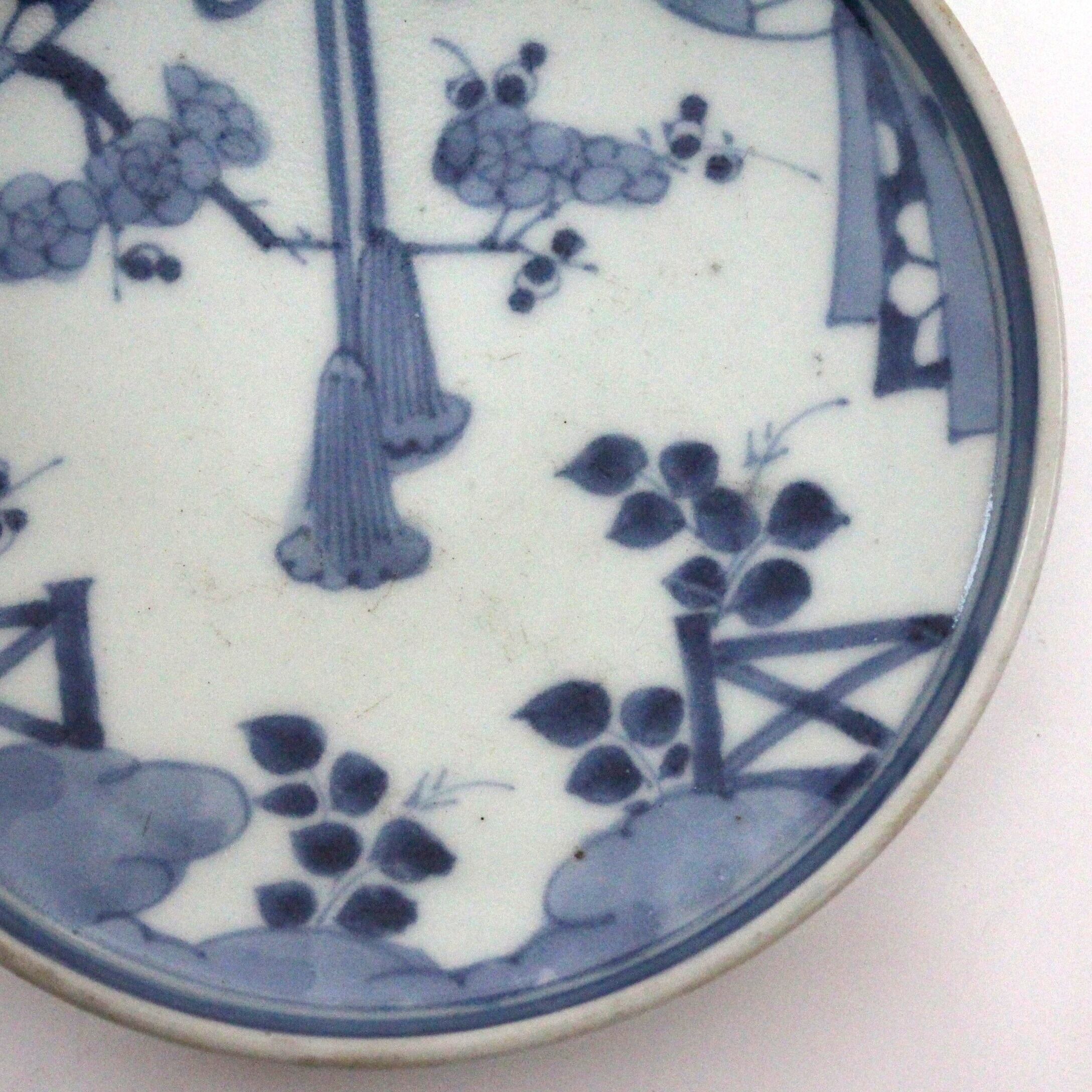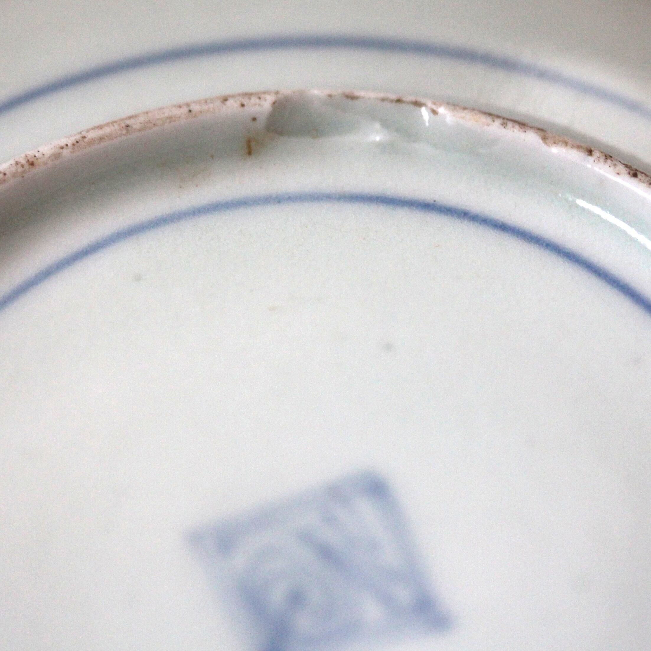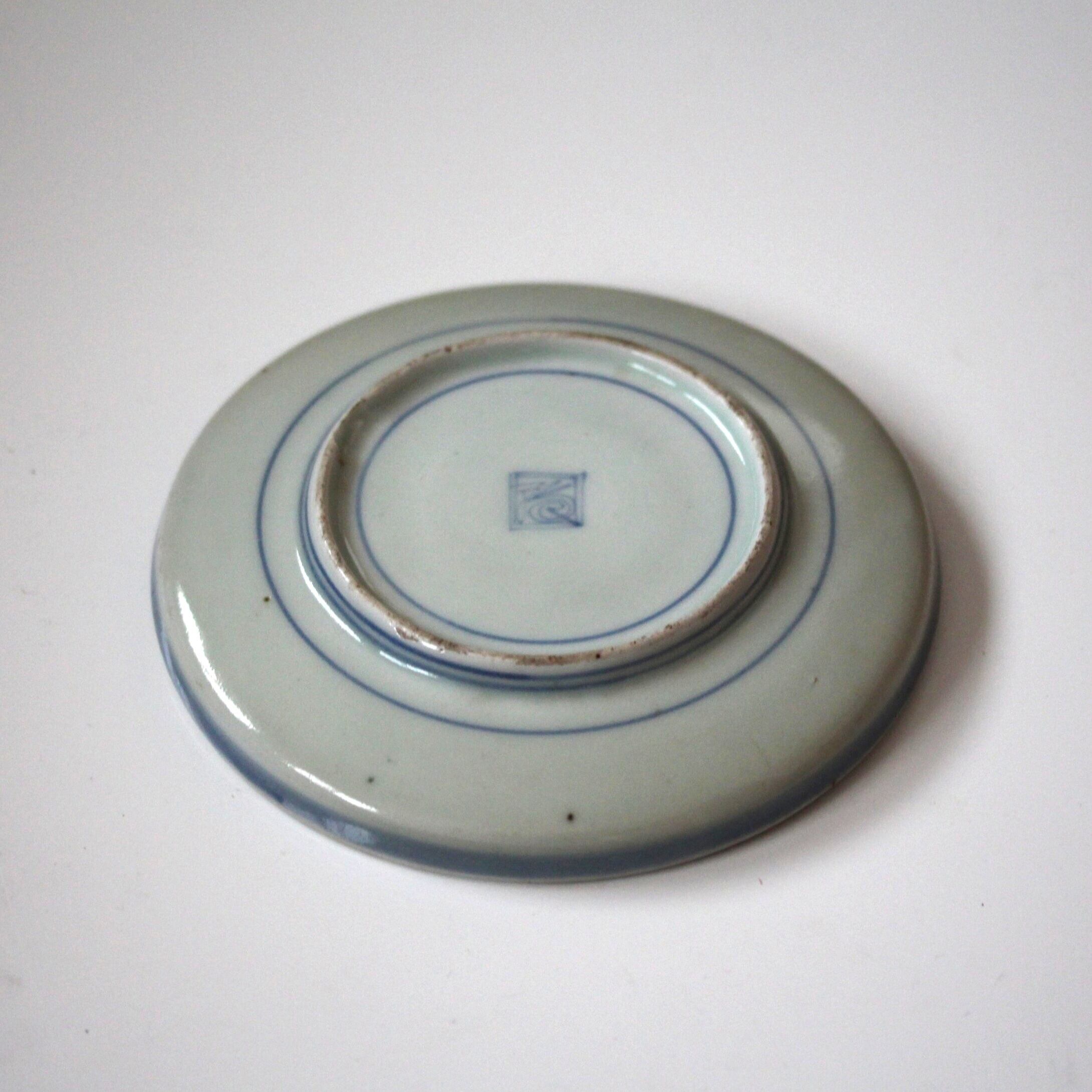 古伊万里染付御簾梅文皿 d14.4cm Imari Blue and White Dish, Design of Plum Blossoms and Bamboo Blind 18th C | HANAFUDA