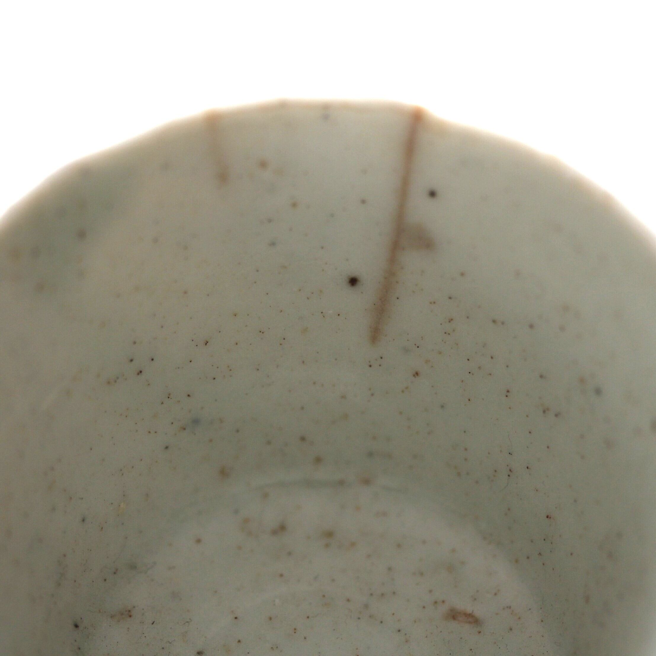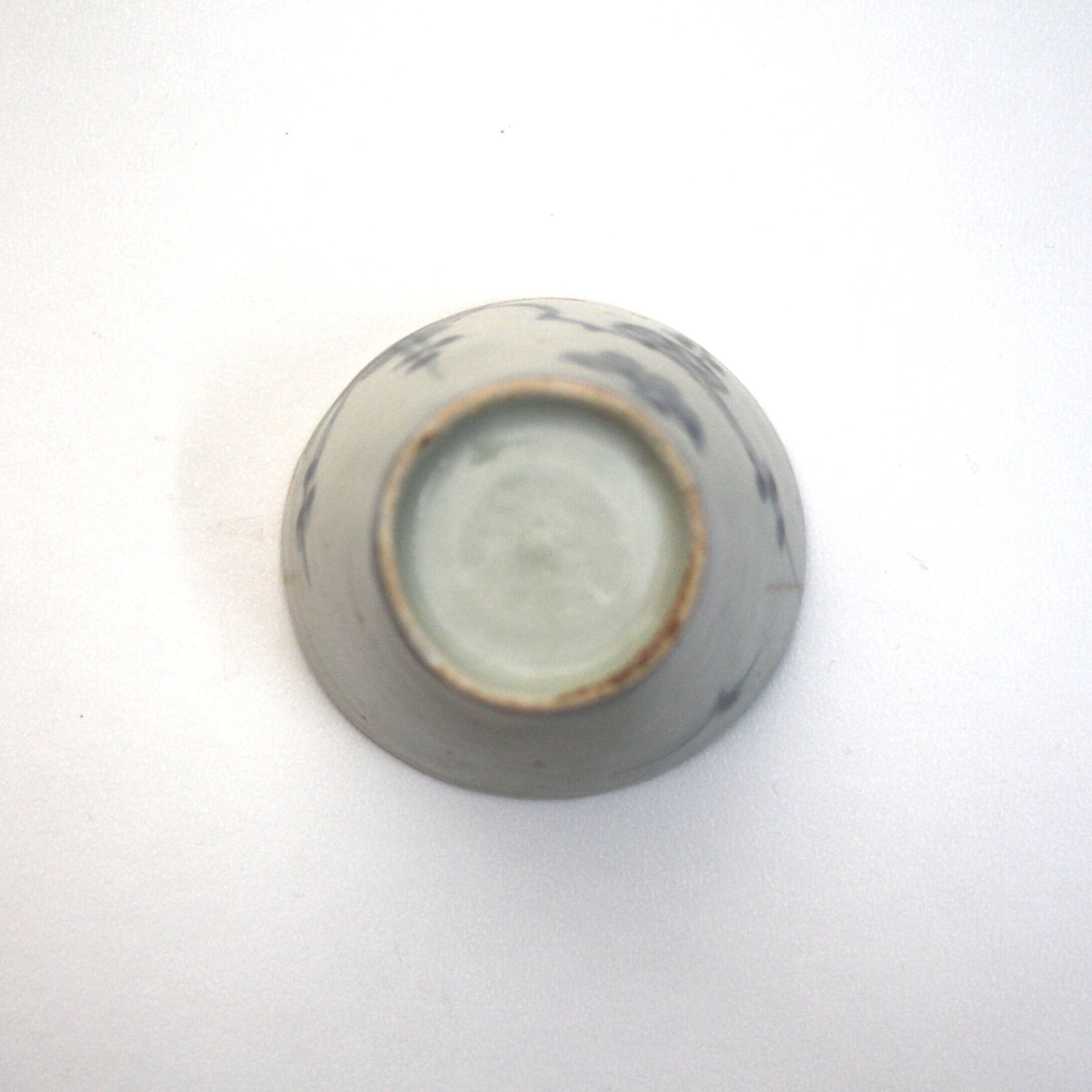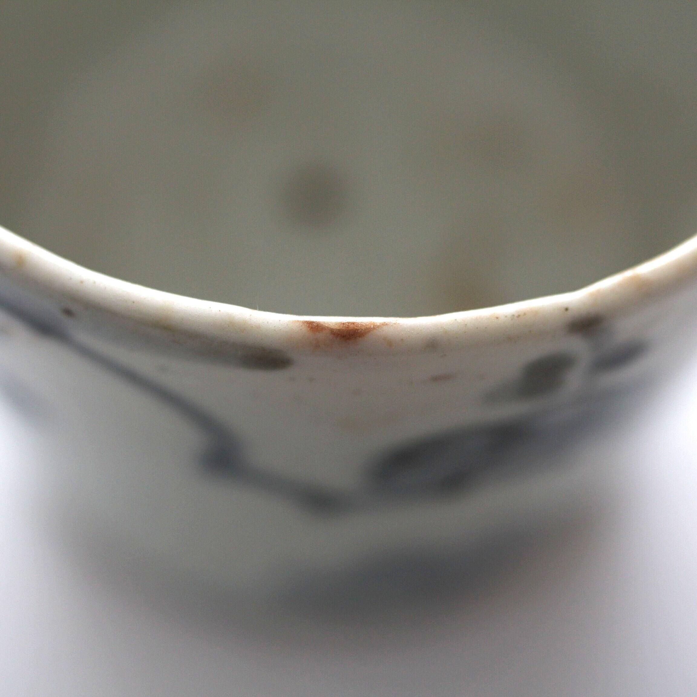状態:口縁にニュウ。高台に成形時の凹み。見込にフリモノ。