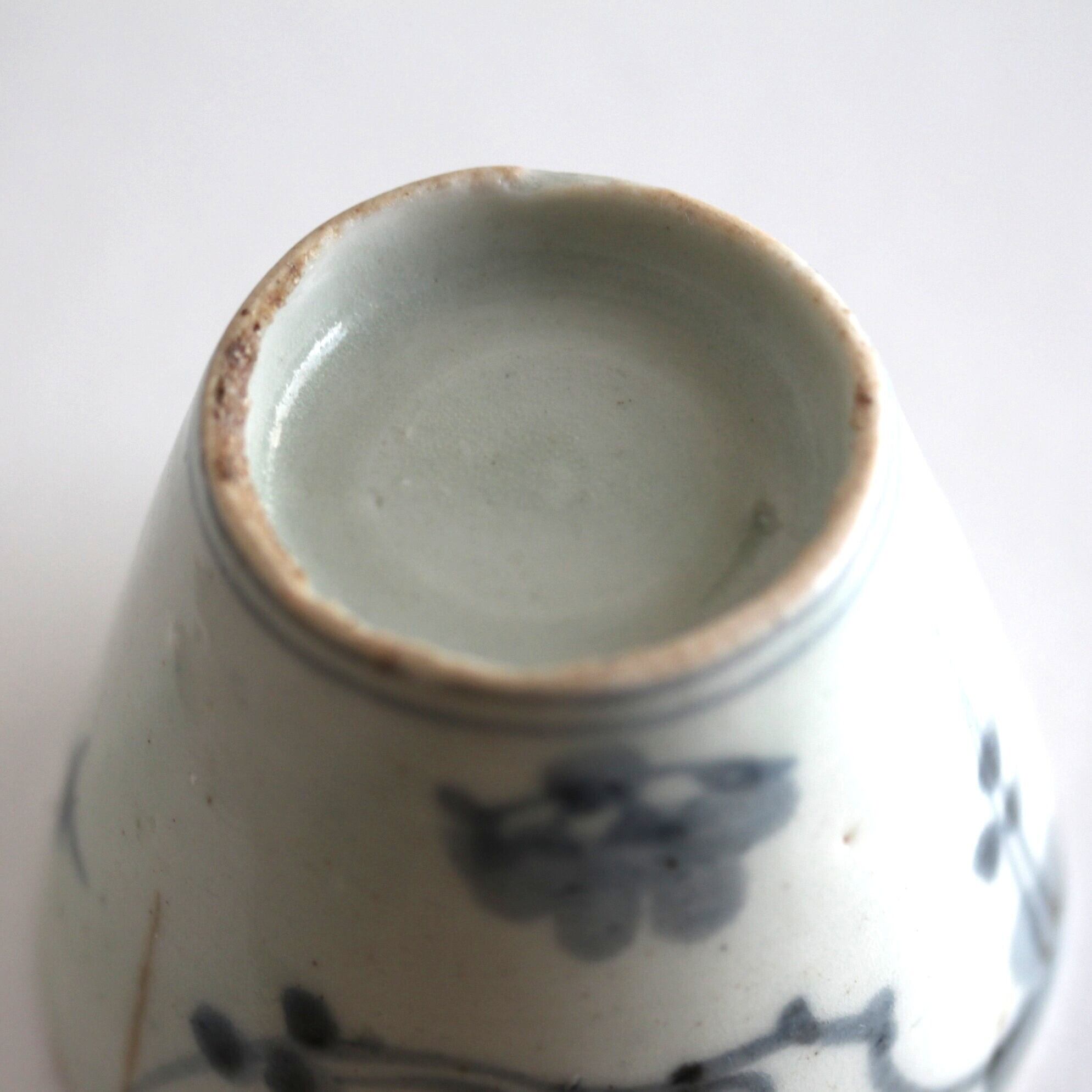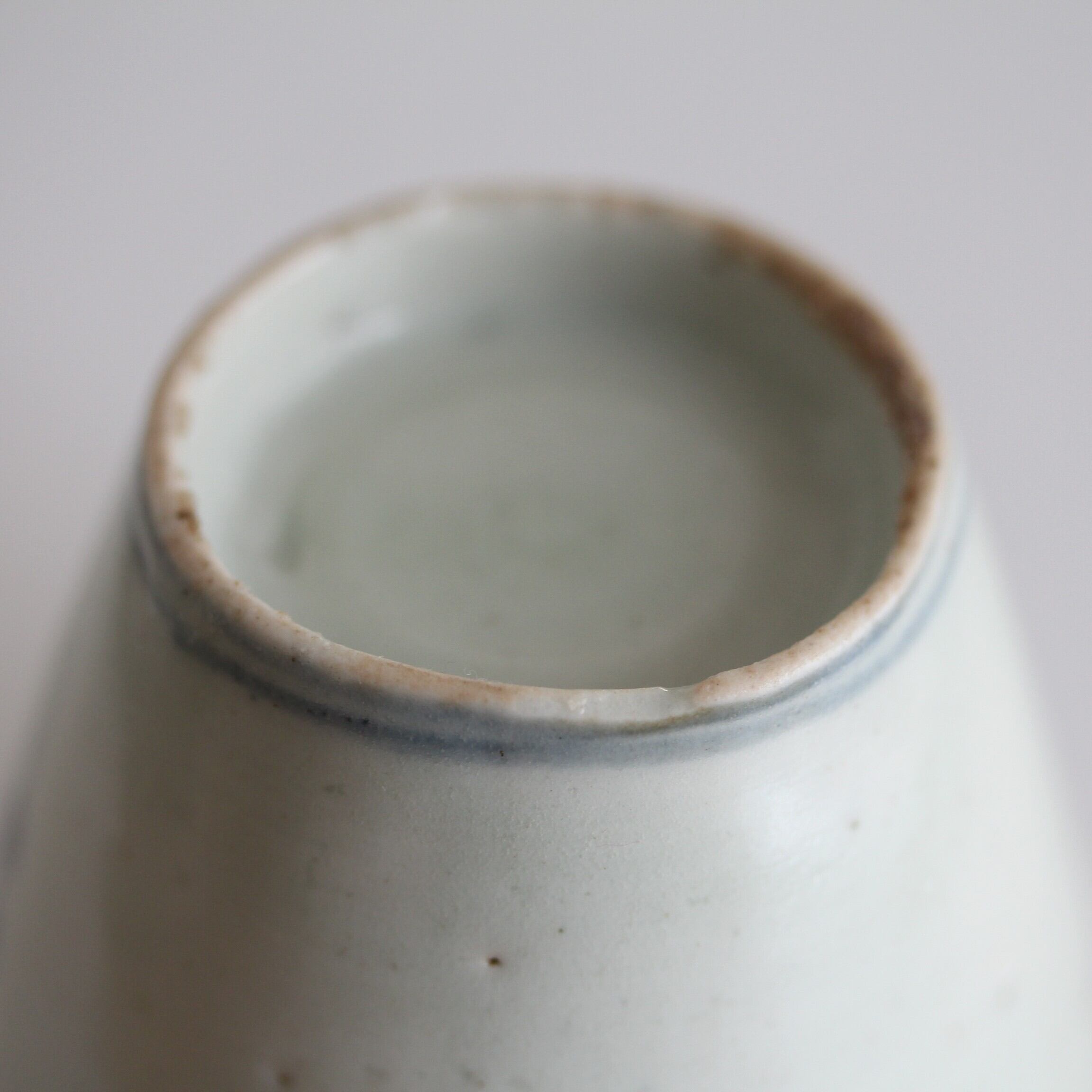 底部が肉厚で高台の高い、いわゆる初期手のそば猪口。