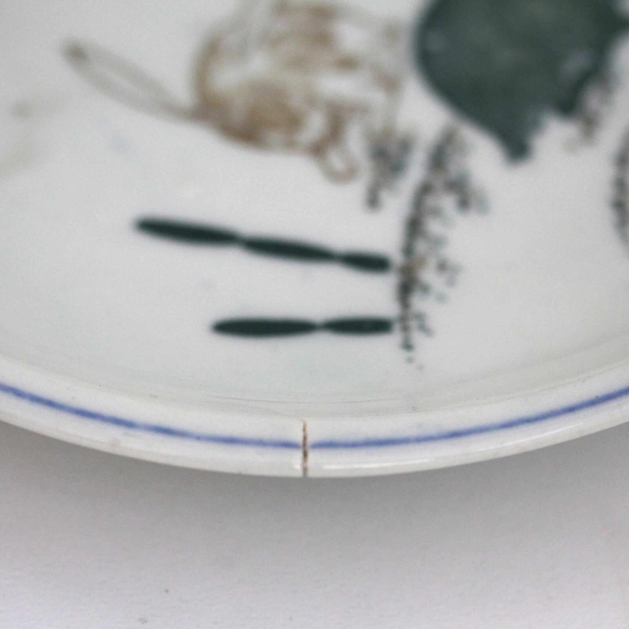 印判月兎木賊文皿 d18.9cm Inban Dish, Transferred Design of Rabbits under the moon 19th-20th C