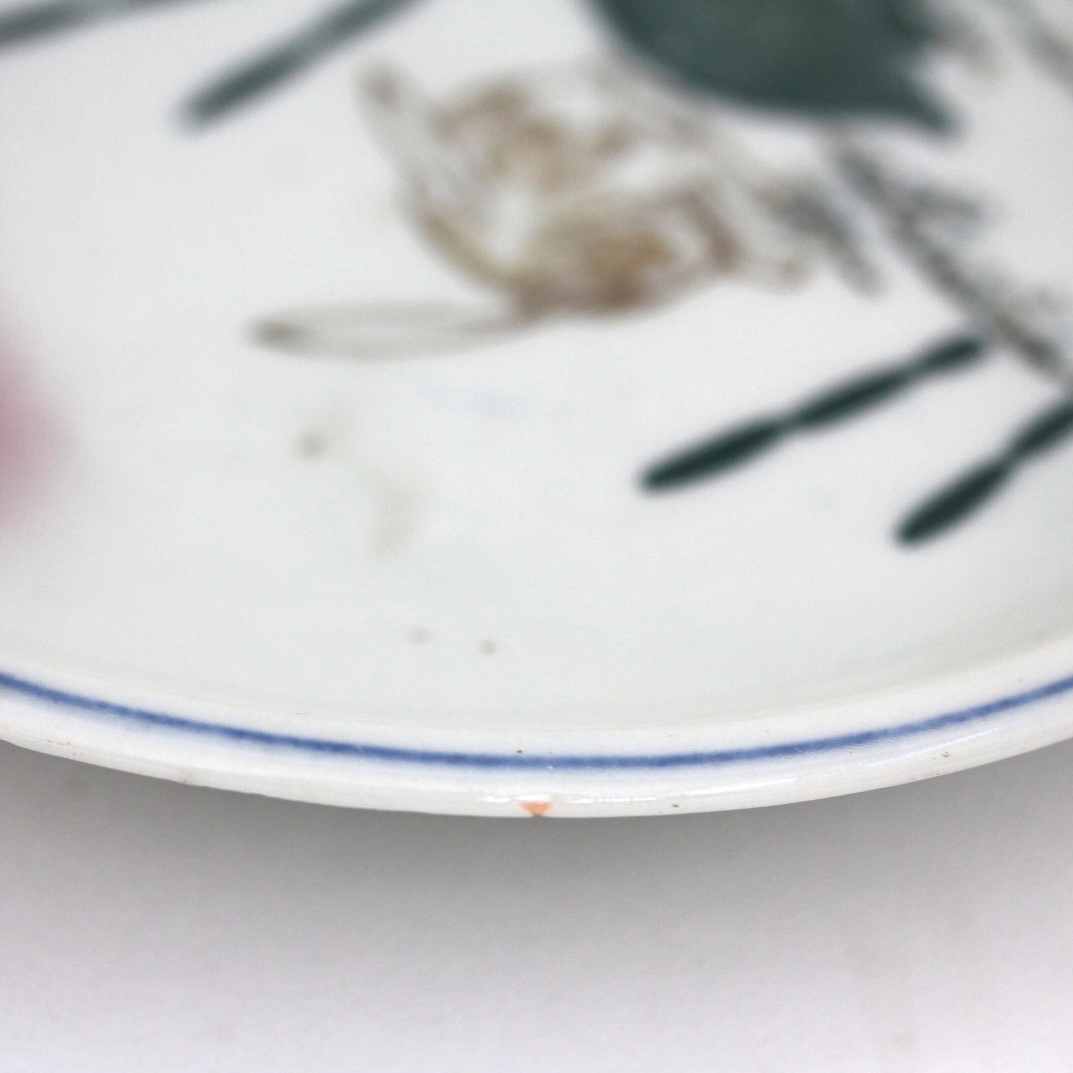 状態:若干の歪み(グラツキあり)。口縁に焼成時の窯割れ(2か所)。高台に成形時の凹み。