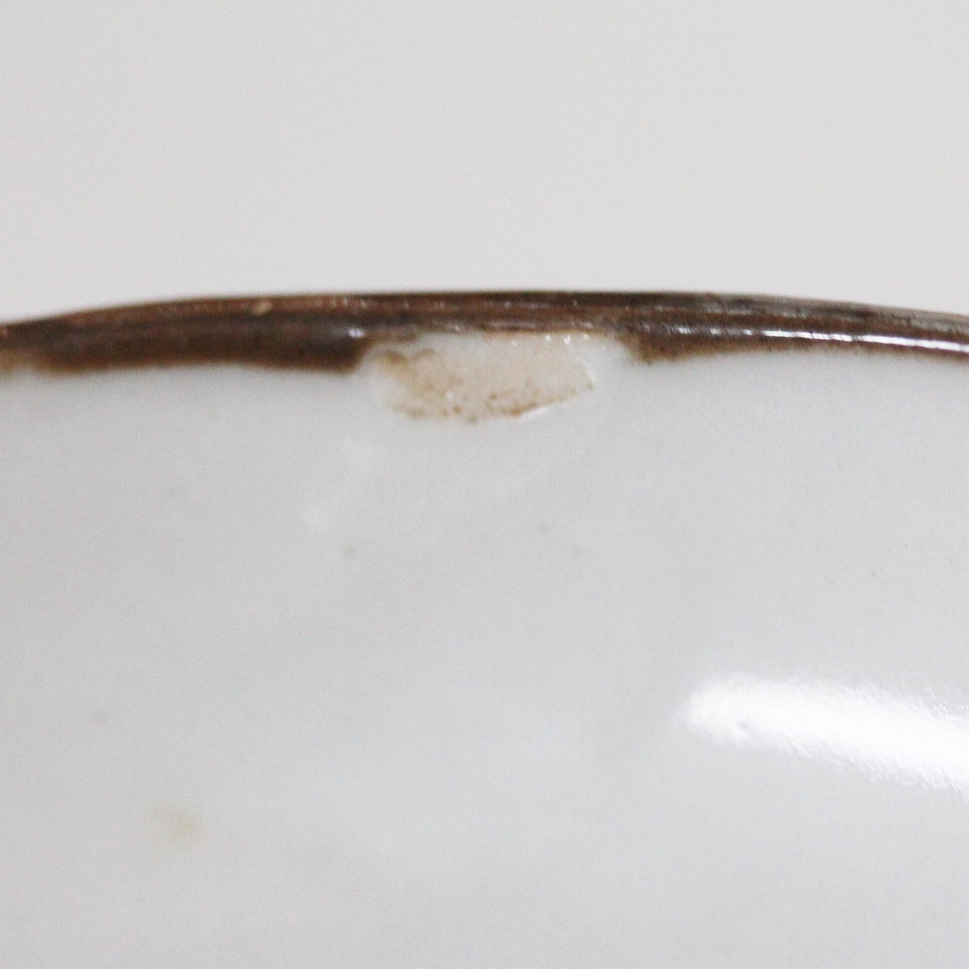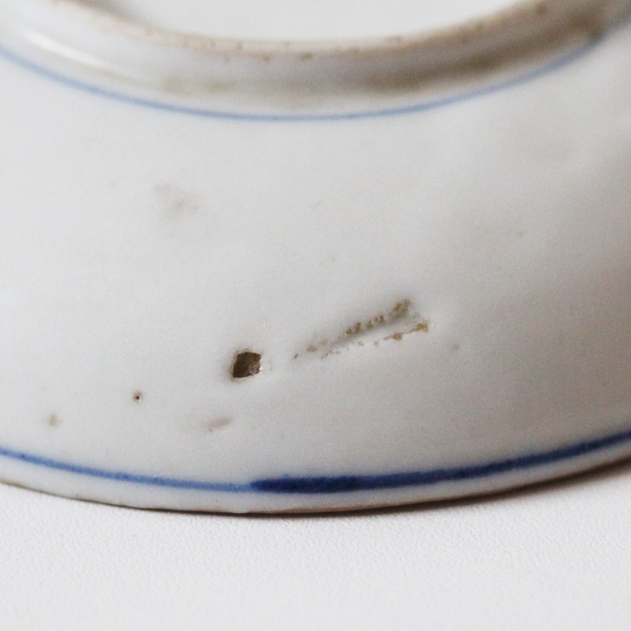状態:完品です。口縁に釉切れ、裏面に成形時の凹み(窯疵)があります。