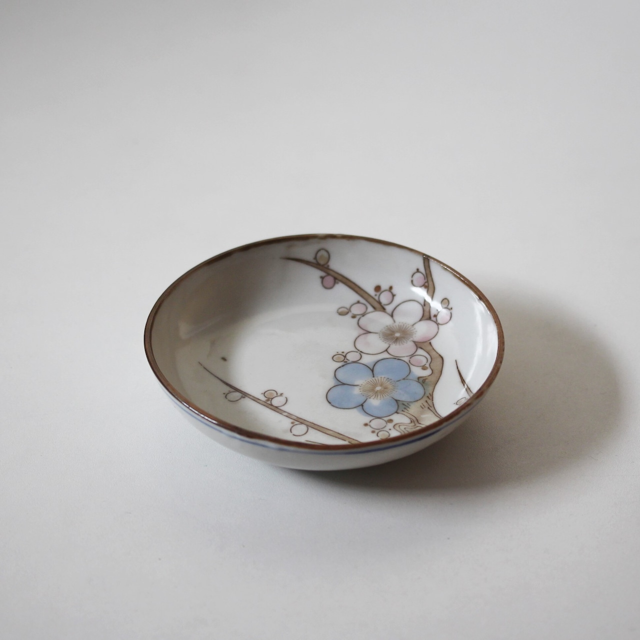 A charming porcelain small plate with printed design of ume plum blossoms.