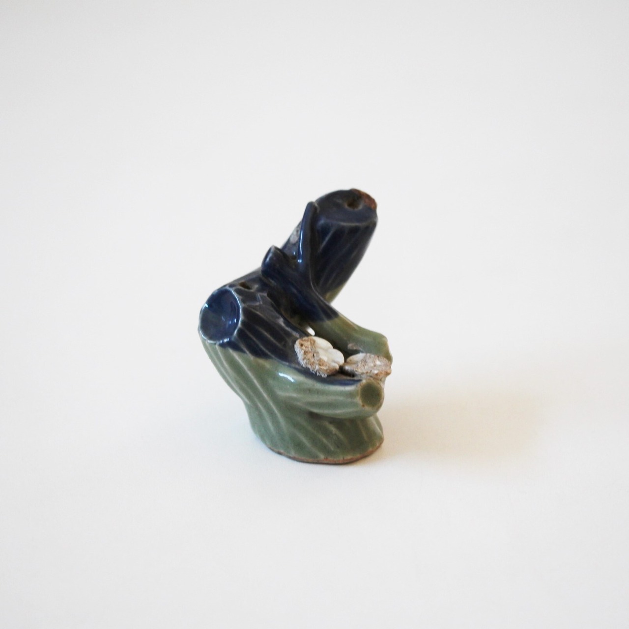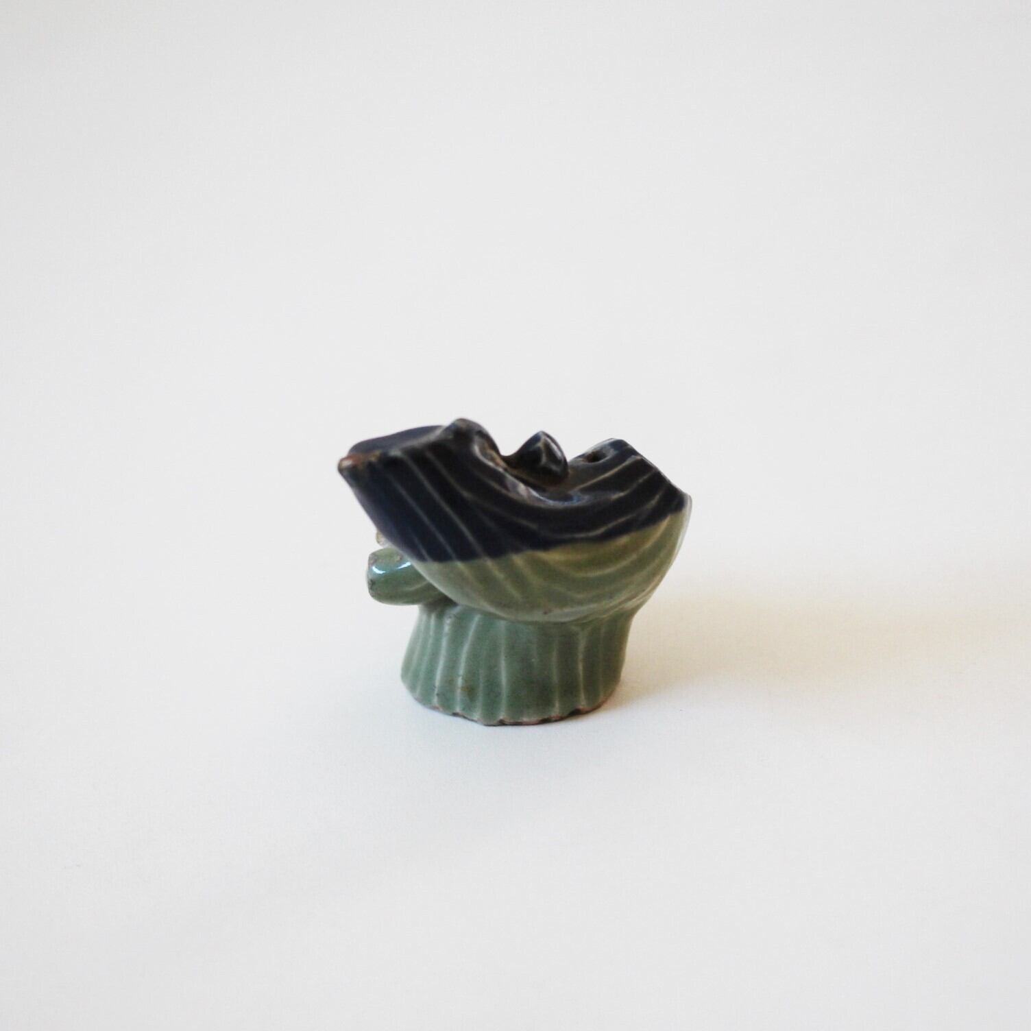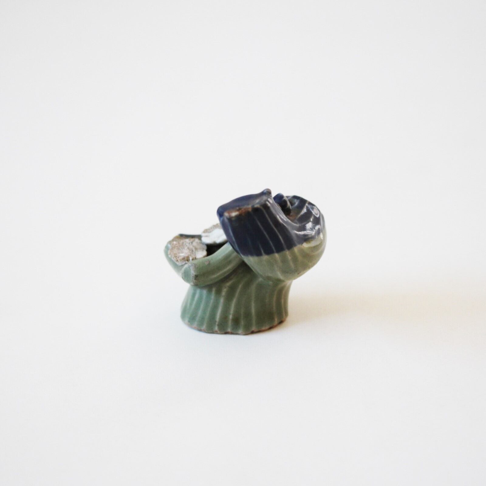 古九谷青磁瑠璃釉梅樹水滴 h6.4cm Ko-Kutani Celadon Blue Glazed Water Dropper, Plum Tree Shaped 17th C