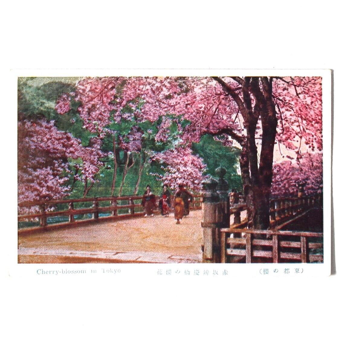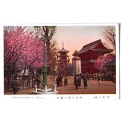 A beautiful three-colored printed postcards, with design of cherry blossoms in Tokyo.