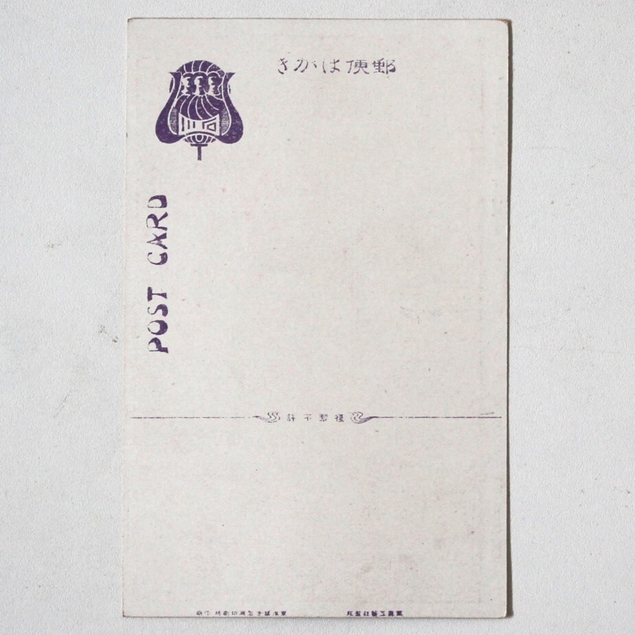 また「郵便はかき」「POST CARD」「寫眞工藝社製版 東洋寫眞製版印刷所印刷」「複製不許」の文字が印刷されています。