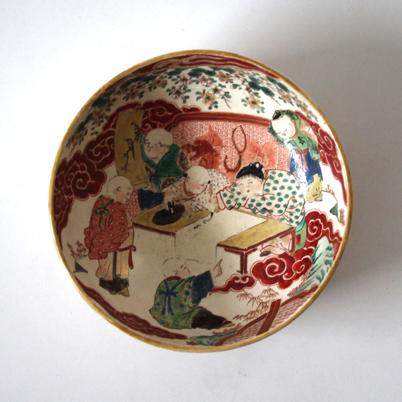 九谷焼、庄三手の唐子の鉢。書初め風景です。